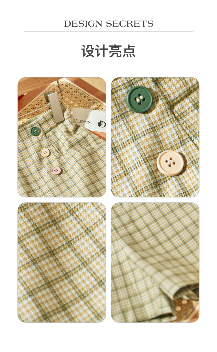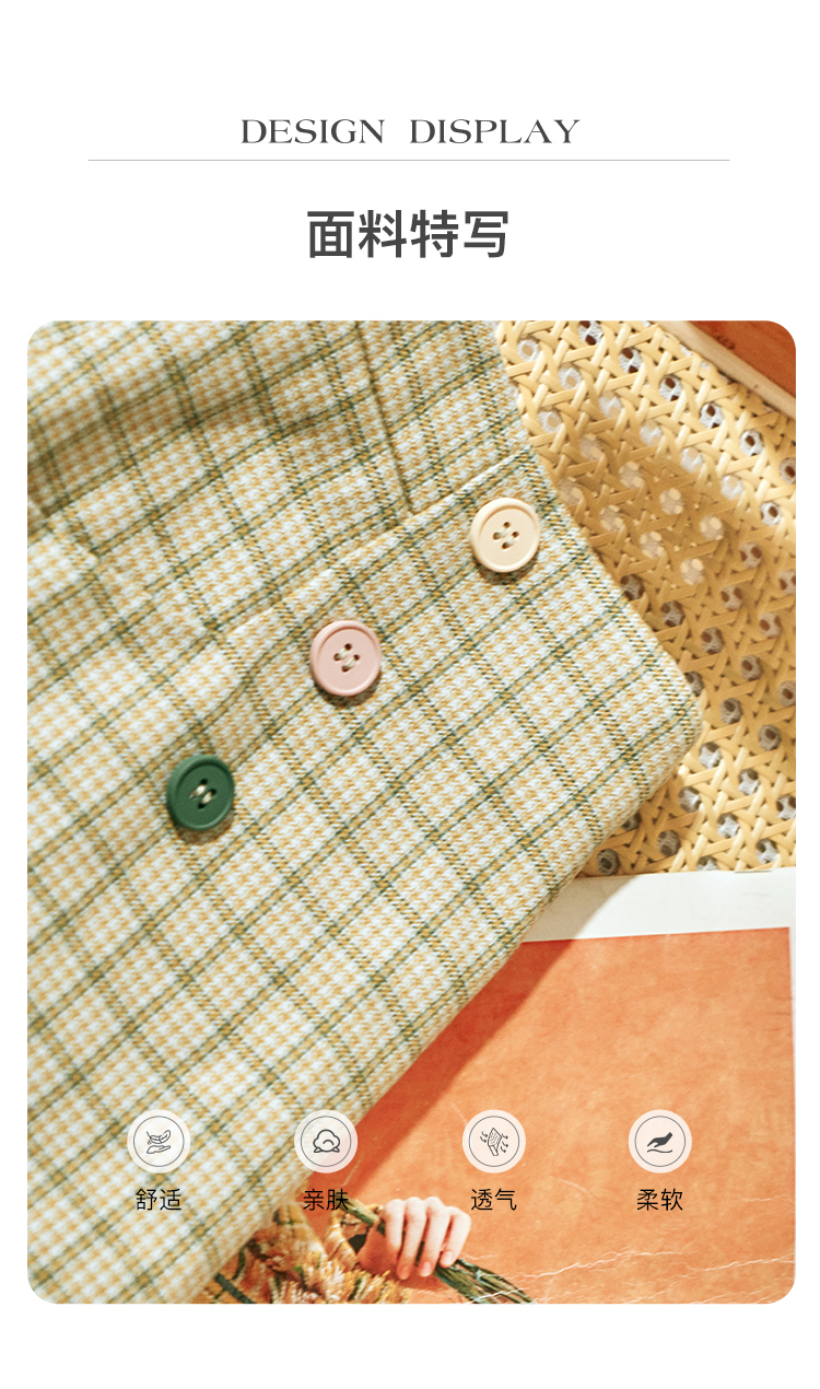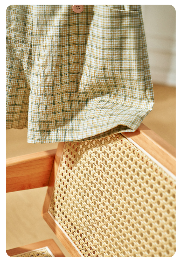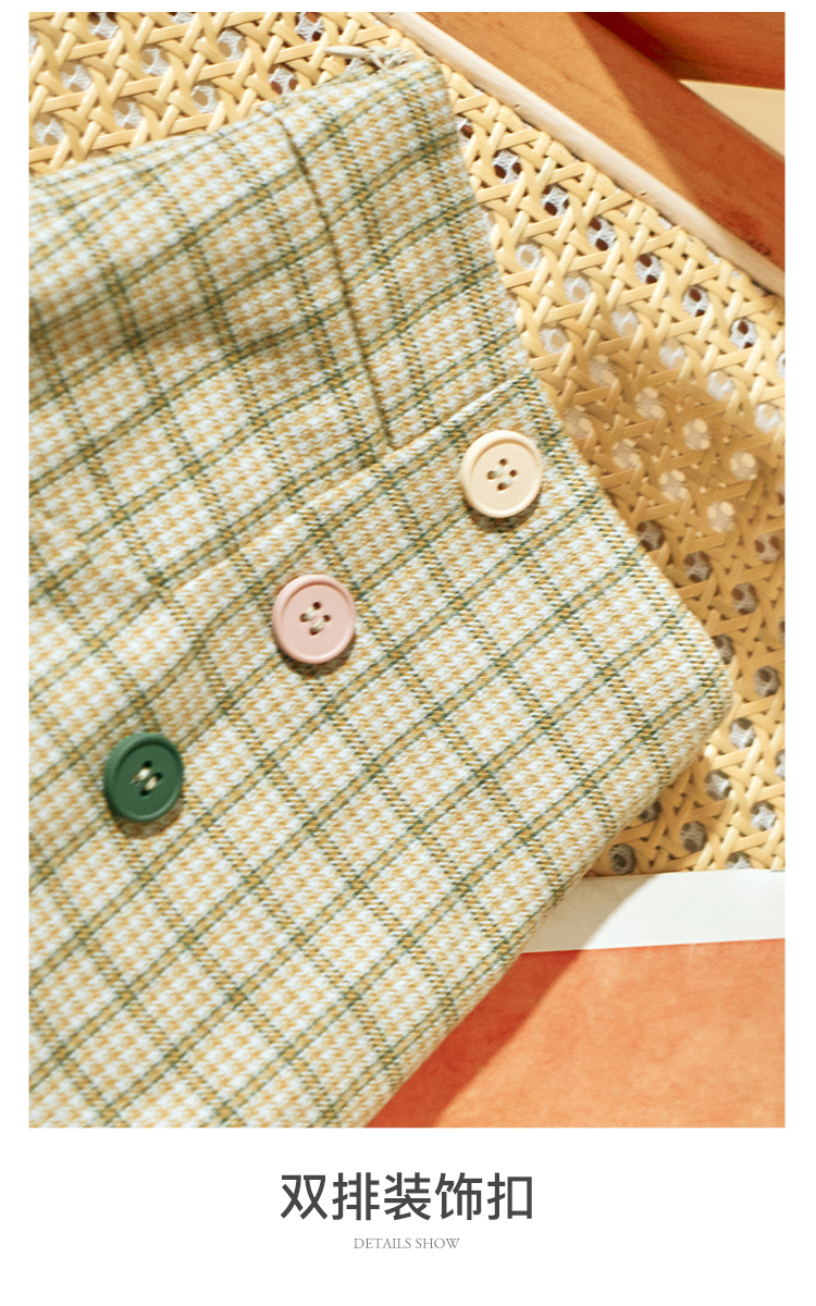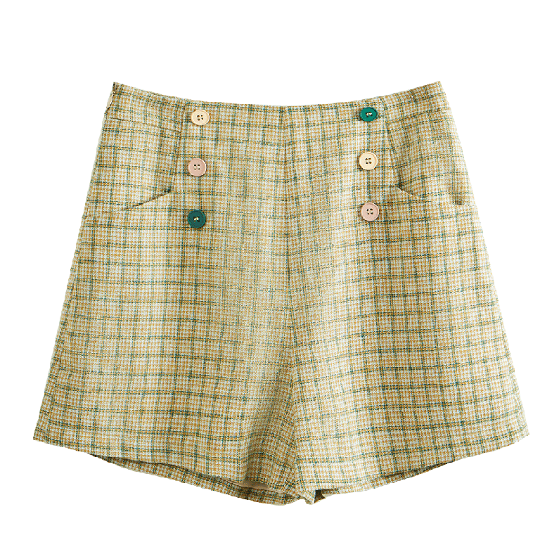 欧芮儿春新款高腰休闲格子短裤女修身显瘦宽松百搭阔腿裤