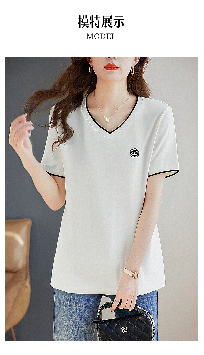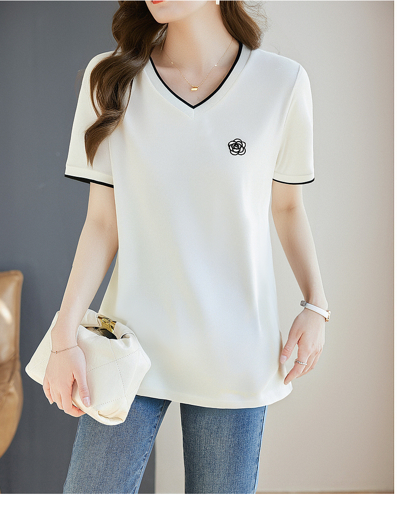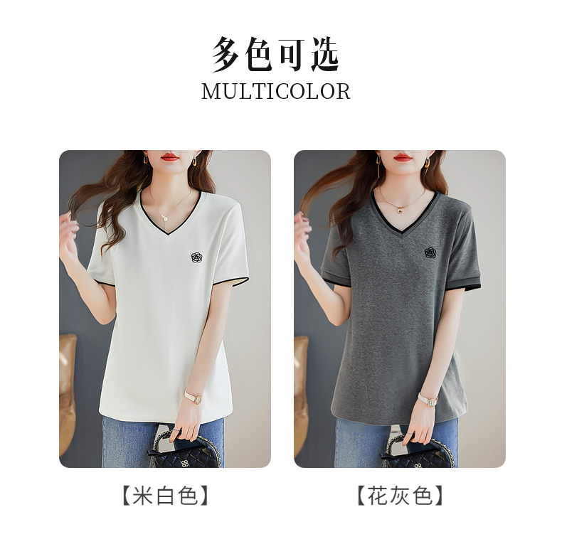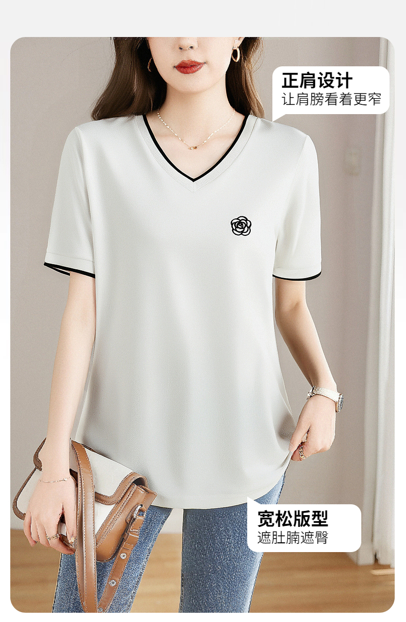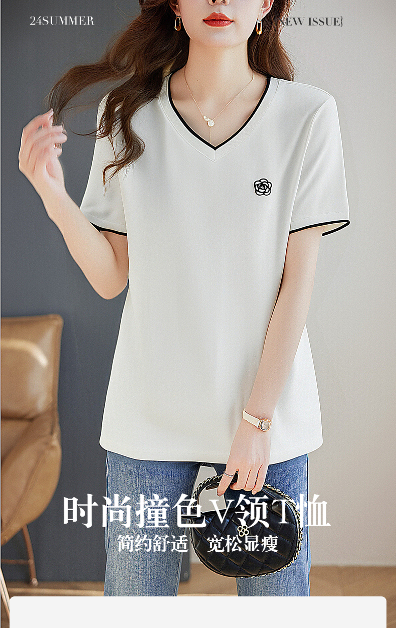 白色纯棉短袖女t恤2025新款宽松胖mm大码女装正肩女士V领上衣夏季