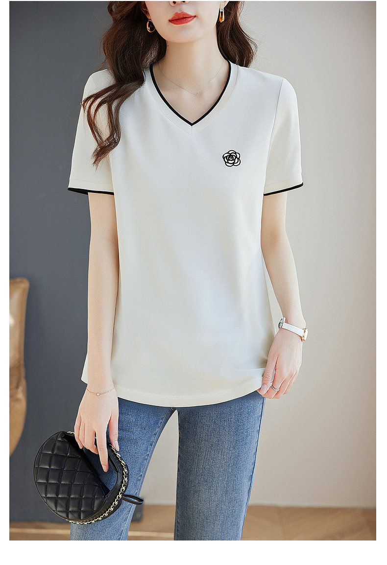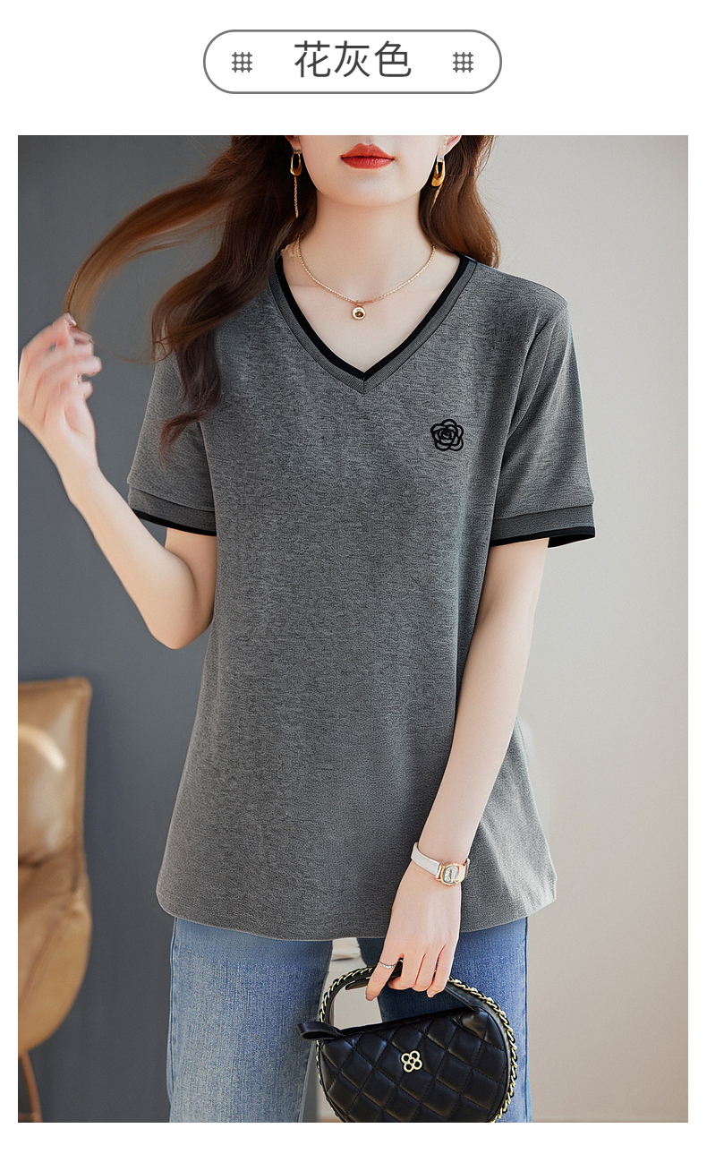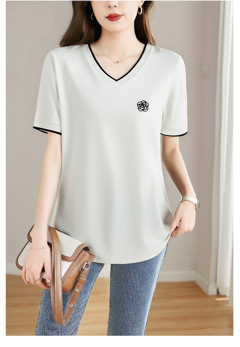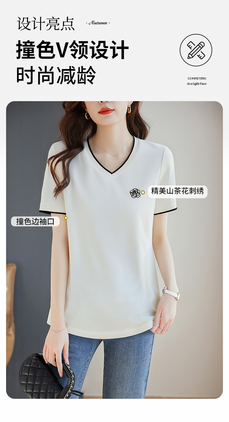 白色纯棉短袖女t恤2025新款宽松胖mm大码女装正肩女士V领上衣夏季