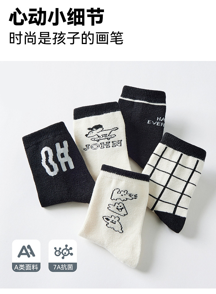 【件件底价,童装双倍积分】多多家男童袜子5双装2026春秋新款儿童中筒袜中大童透气亲肤A类11950