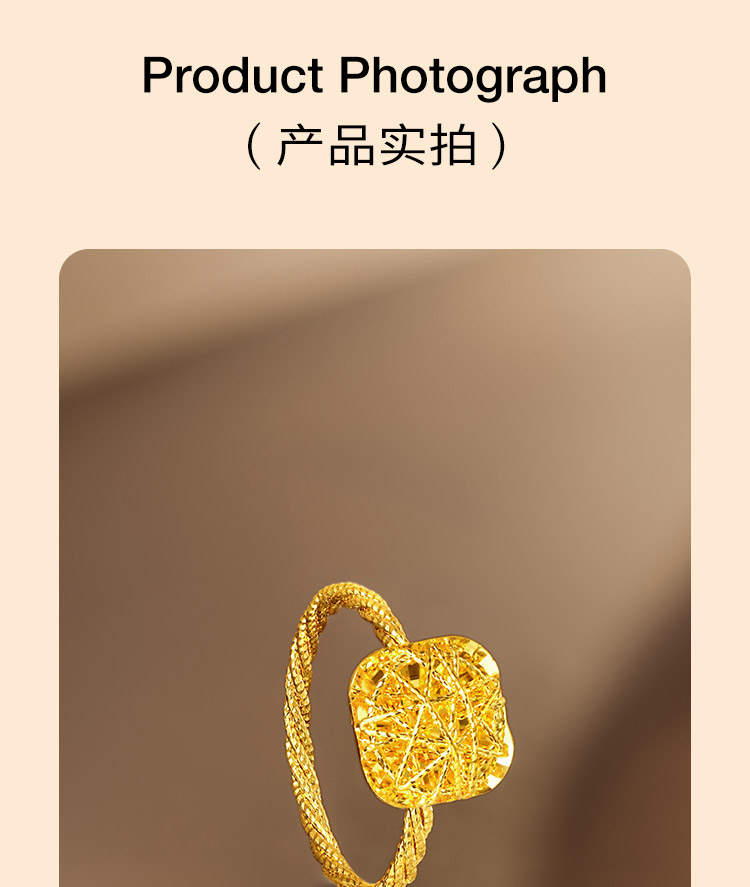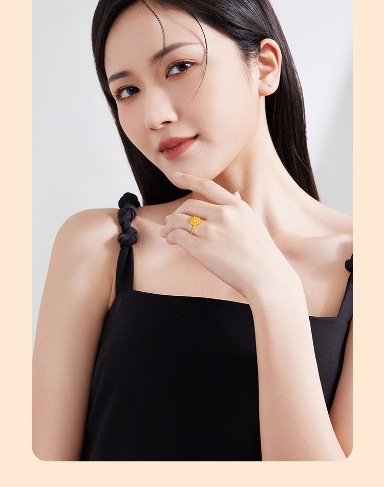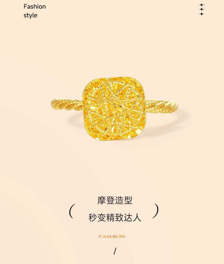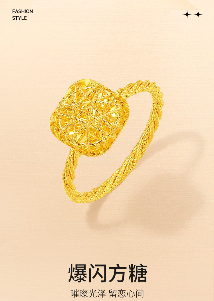 周六福5G黄金戒指女计价足金爆闪方糖手饰节日礼物官方旗舰店