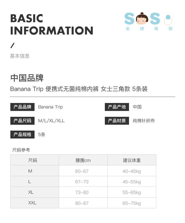 BANANA TRIP便携式无菌纯棉内裤-女士三角-白色-L(5条装)B1106
