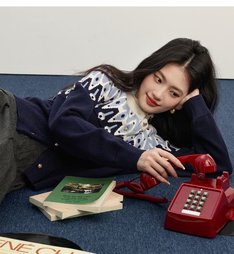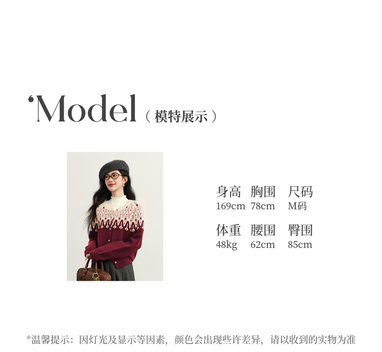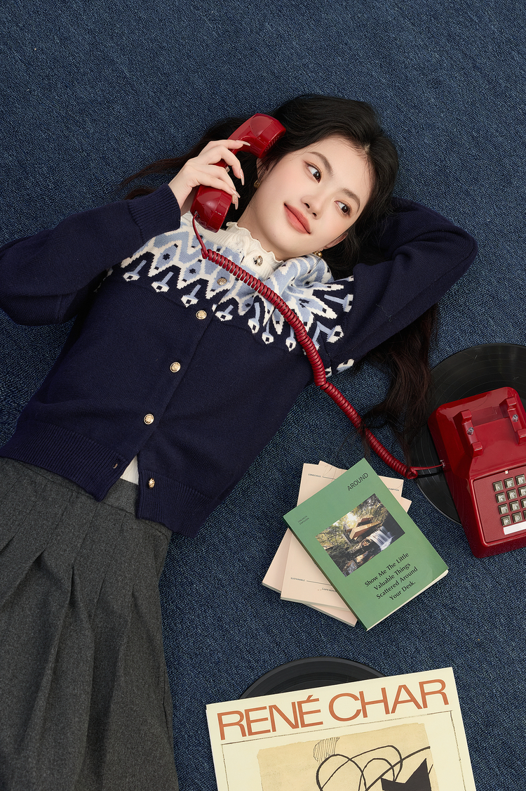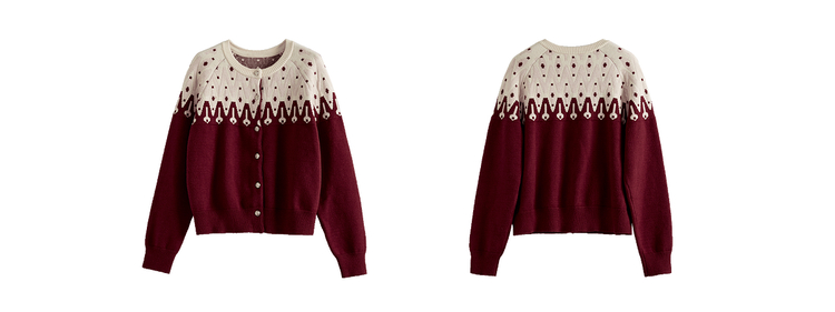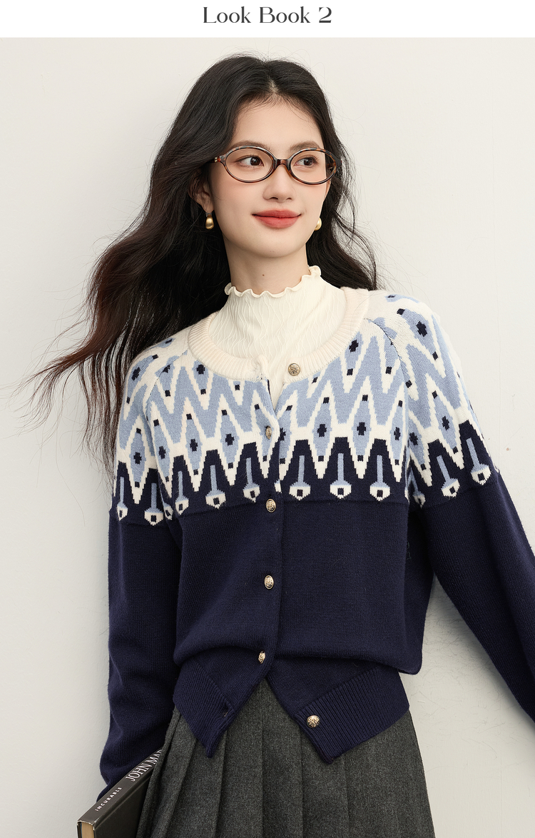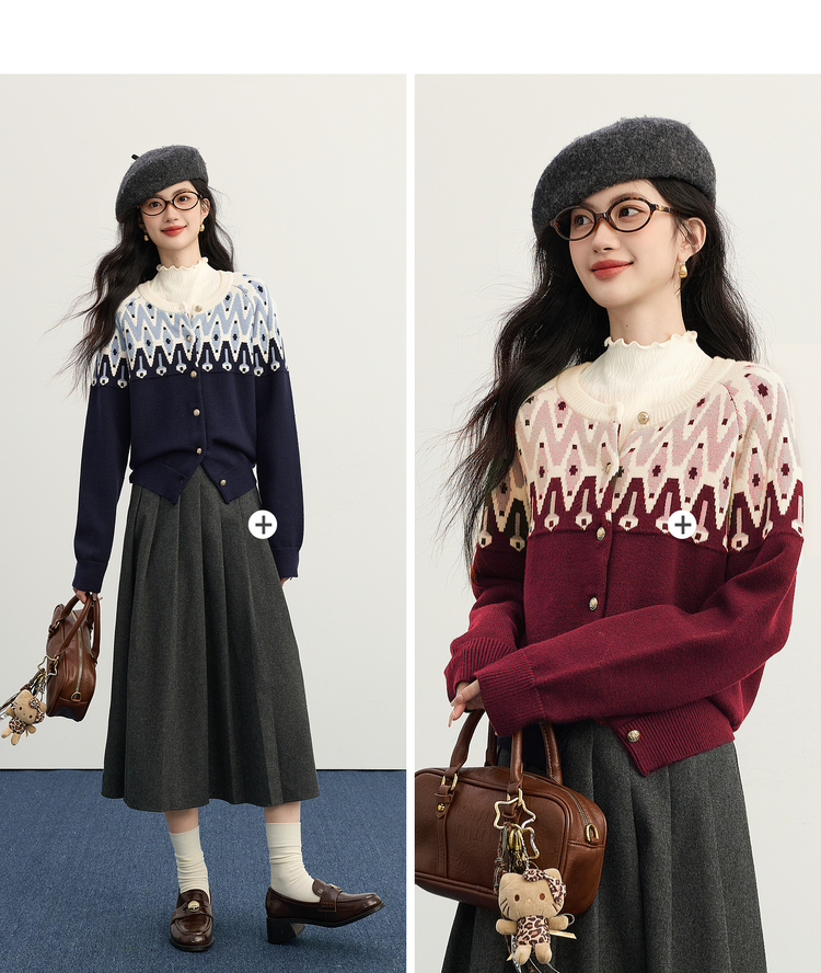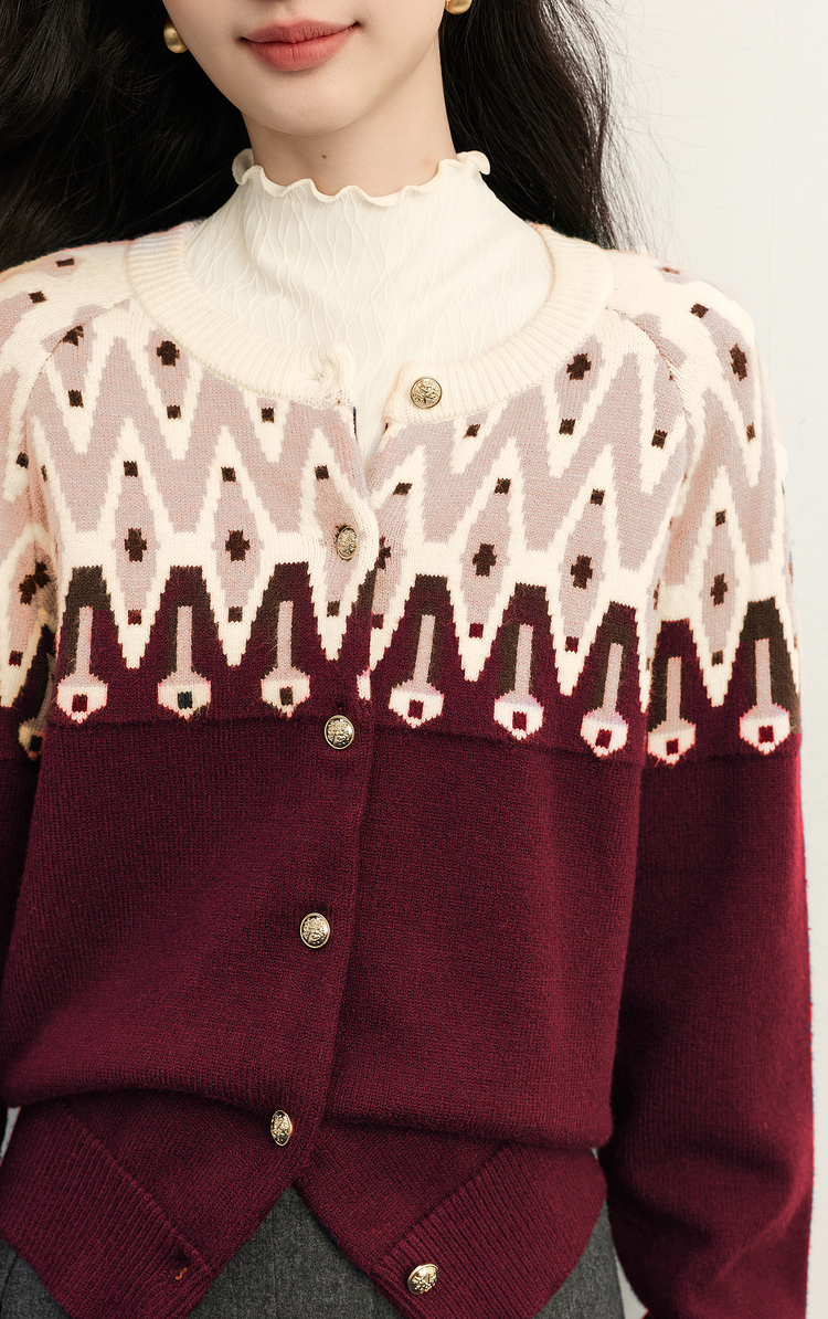 【年货节】熙世界北欧风新年费尔岛提花毛衣女2025秋冬新款圆领针织开衫上衣