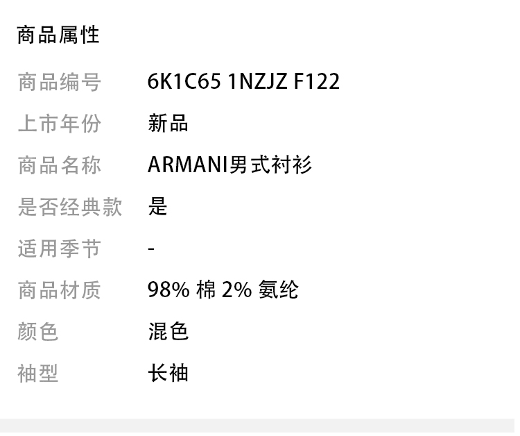 EMPORIO ARMANI 阿玛尼 男士长袖衬衫 混色 6K1C65 1NZJZ F122