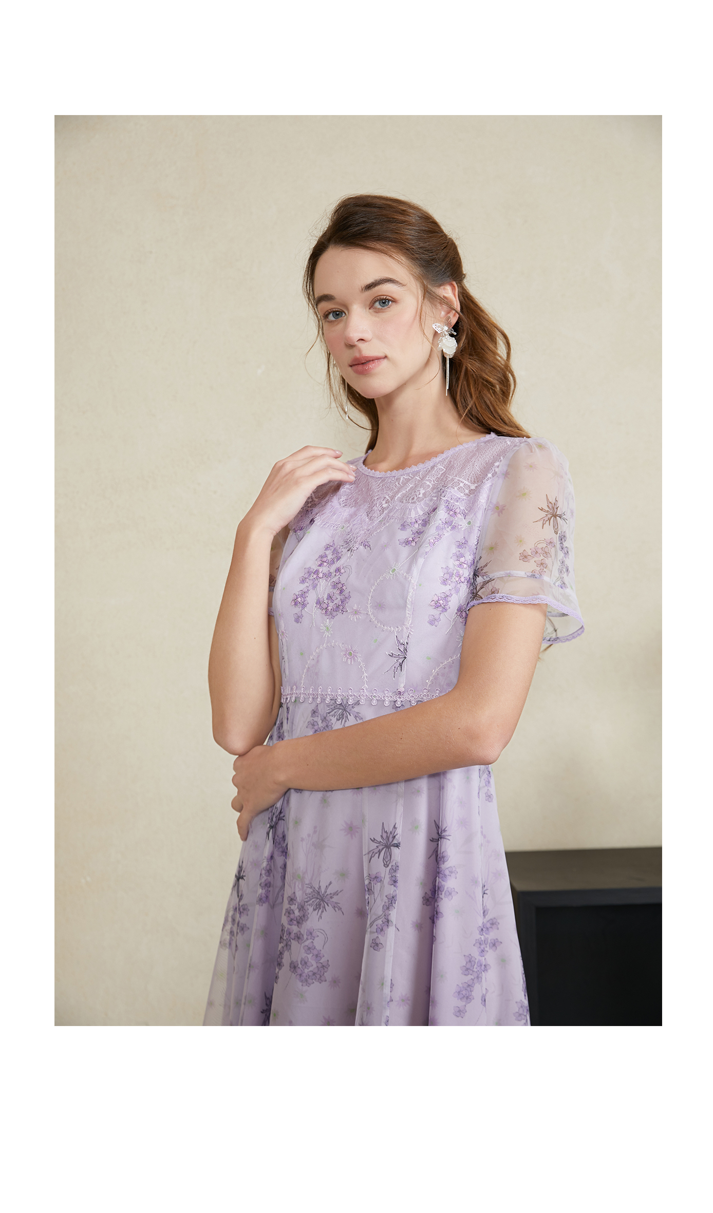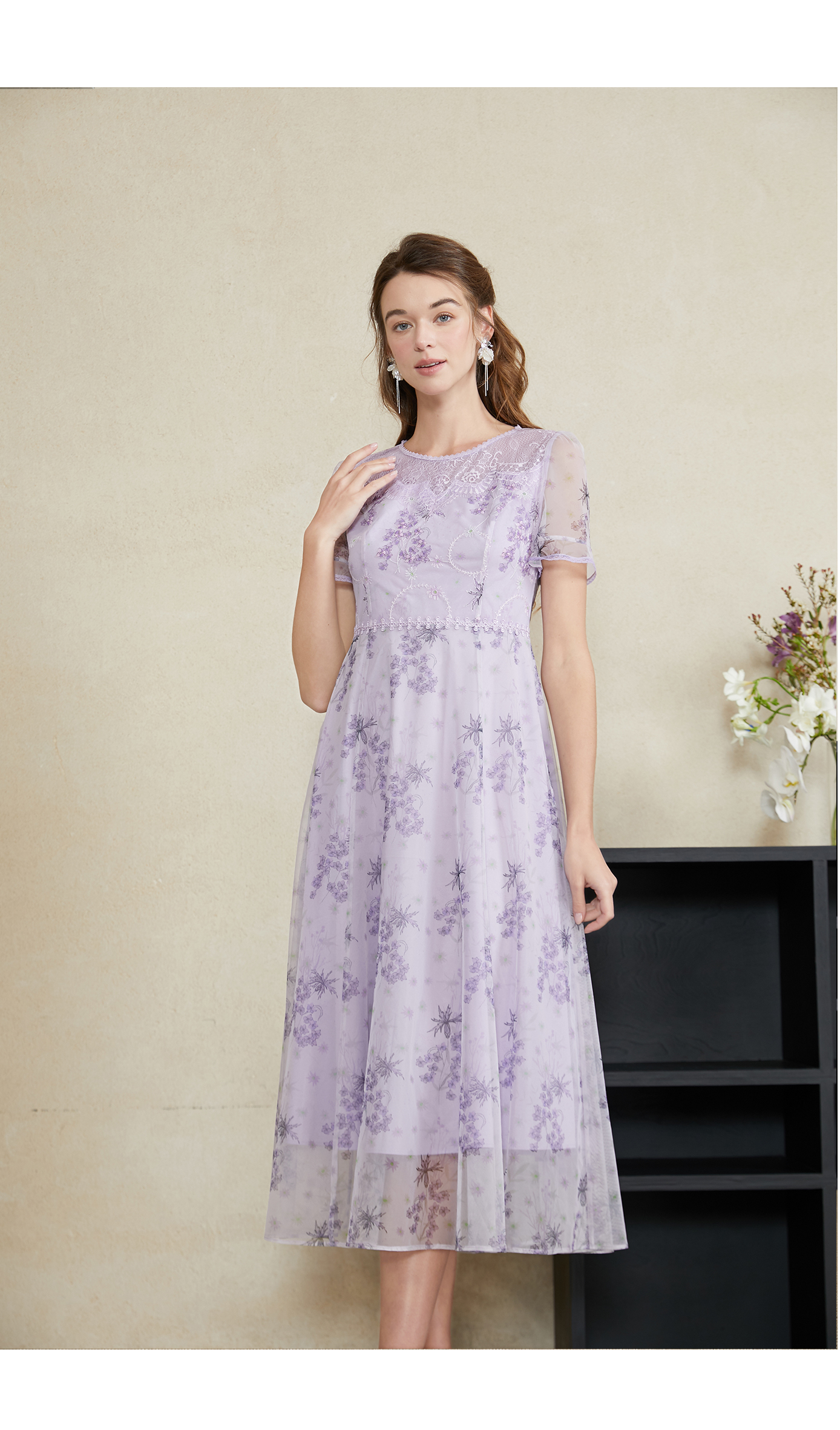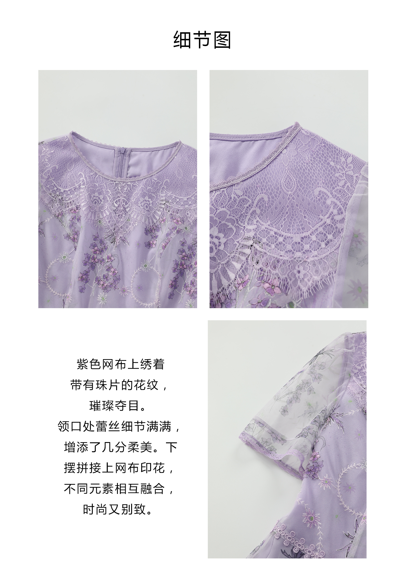 司歌蕾丝刺绣仙气短袖收腰连衣裙A911074X