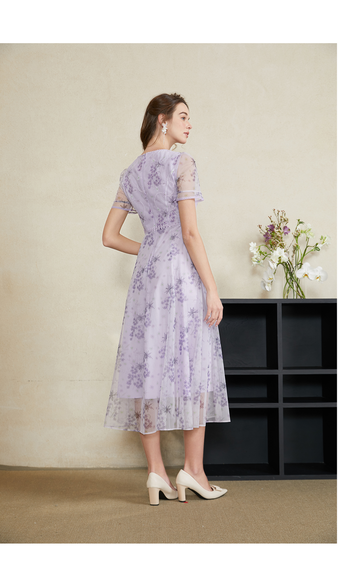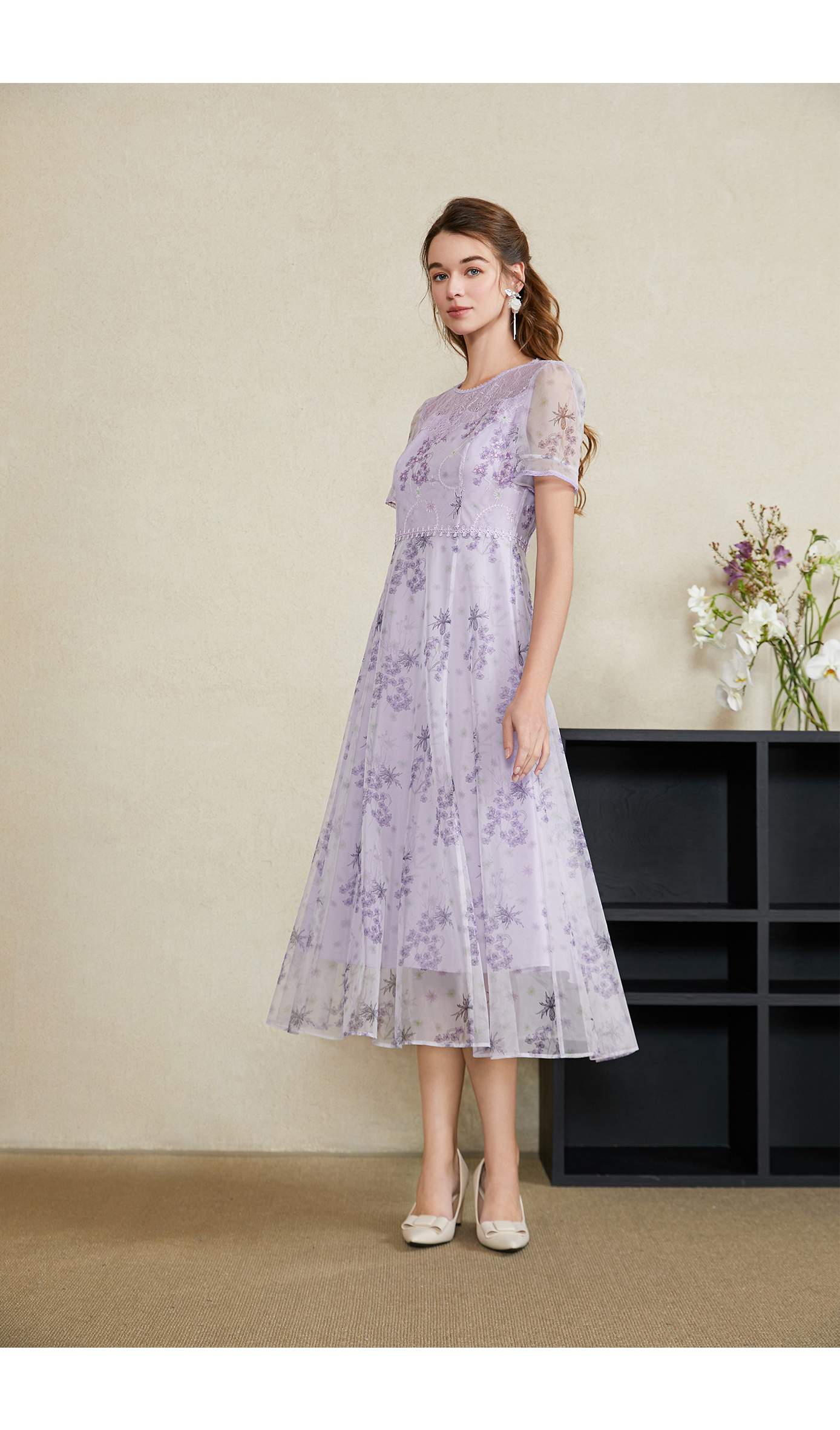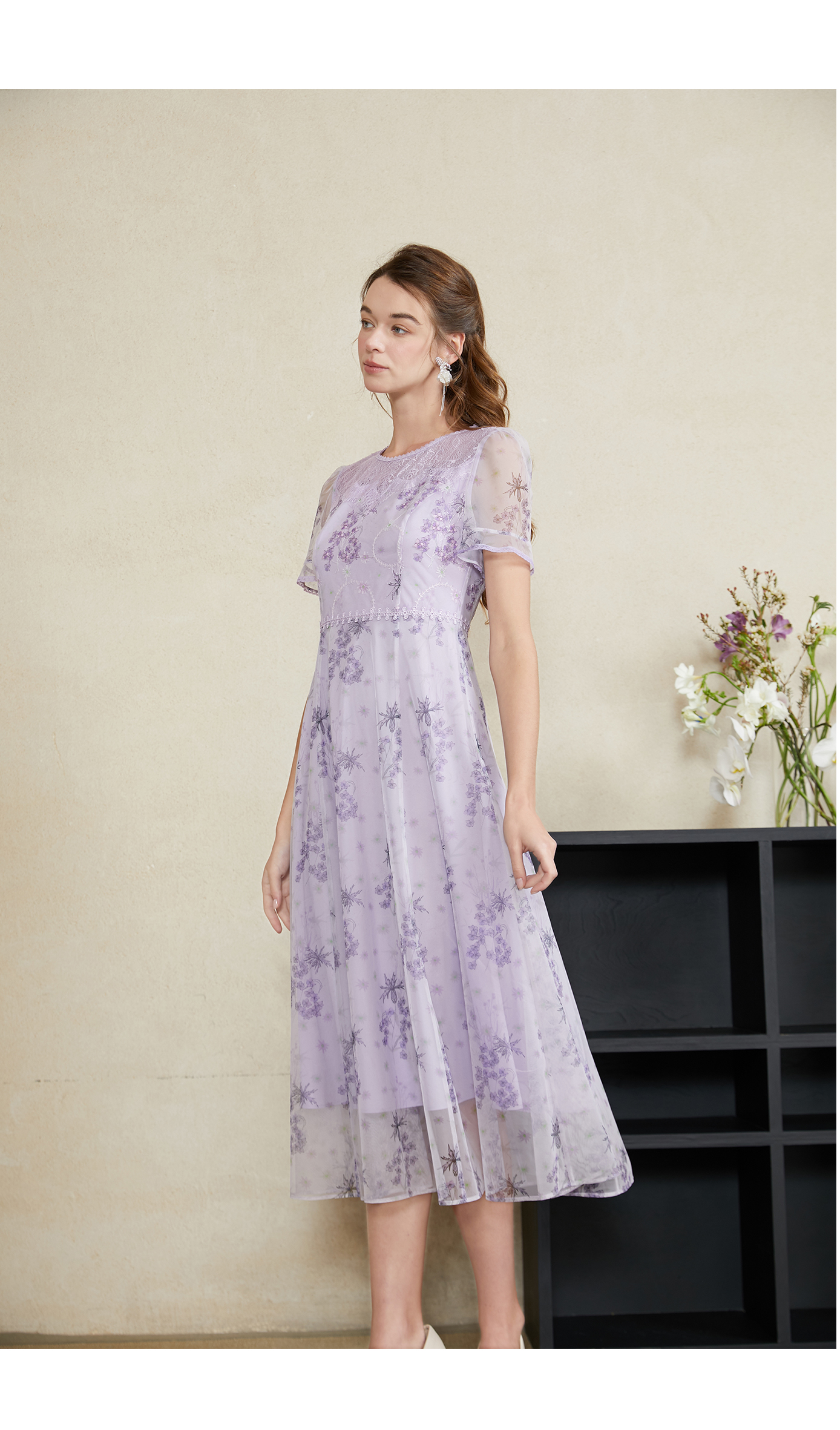 司歌蕾丝刺绣仙气短袖收腰连衣裙A911074X