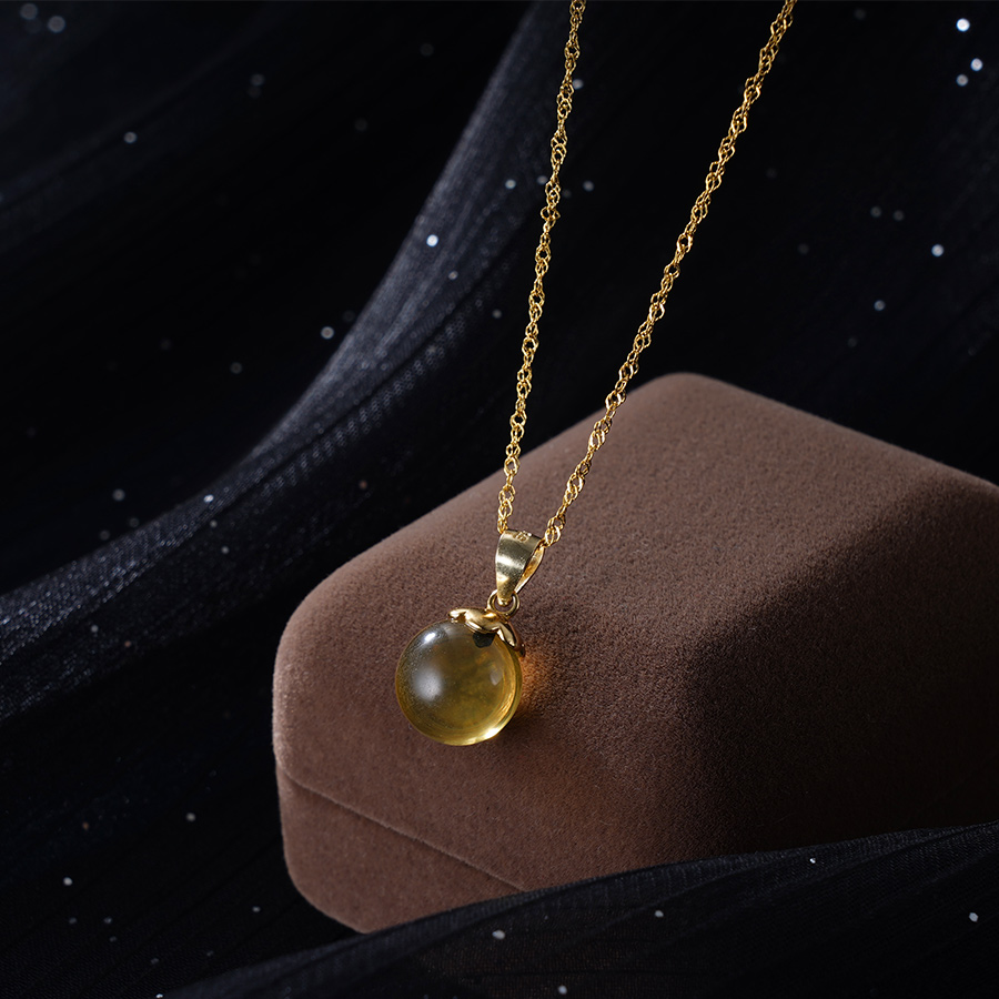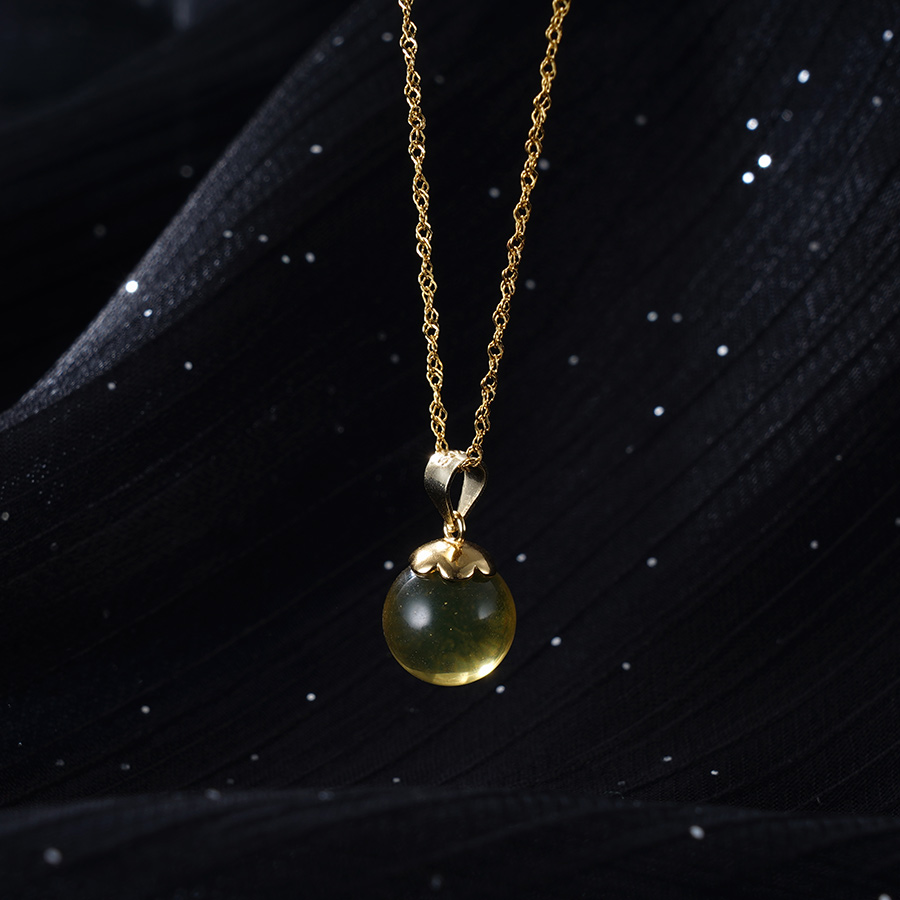 子佩集S925银【新曦】套链项链【D1020】纯银琥珀镀金蓝珀2404