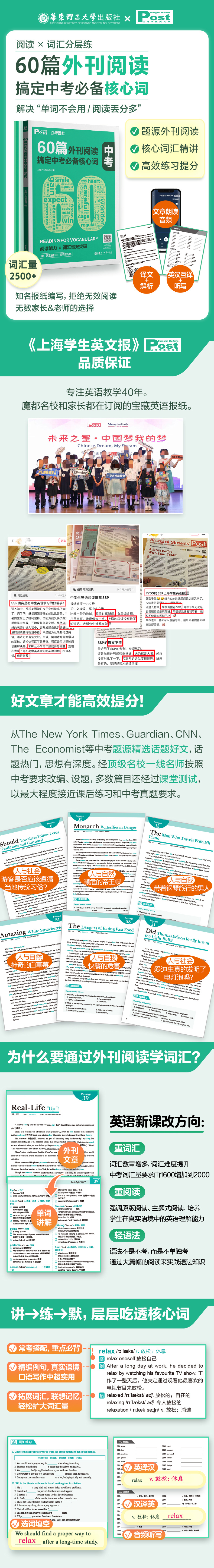 SSP华东理工60篇外刊阅读搞定中考、小学、小托福、KET、PET必备核心词