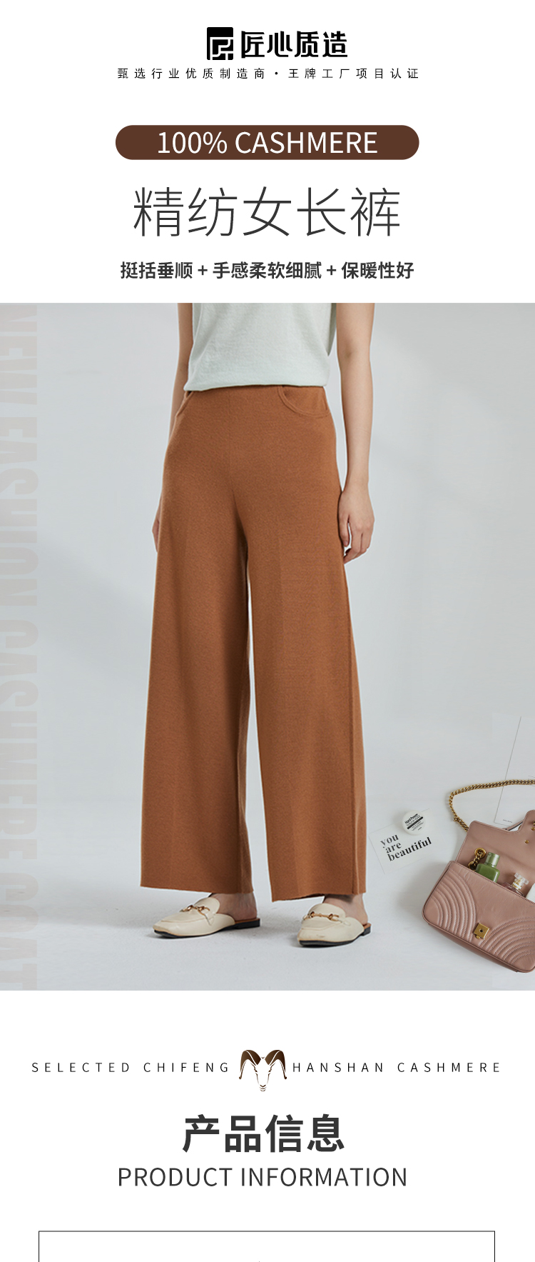 东黎 • 山羊绒 女士春夏季精纺垂感显瘦阔腿裤 4201
