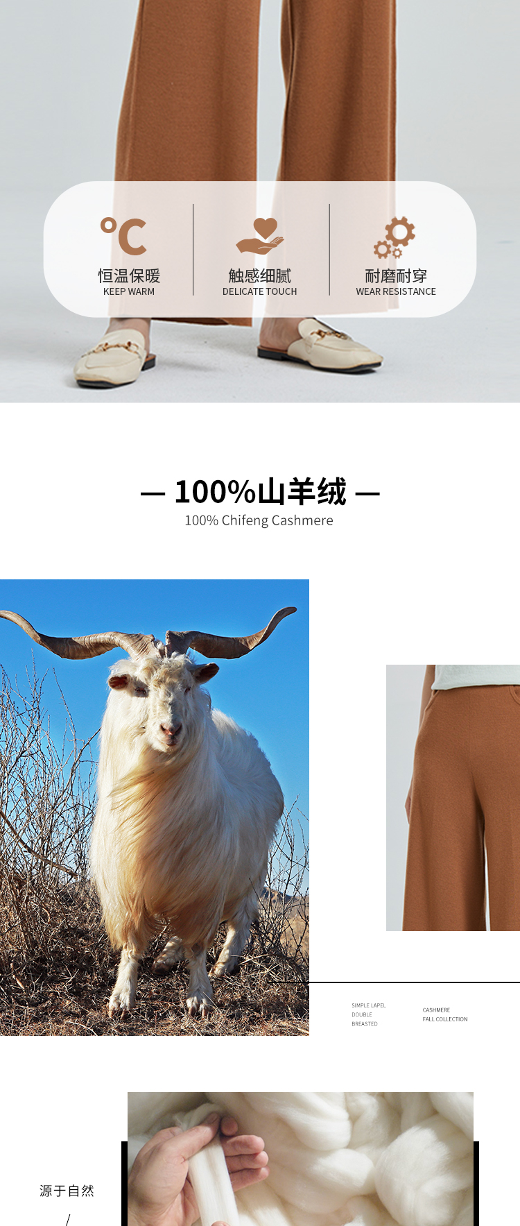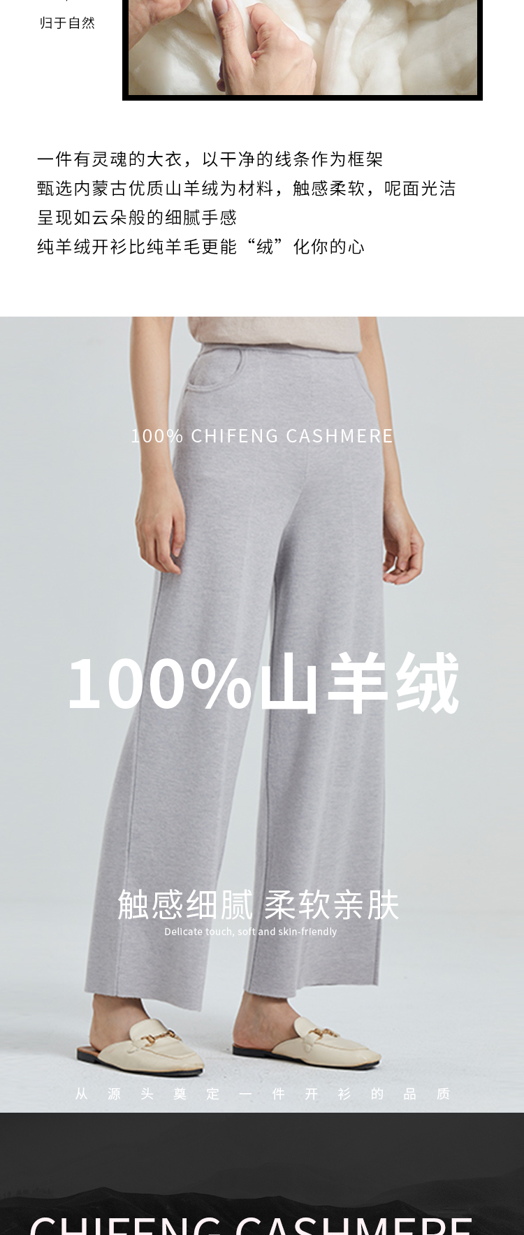 东黎羊绒是赤峰东荣集团自主品牌,自有牧场/羊绒制品全产业链优势,实现了羊绒从“牧场”到“商场”的华丽转变。