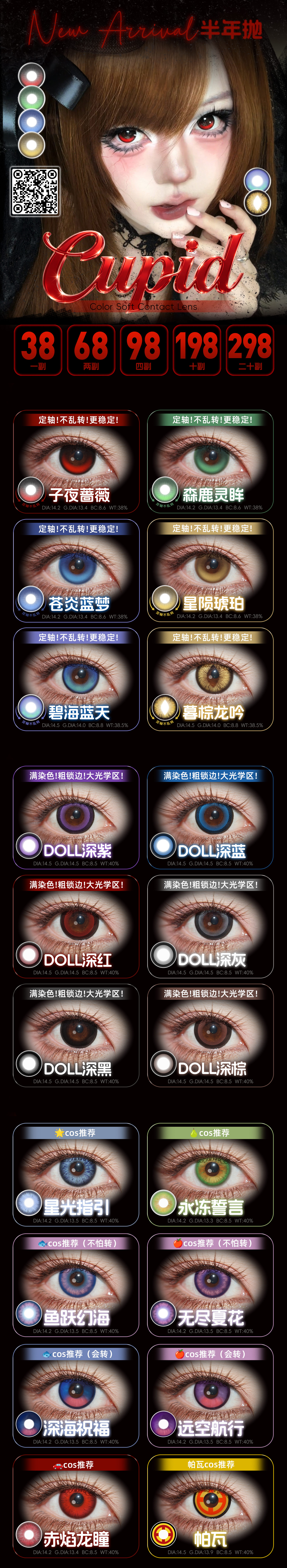 【活动】CUPID半年抛 新品 定轴 子夜蔷薇/森鹿灵眸/碧海蓝天/暮棕龙吟 DOLL系列/星光指引/永冻誓言/鱼跃幻海/赤焰龙瞳 COS竖瞳 恋与深空/夏以昼/黎深/祁煜/电锯人 满着色渐变显色美瞳