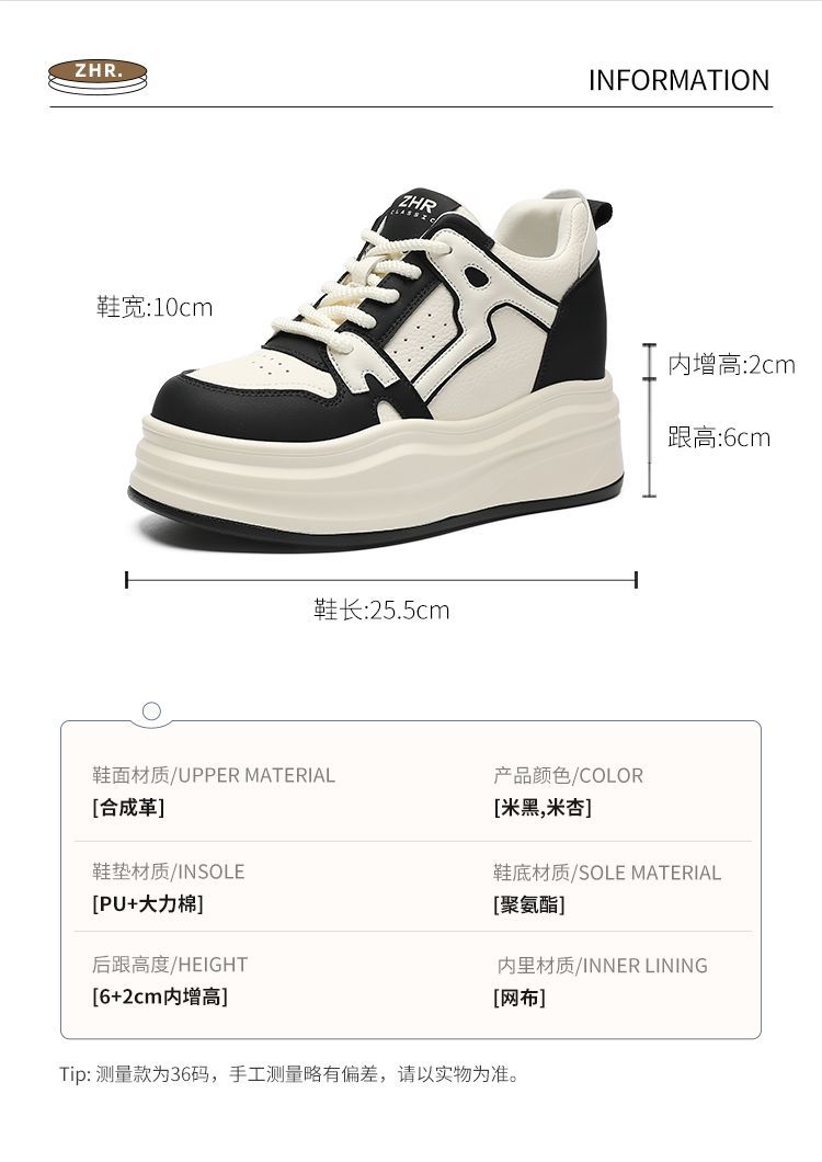 ZHR则则【增高8cm】厚底高帮休闲鞋女2025春季新款透气轻便运动鞋