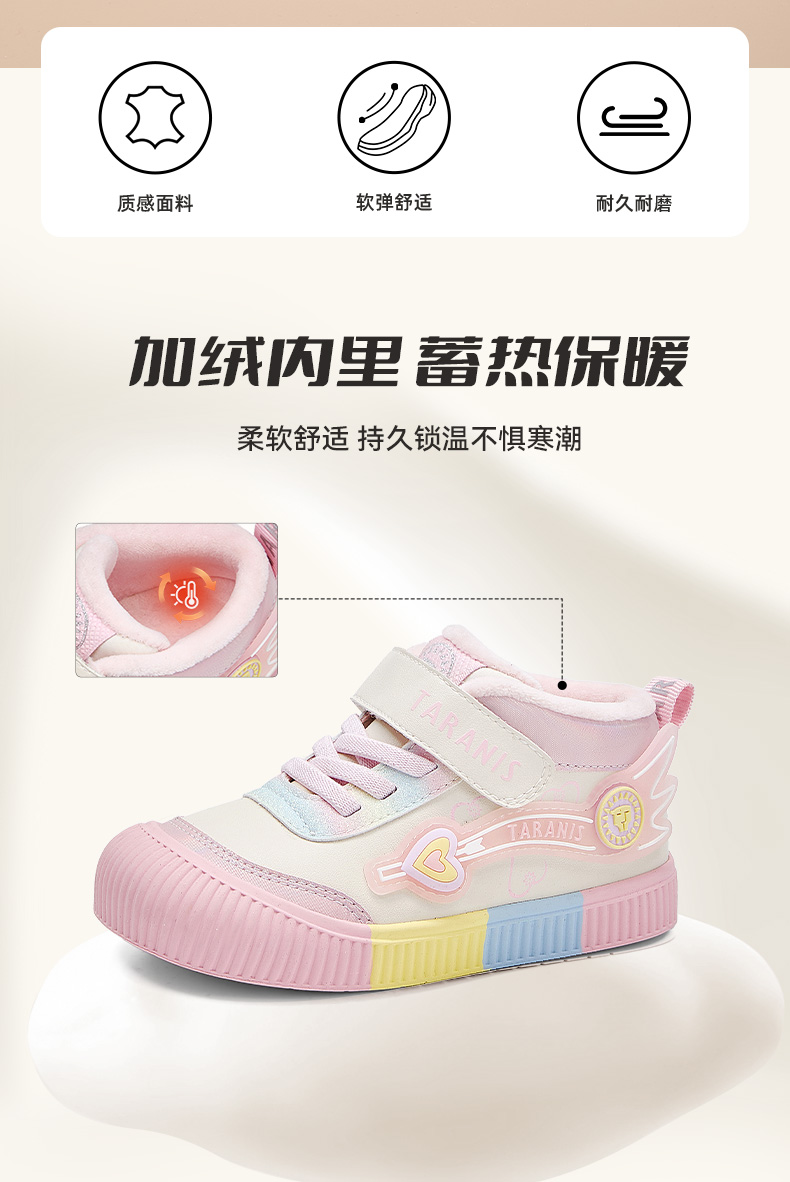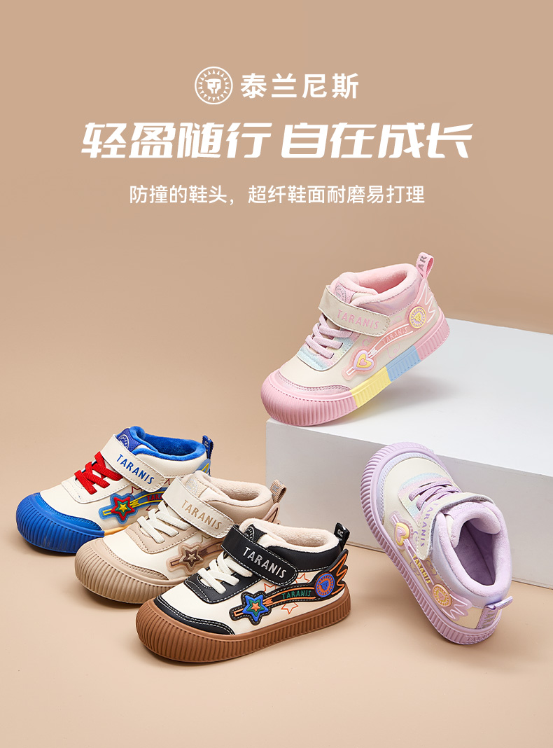 泰兰尼斯冬款男女童加绒幼儿园室内室外包头防踢休闲鞋T02X5D8350
