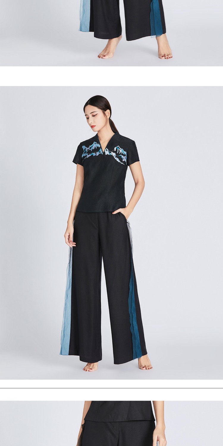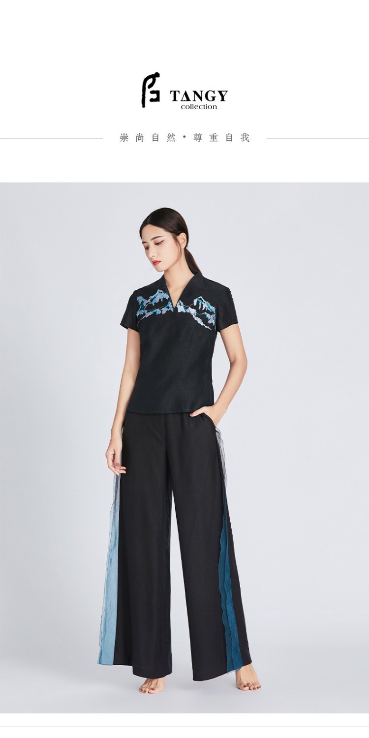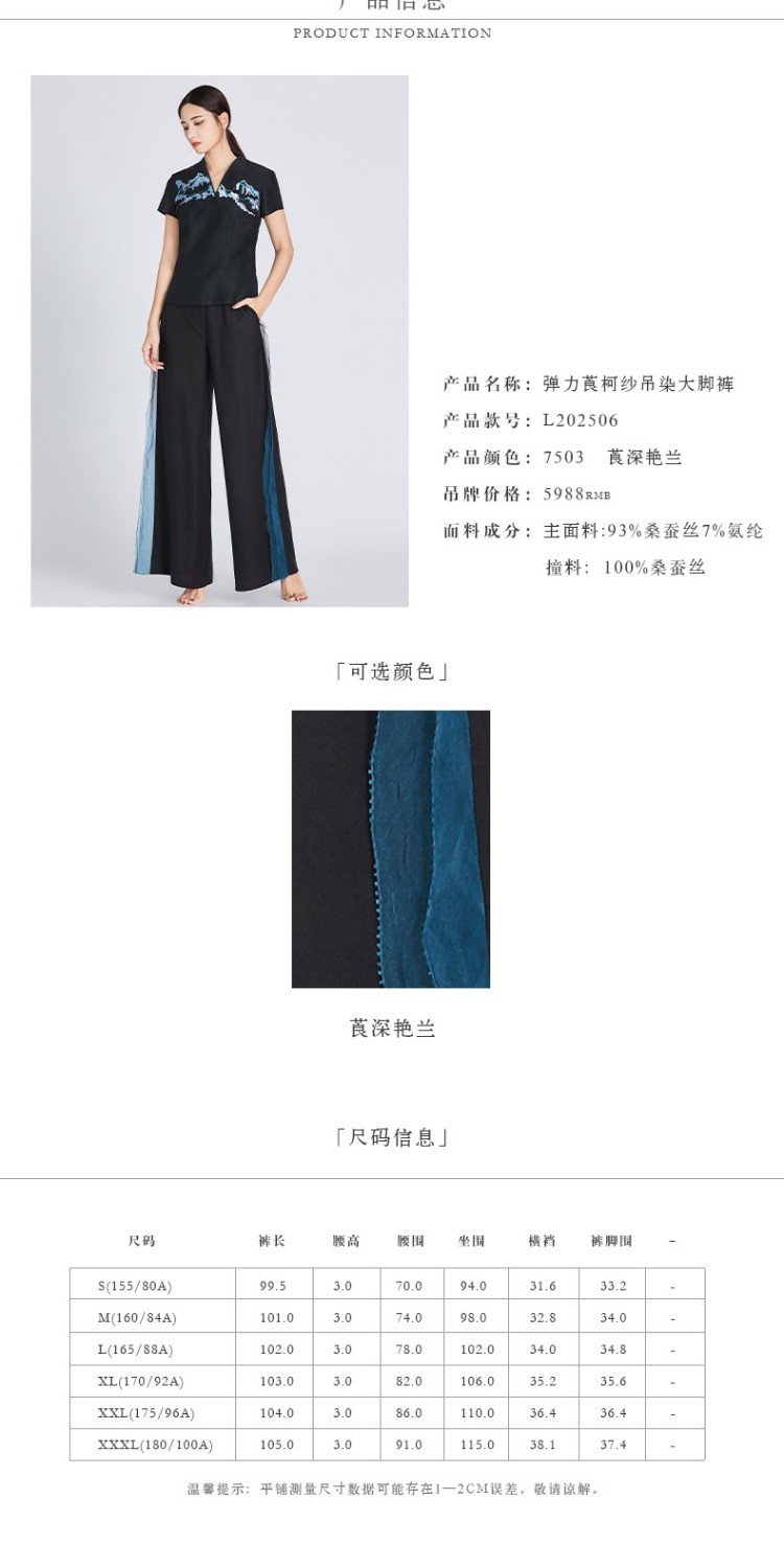 TANGY Collection/天意精品夏季新品雪傍系列弹力莨柯纱吊染大脚裤