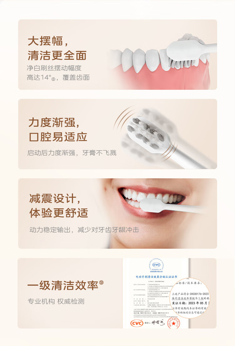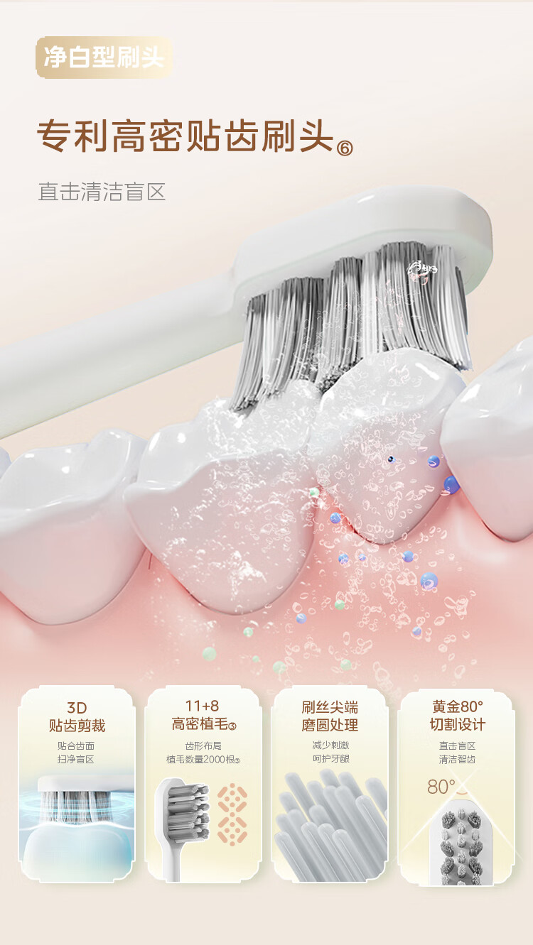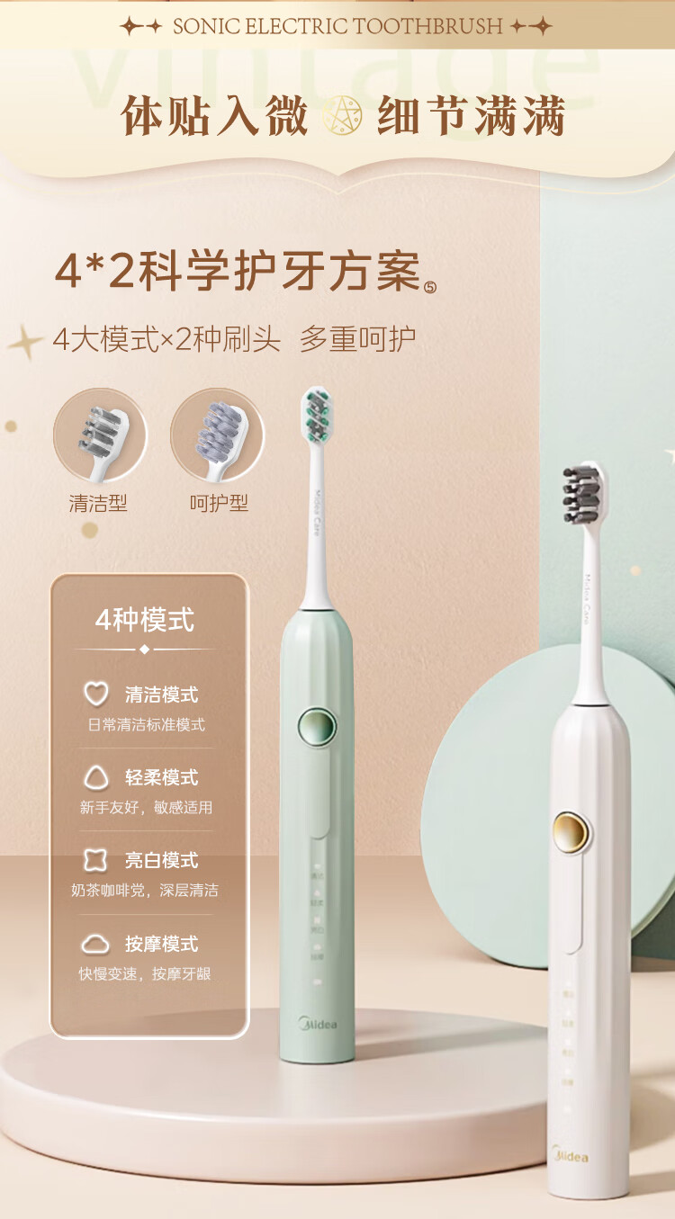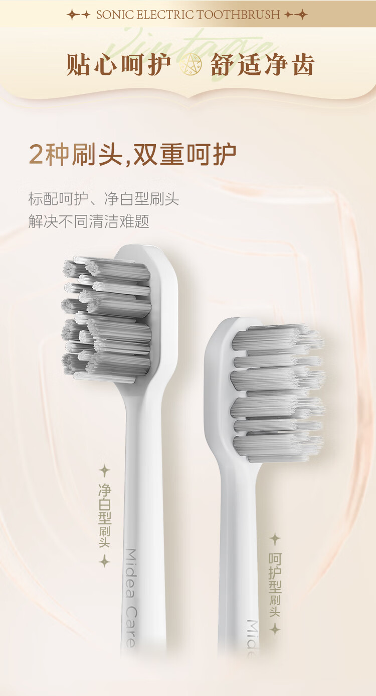 美的(Midea)S5 电动牙刷成人 声波震动 220天长续航 智能换区提醒 软毛刷头*2 情侣款 礼物