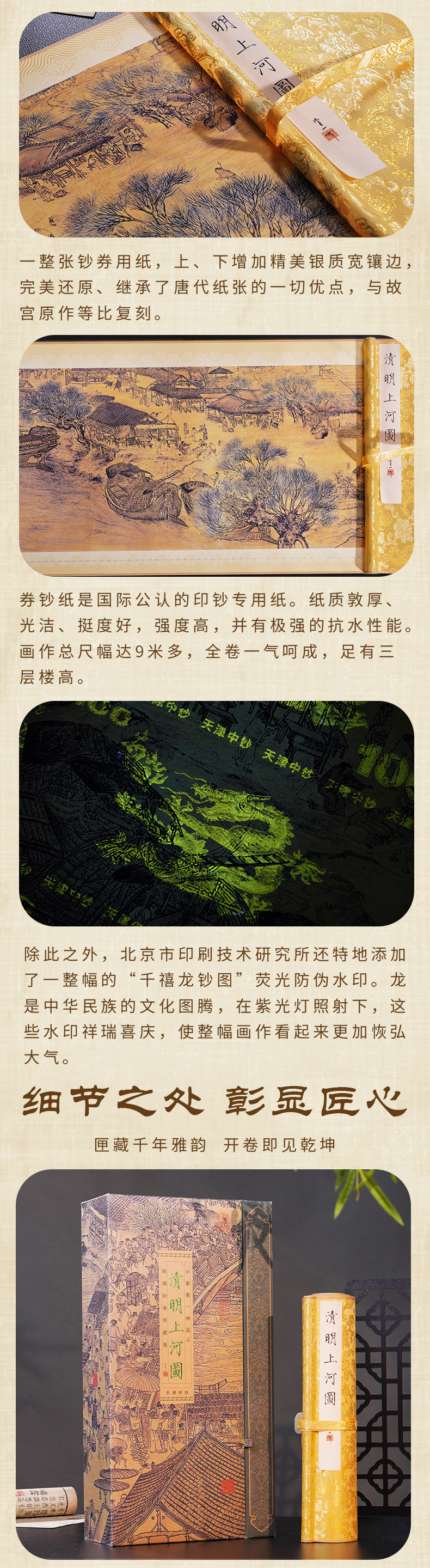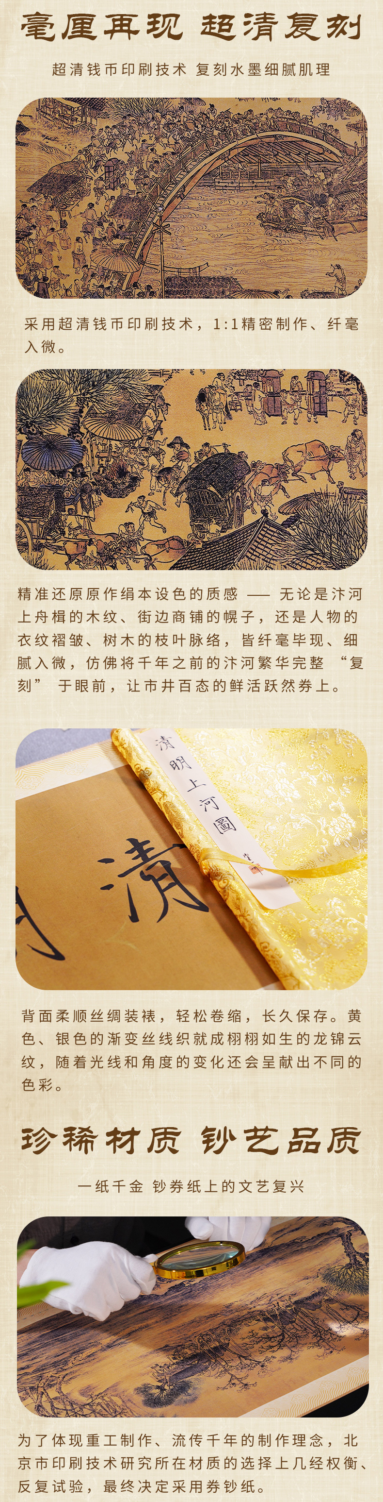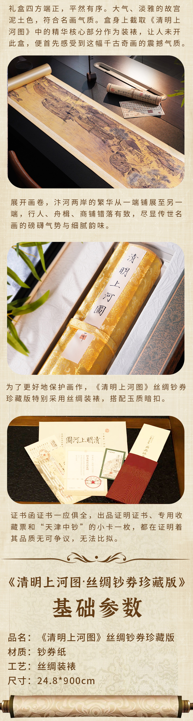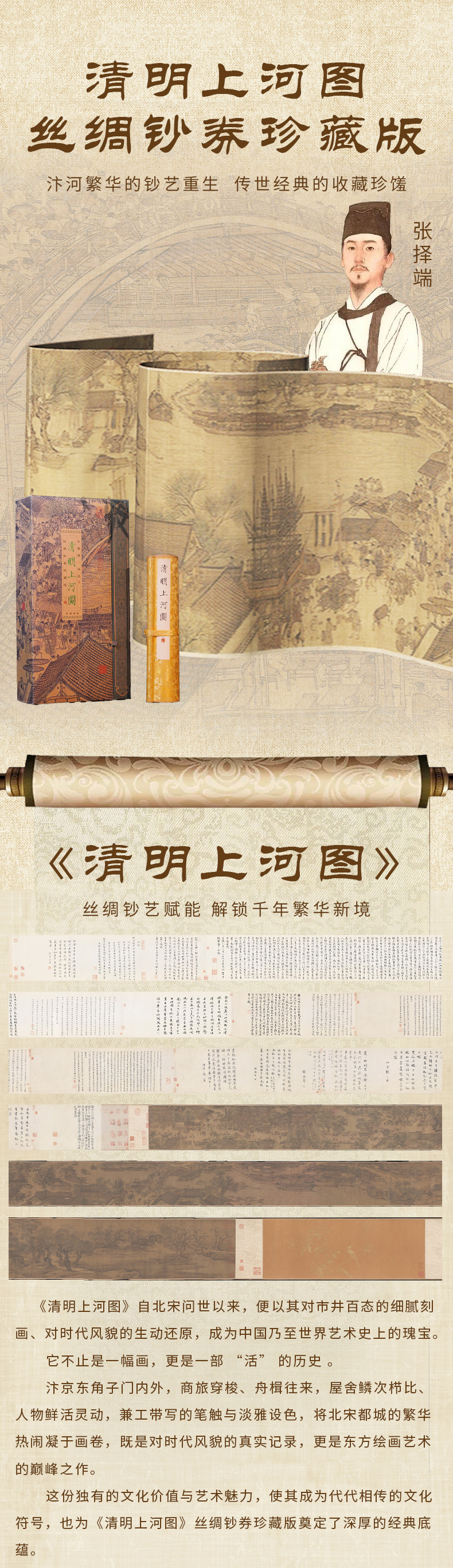 《清明上河图》丝绸钞券珍藏版, 1:1原迹复刻,9米超长画卷尽展北宋盛世风华
