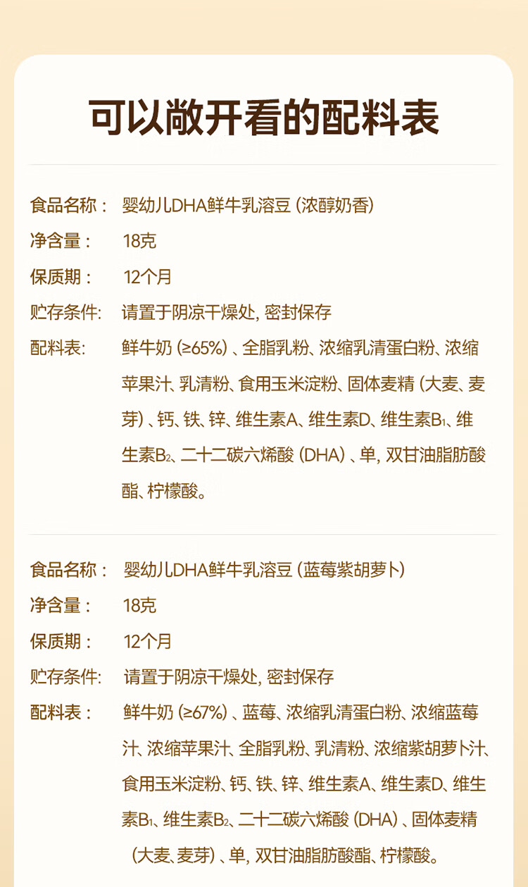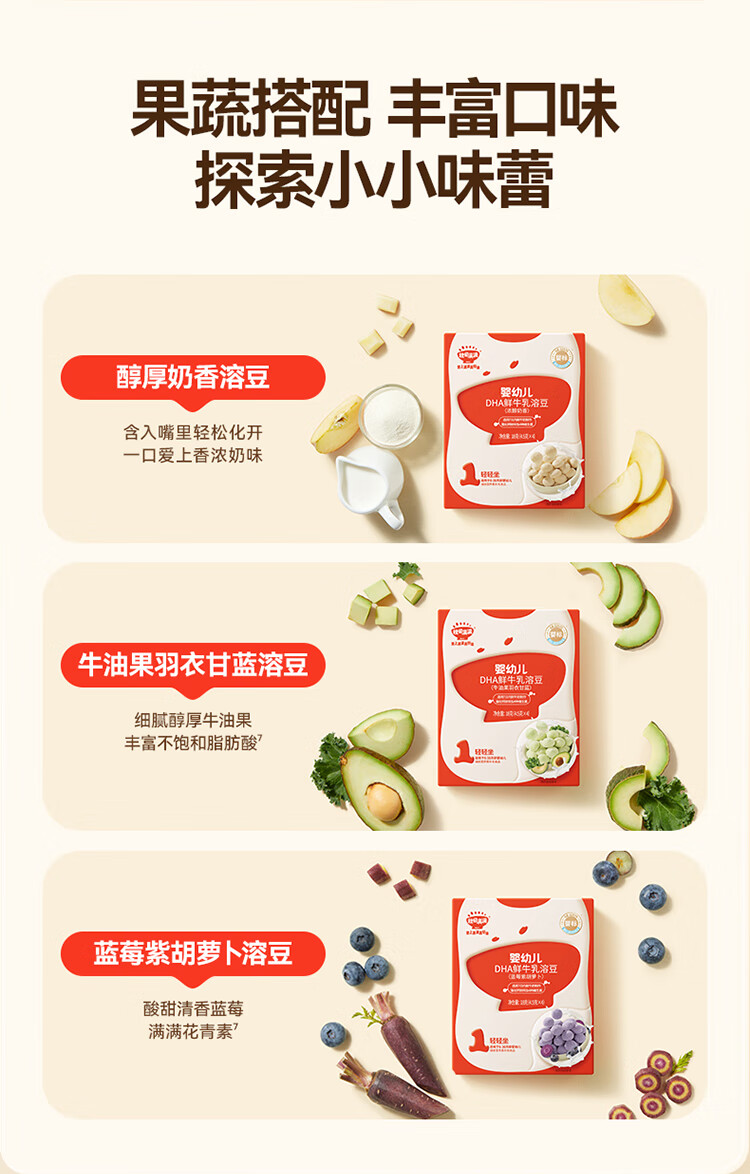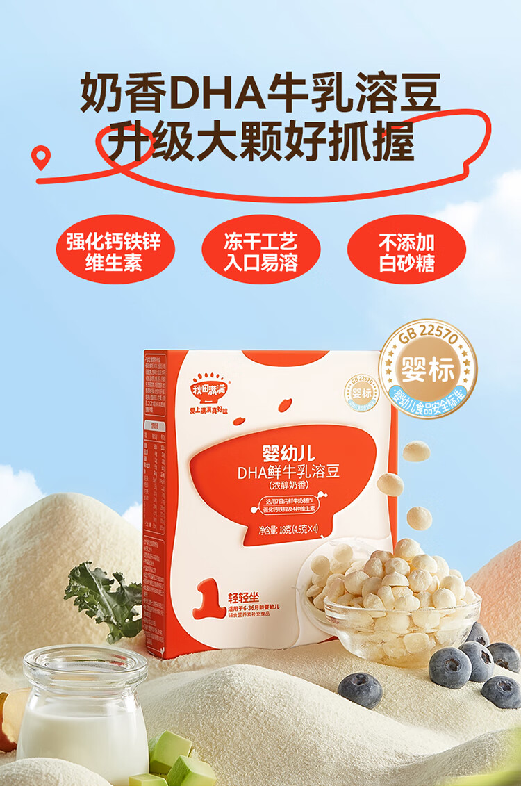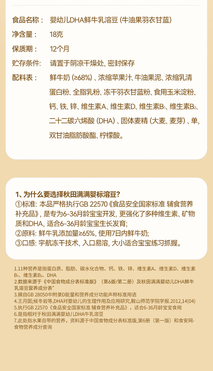 秋田满满--婴幼儿DHA鲜牛乳溶豆(牛油果羽衣甘蓝)18g(6-36月适用)