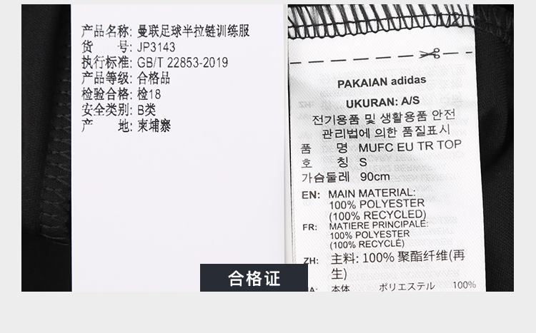 小李子正品ADIDAS阿迪达斯曼联半拉链长袖足球训练服成人男JP3143