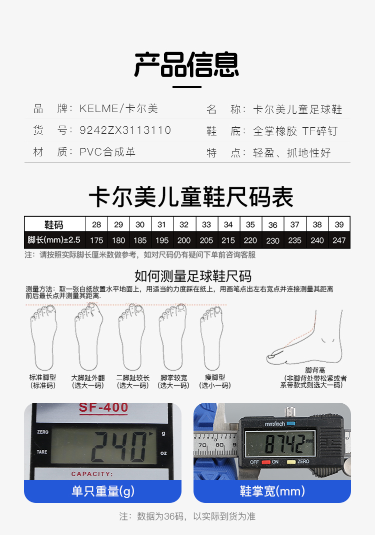 小李子卡尔美儿童足球鞋男童TF碎钉专业校园学生训练鞋男孩女孩