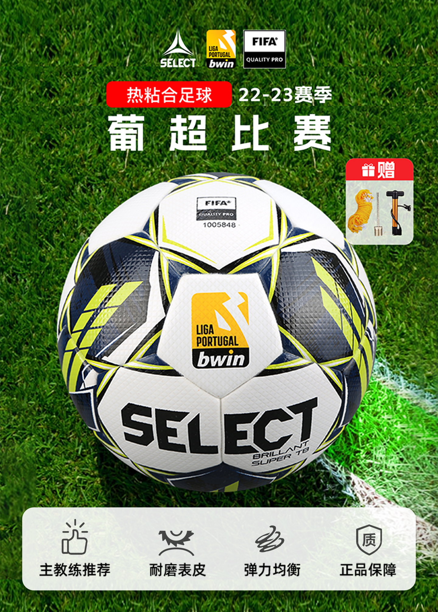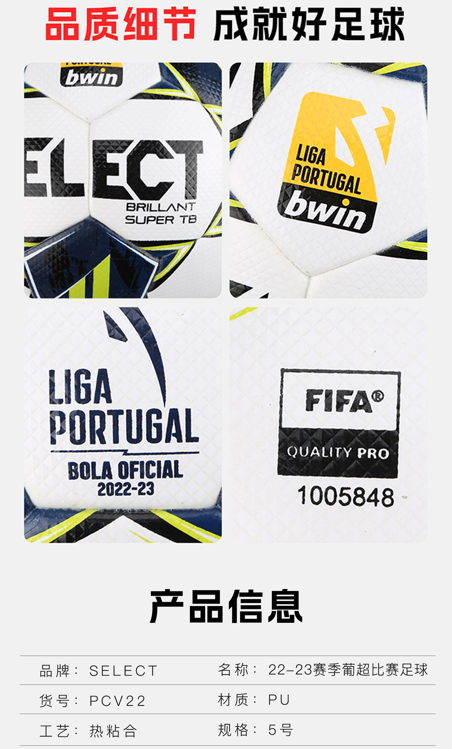小李子SELECTBRILLANT22-23赛季葡超热粘合5号比赛用球成人PCV22