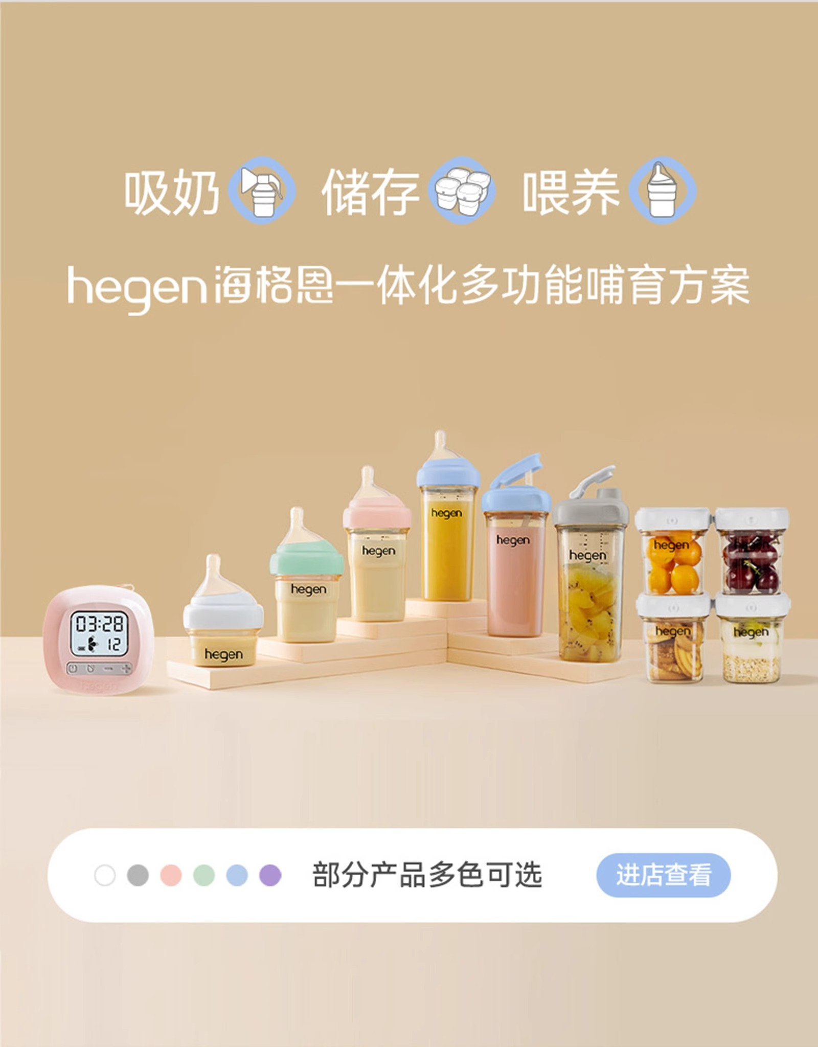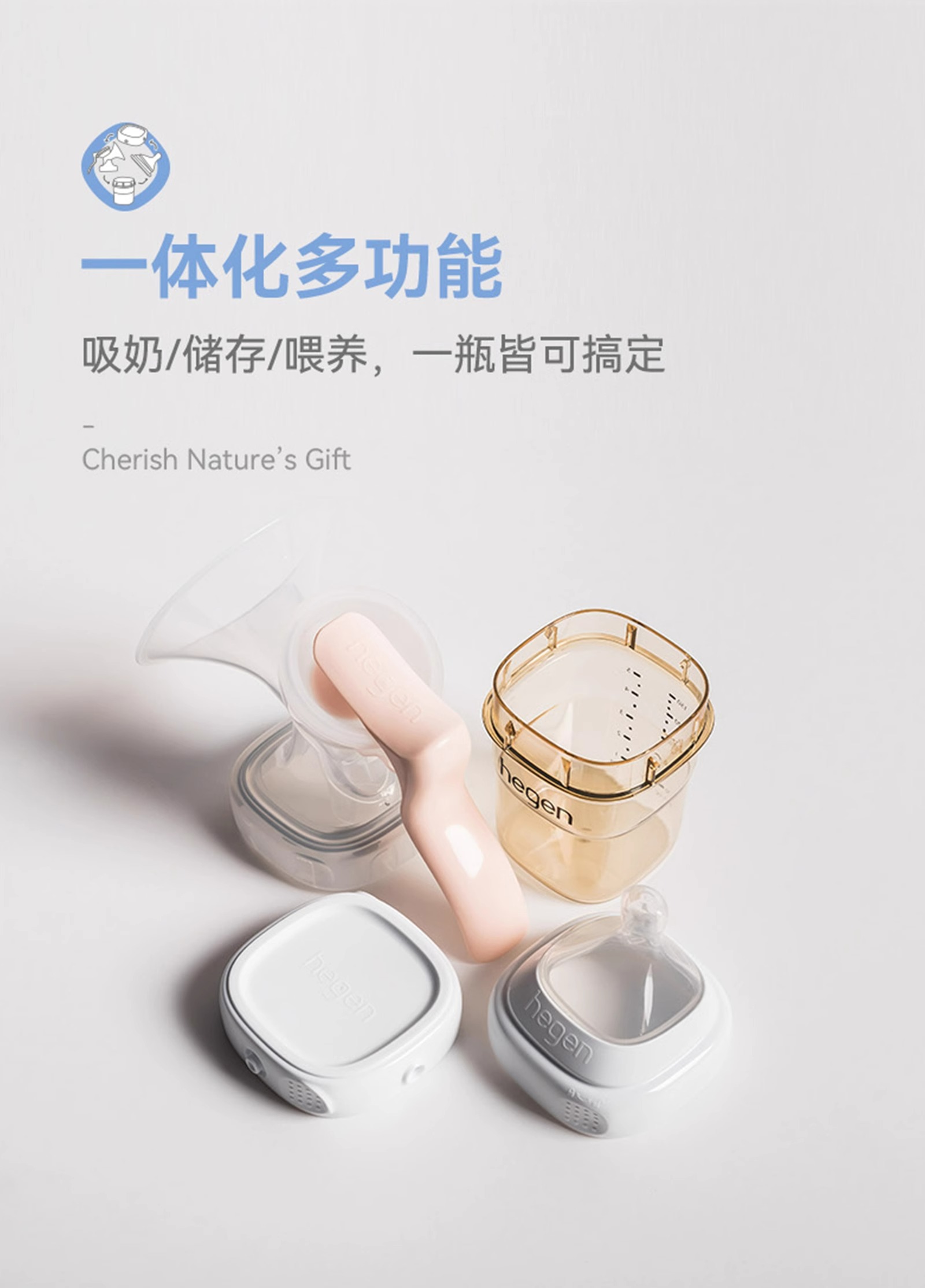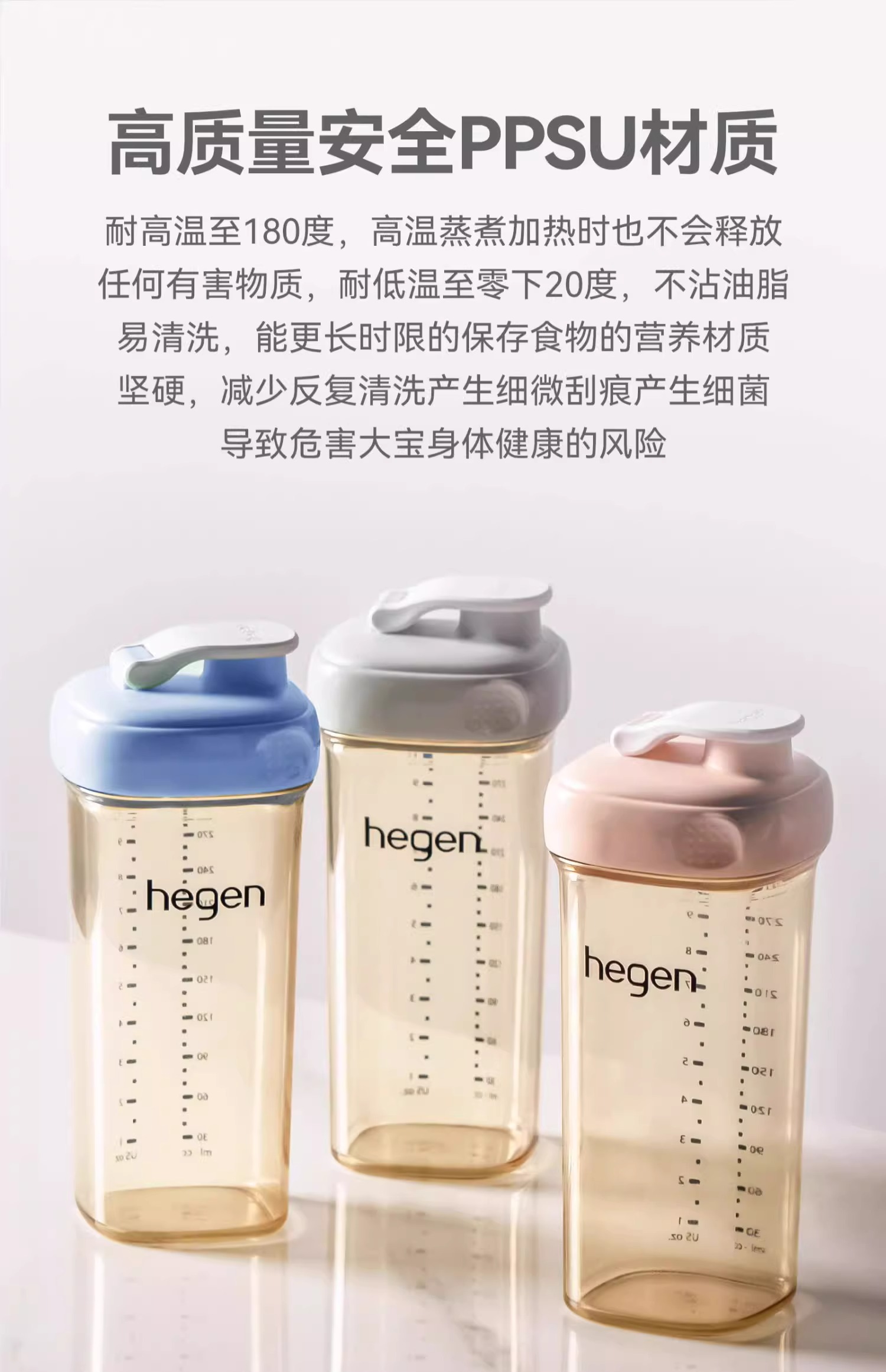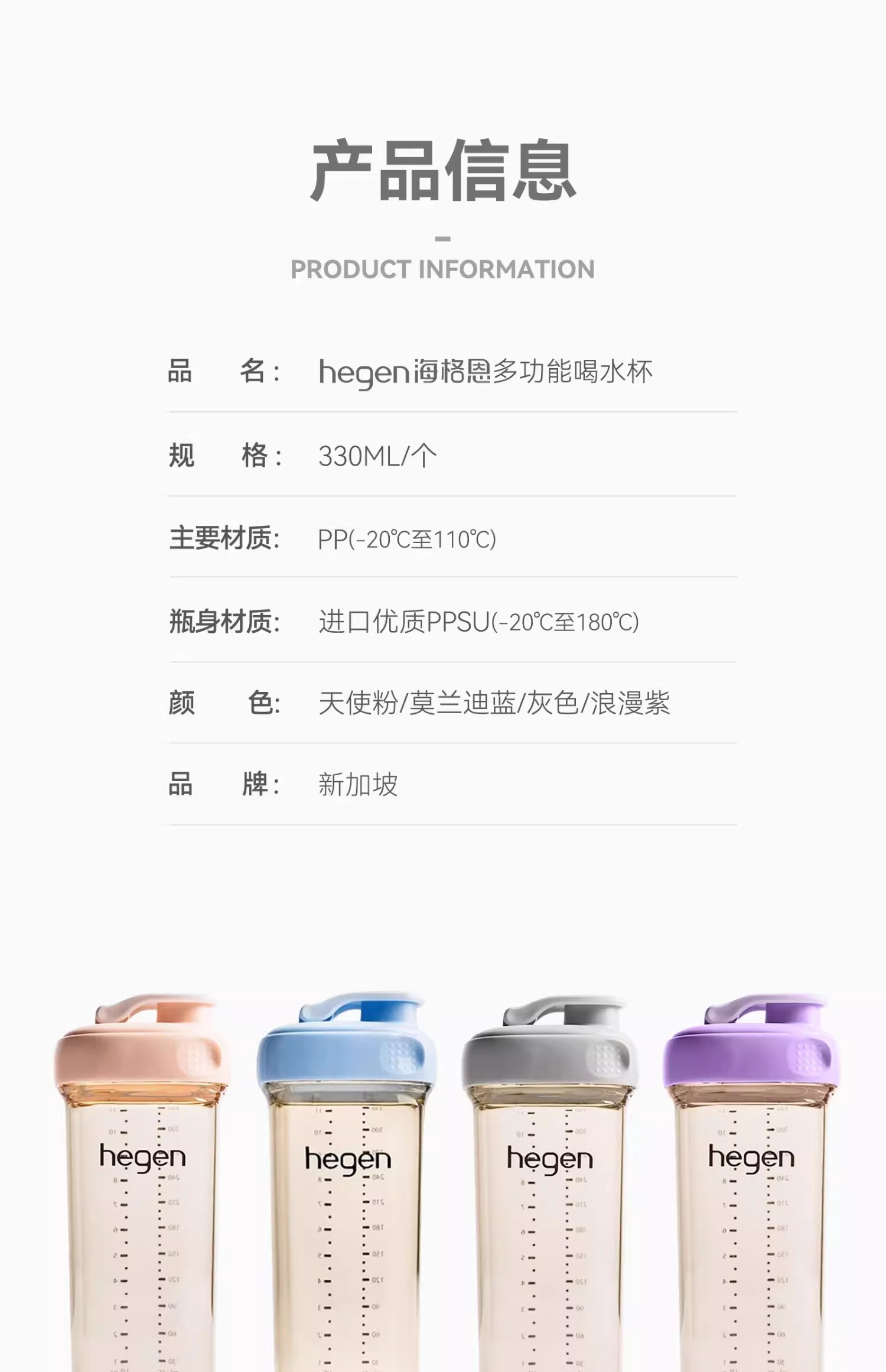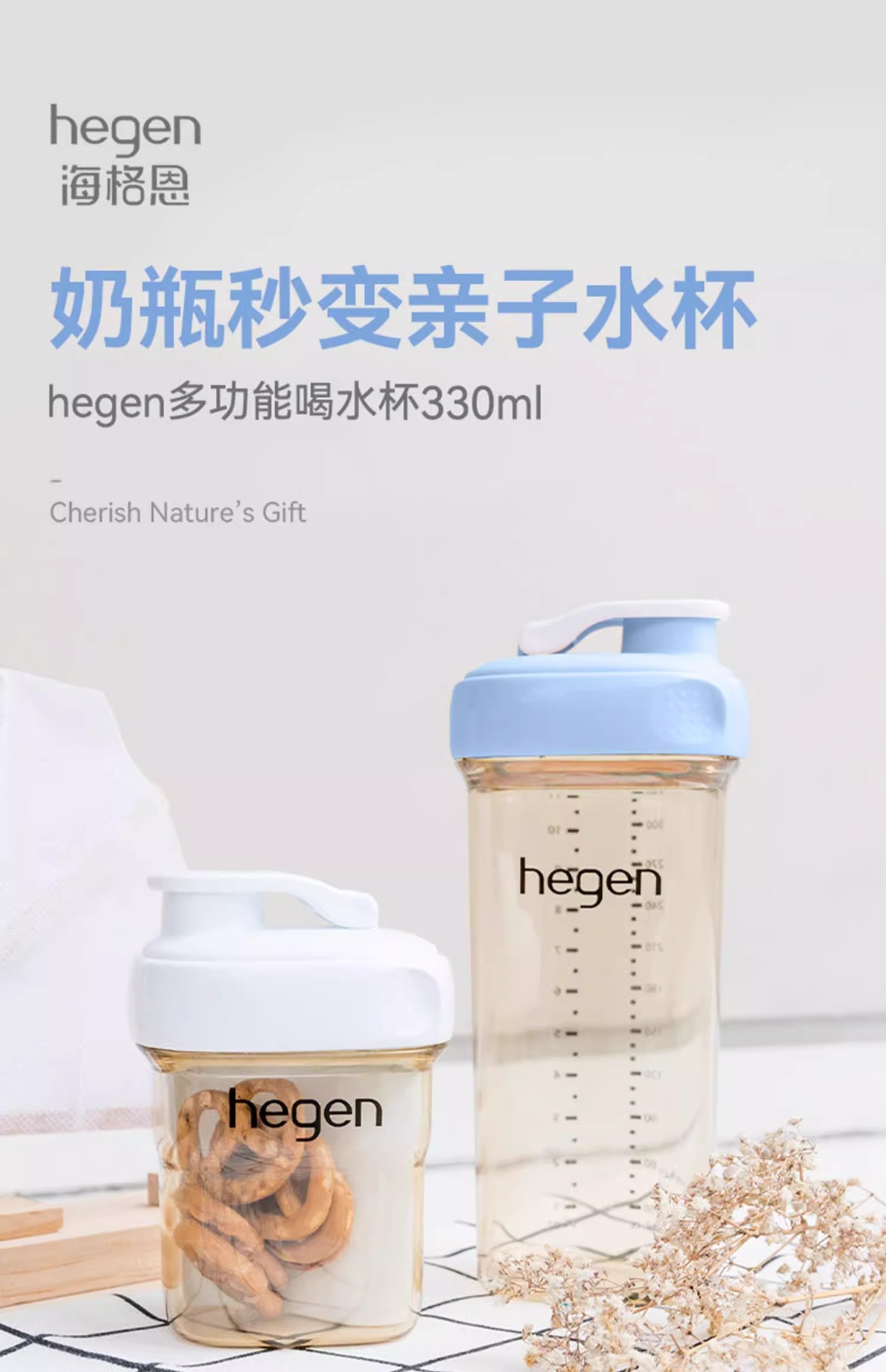 Hegen儿童宽口径PPSU亲子330ml喝水杯(粉色)