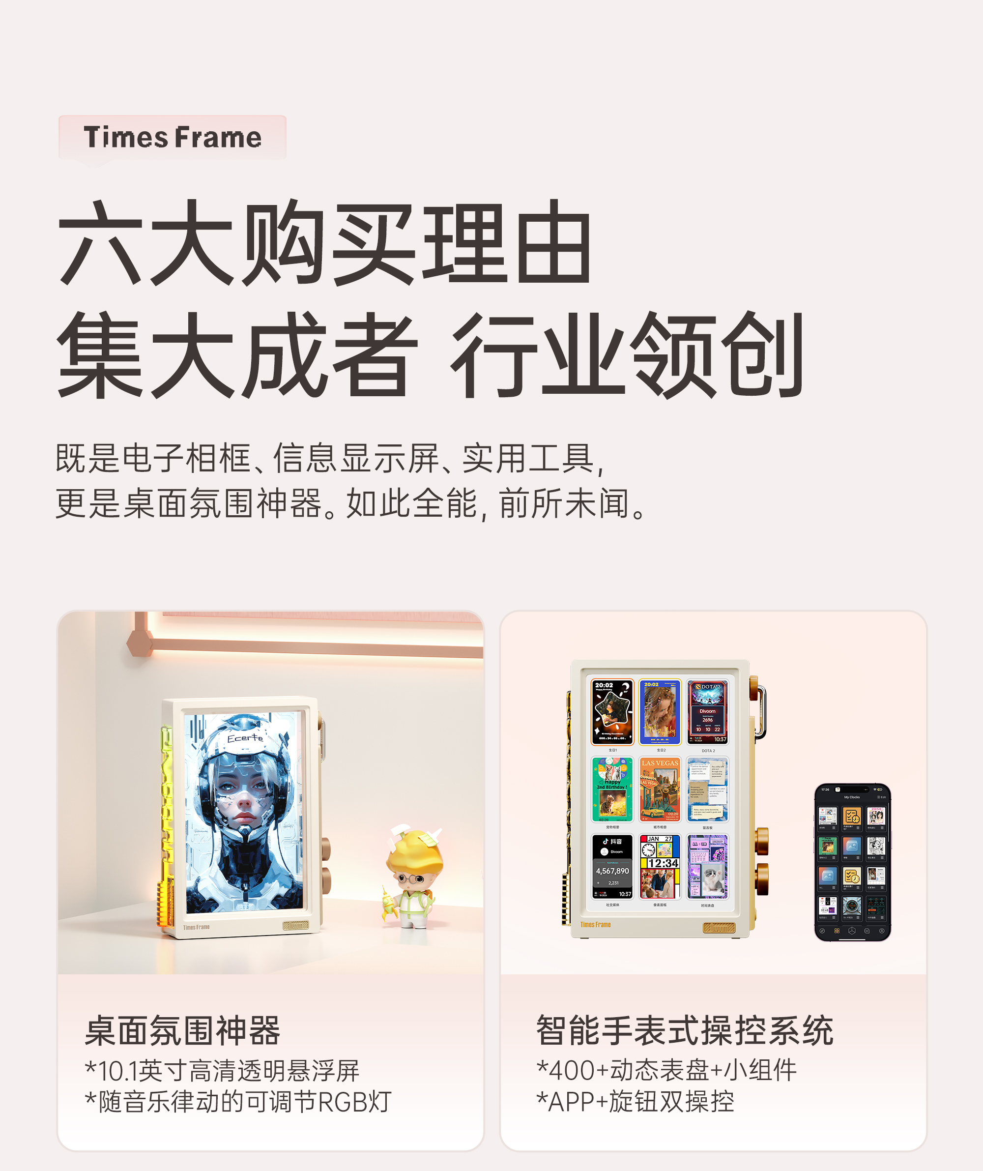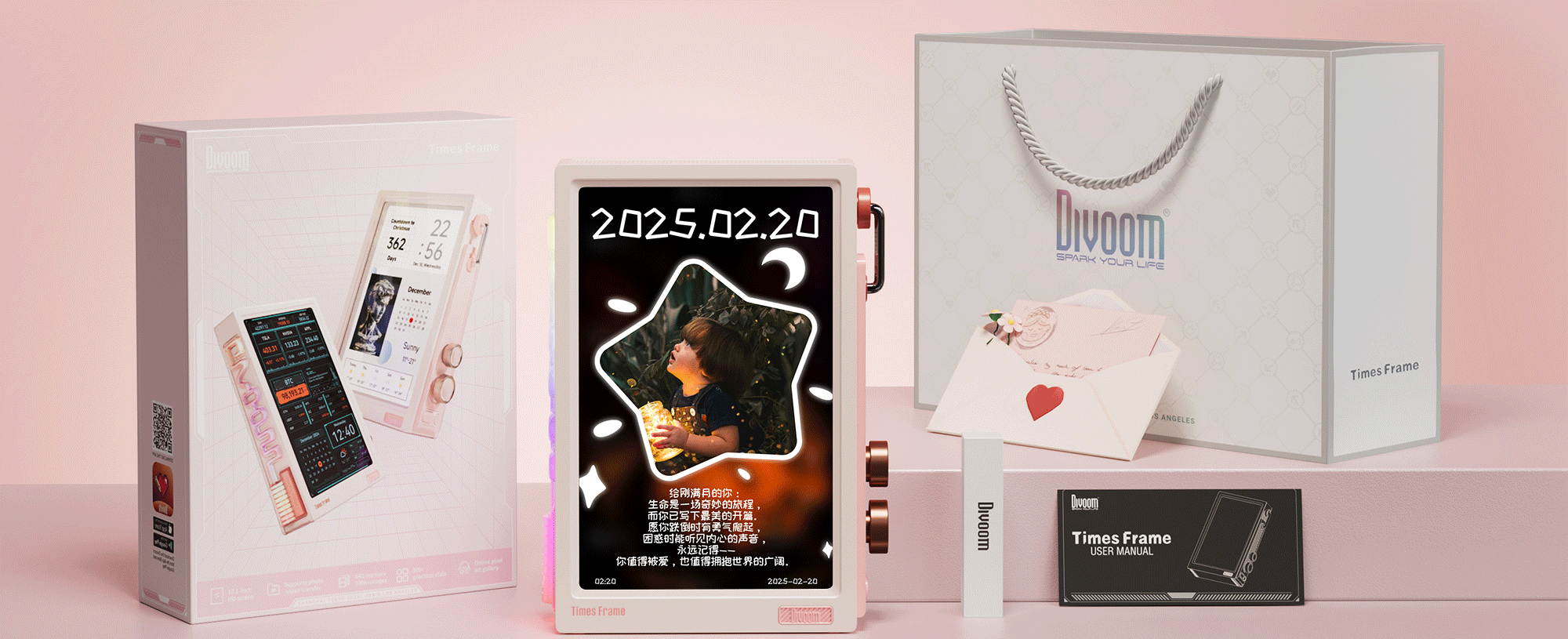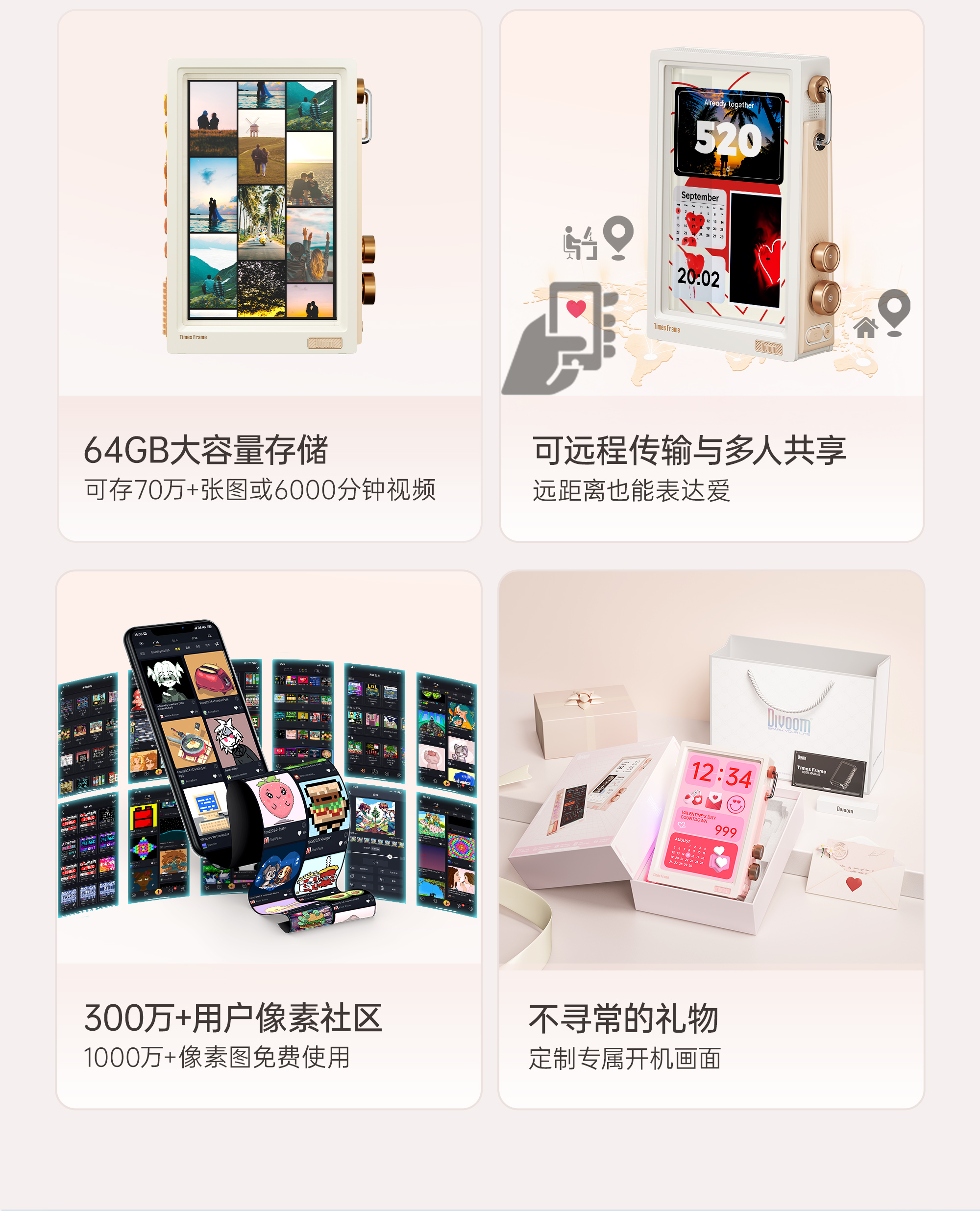 Divoom 透明电子悬浮相框 时光之界TimesFrame数码相册显示定制情侣照片结婚日纪念礼物