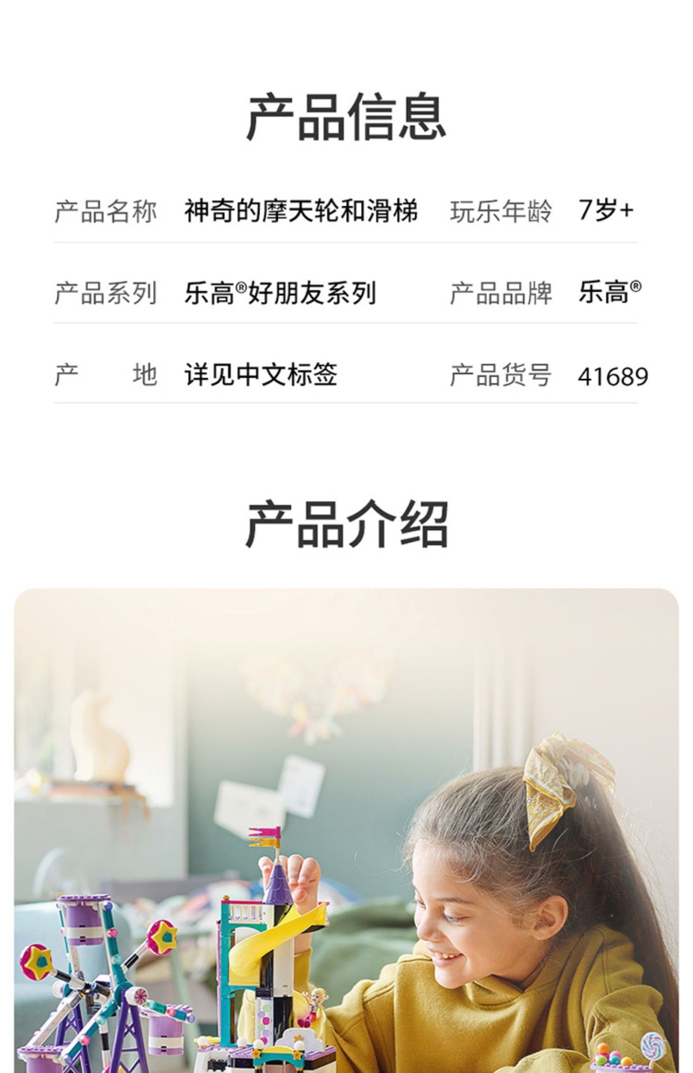 LEGO乐高41689好朋友系列神奇的摩天轮和滑梯