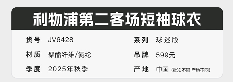 小李子阿迪达斯25/26赛季利物浦球迷版第二客场短袖球衣JV6428