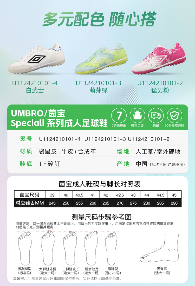 小李子茵宝Speciali中端TF碎钉袋鼠皮足球鞋成人男U1124210101-2