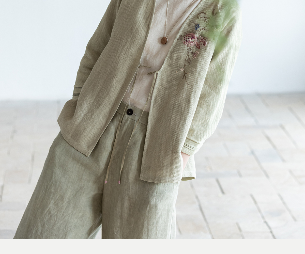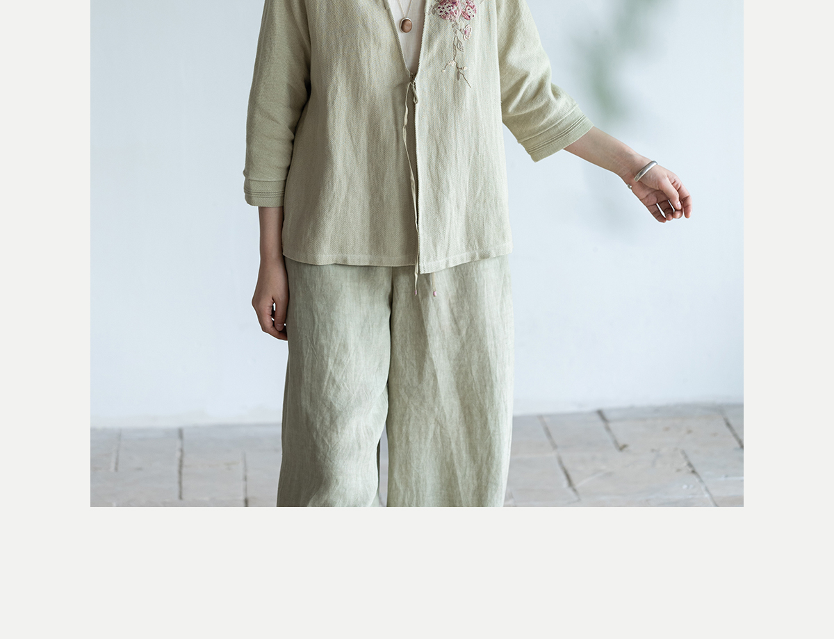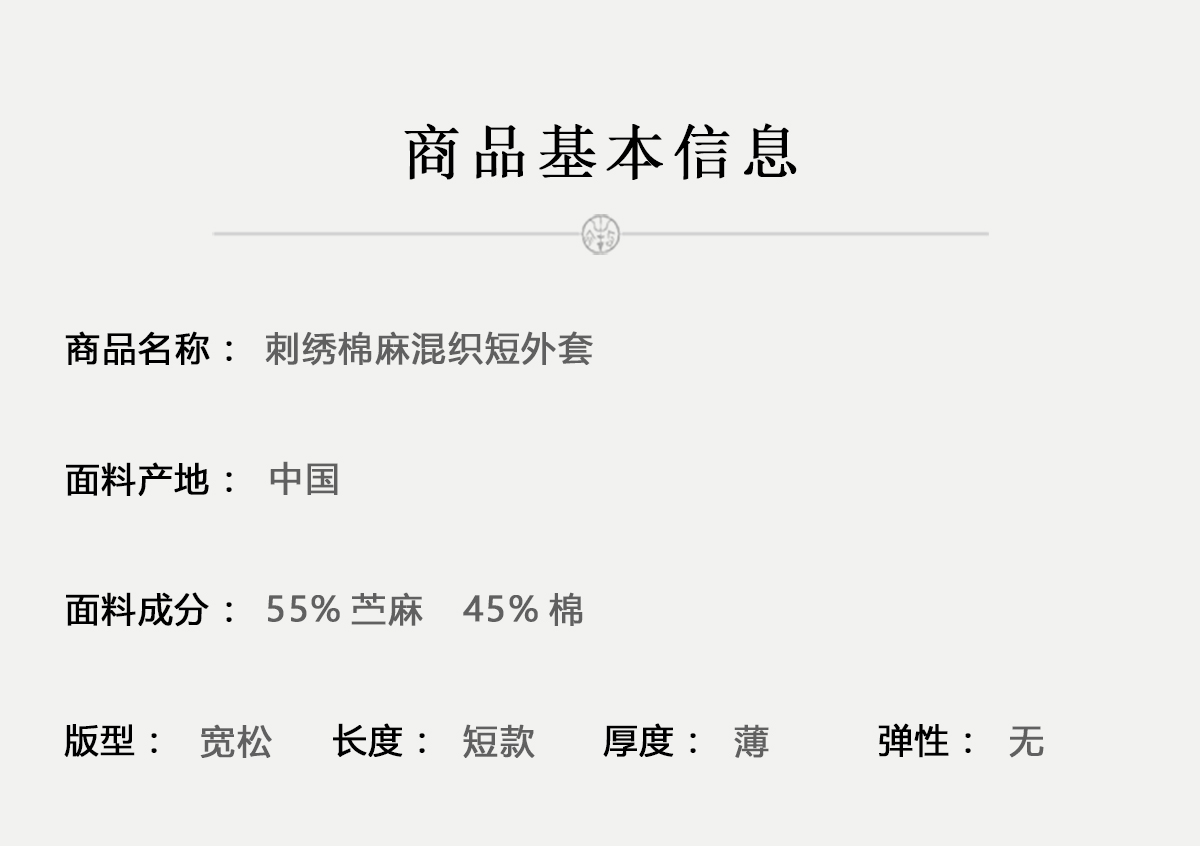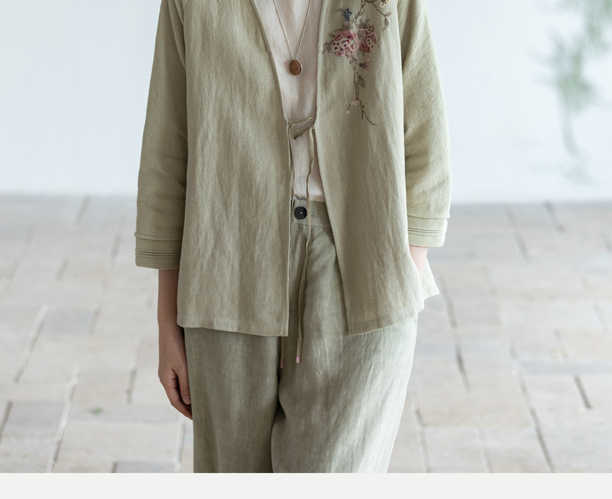牧衣游原创 手工刺绣棉麻混织短外套慵懒感轻薄质朴系带开衫 愿如