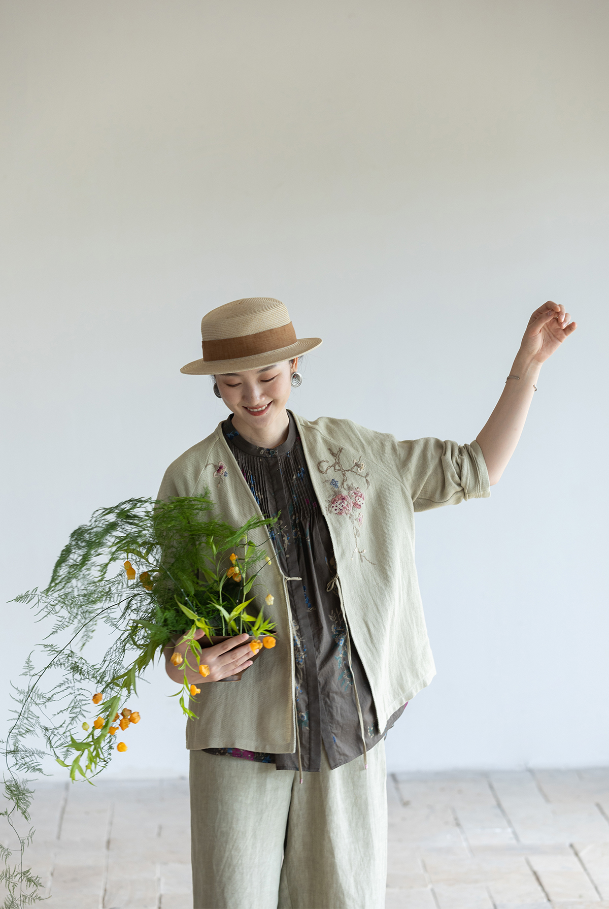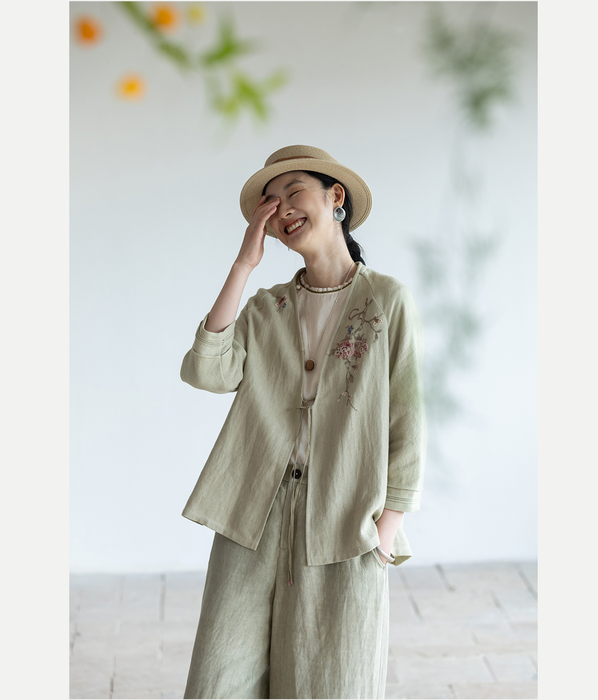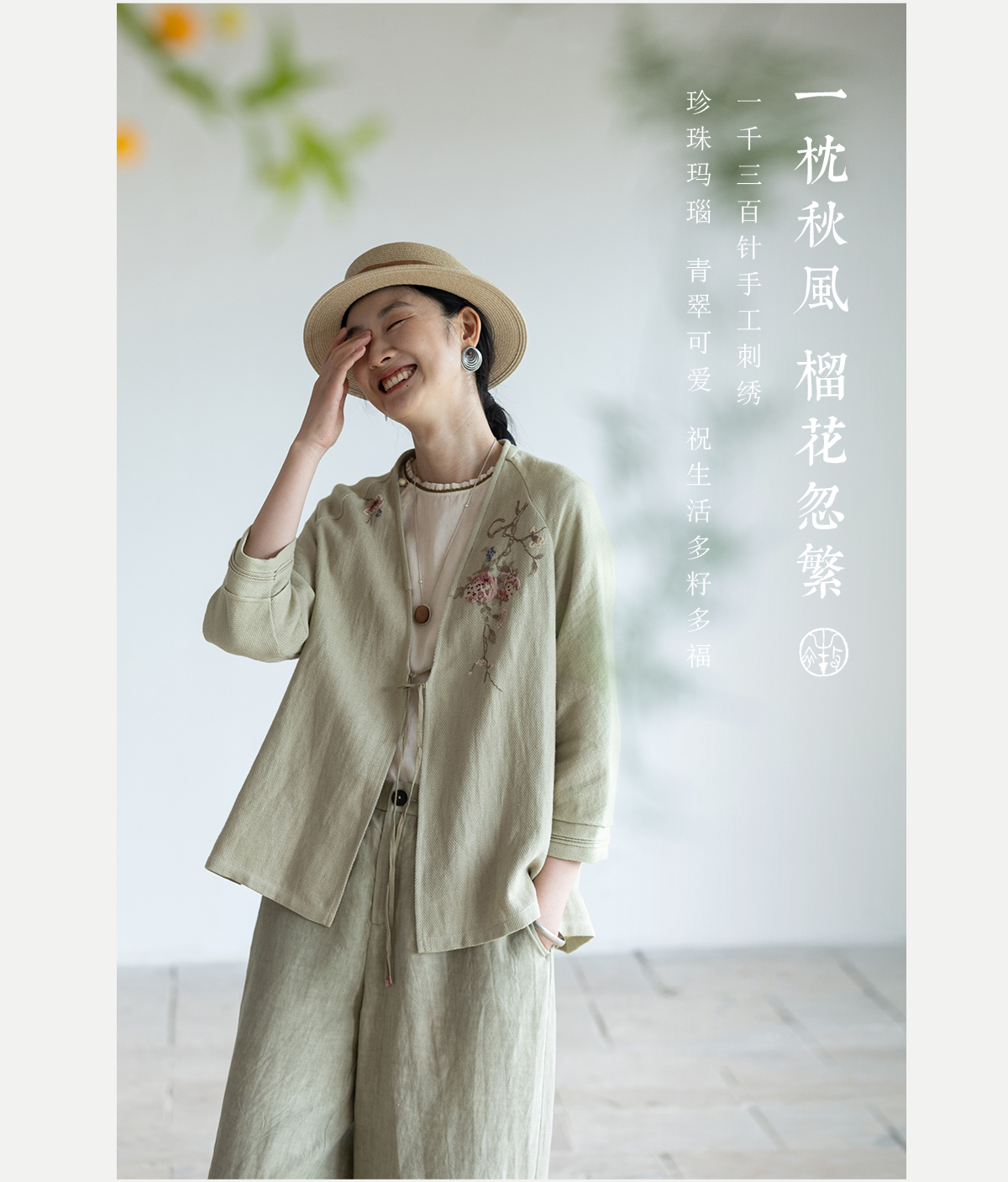 牧衣游原创 手工刺绣棉麻混织短外套慵懒感轻薄质朴系带开衫 愿如