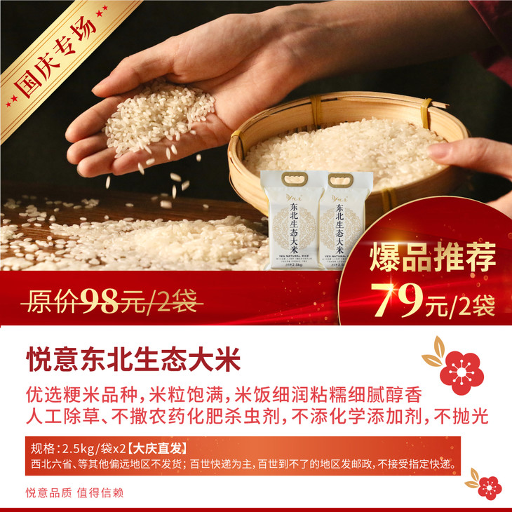 【悦意】东北生态大米2.5kg*2袋 不喷洒农药化肥除草剂 大庆直发包邮