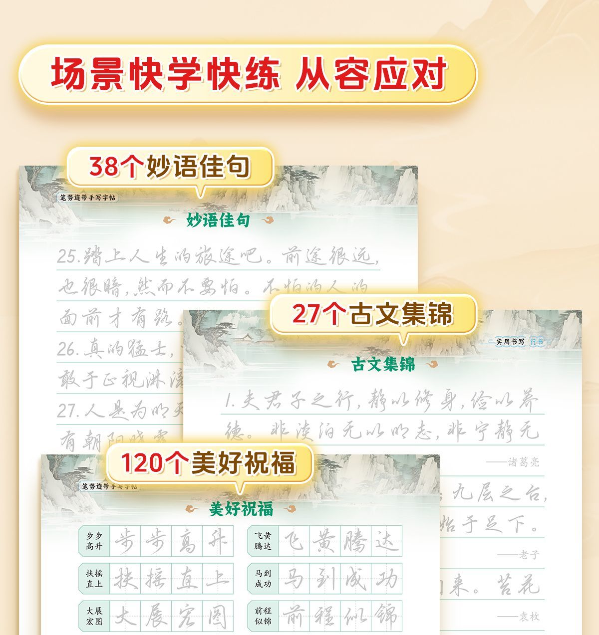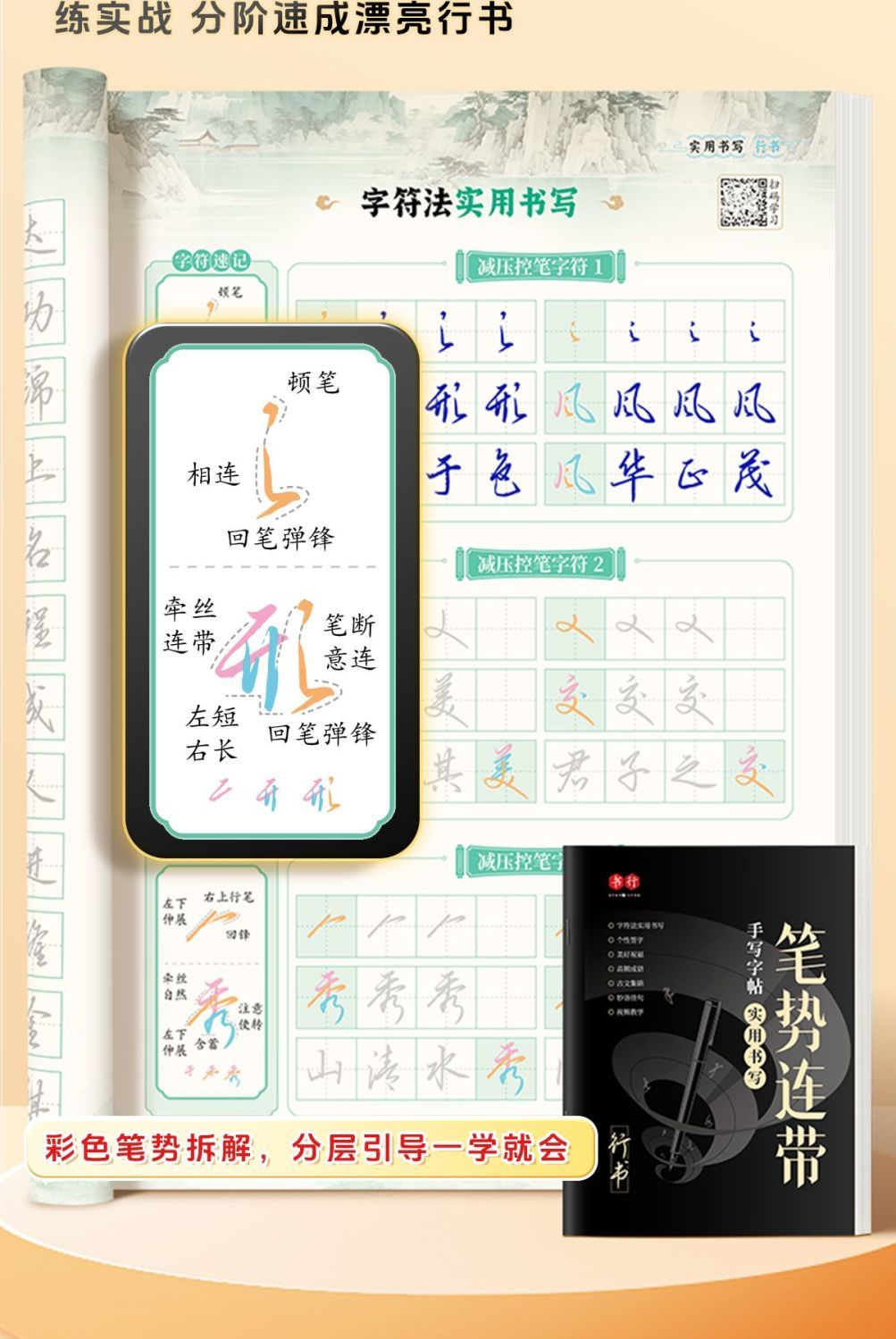 行书速练【笔势连带】手写行书练字帖初学者运笔轨迹控笔笔画偏旁间架结构实用书写硬笔书写速练(适合初学者、成人、初高中生)