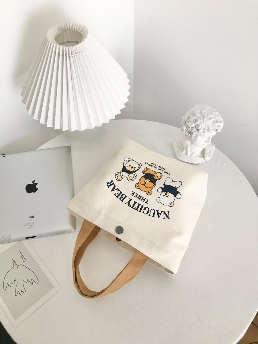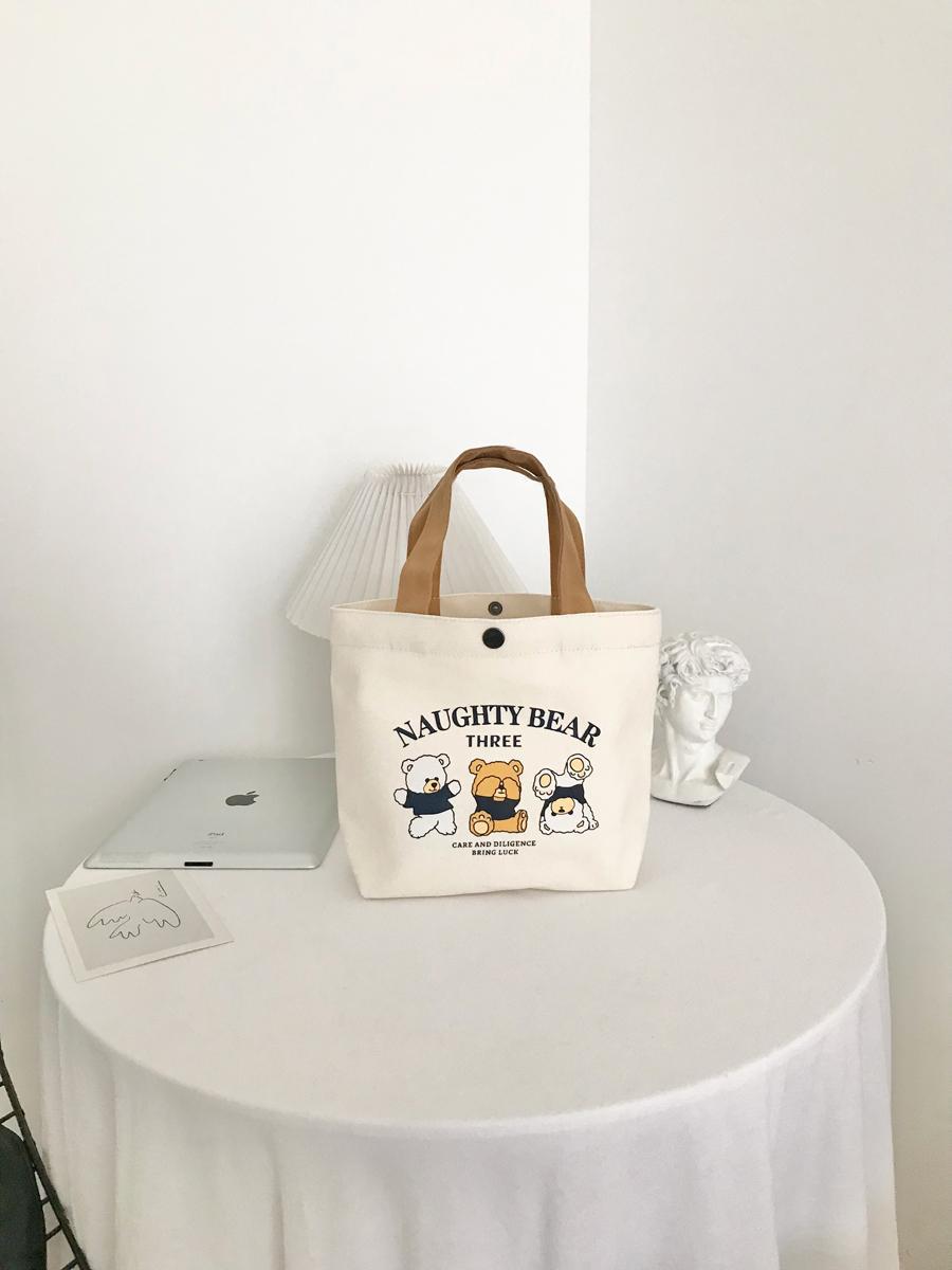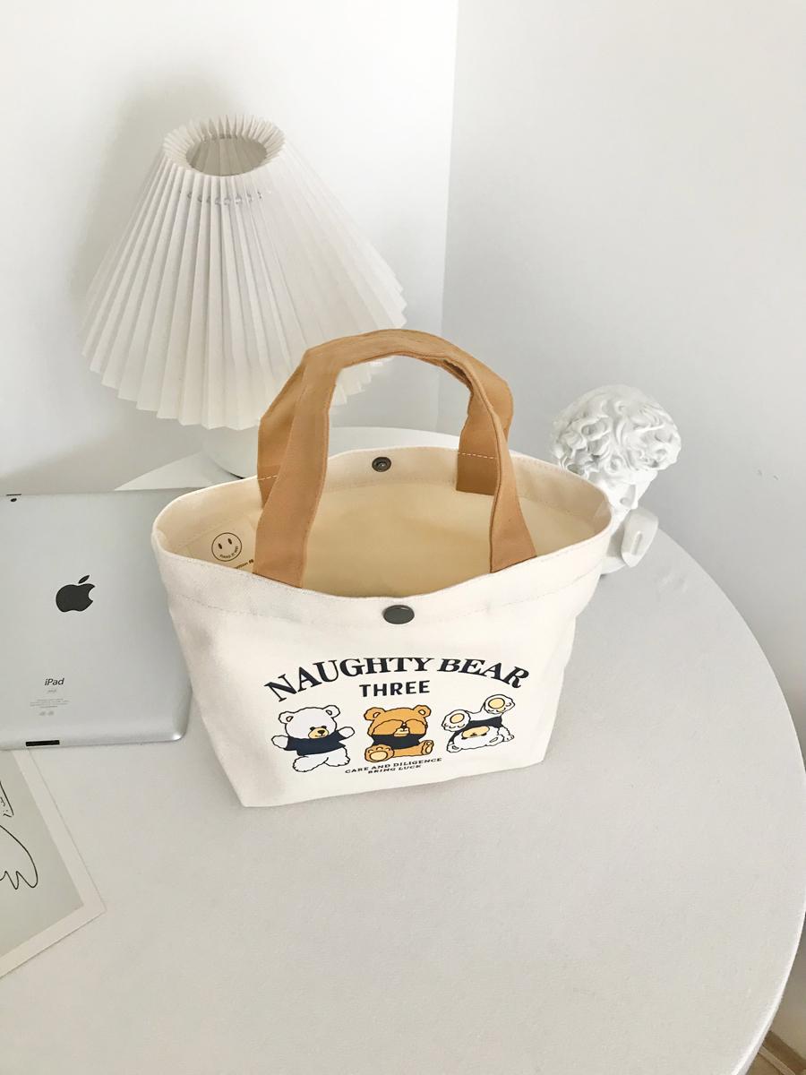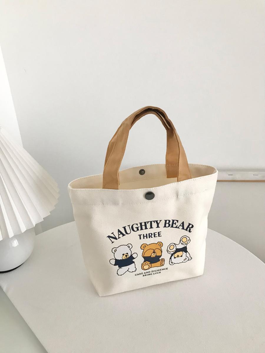 新款小熊帆布包女士上班手拎便当饭盒学生手提包收纳礼品袋帆布袋