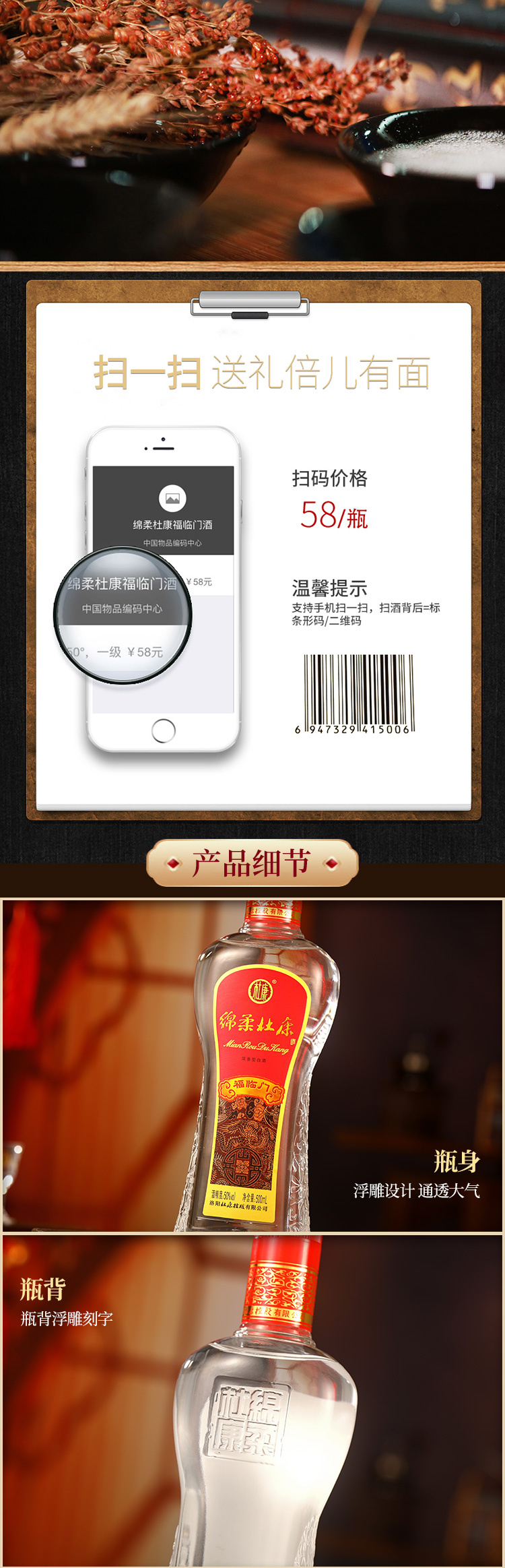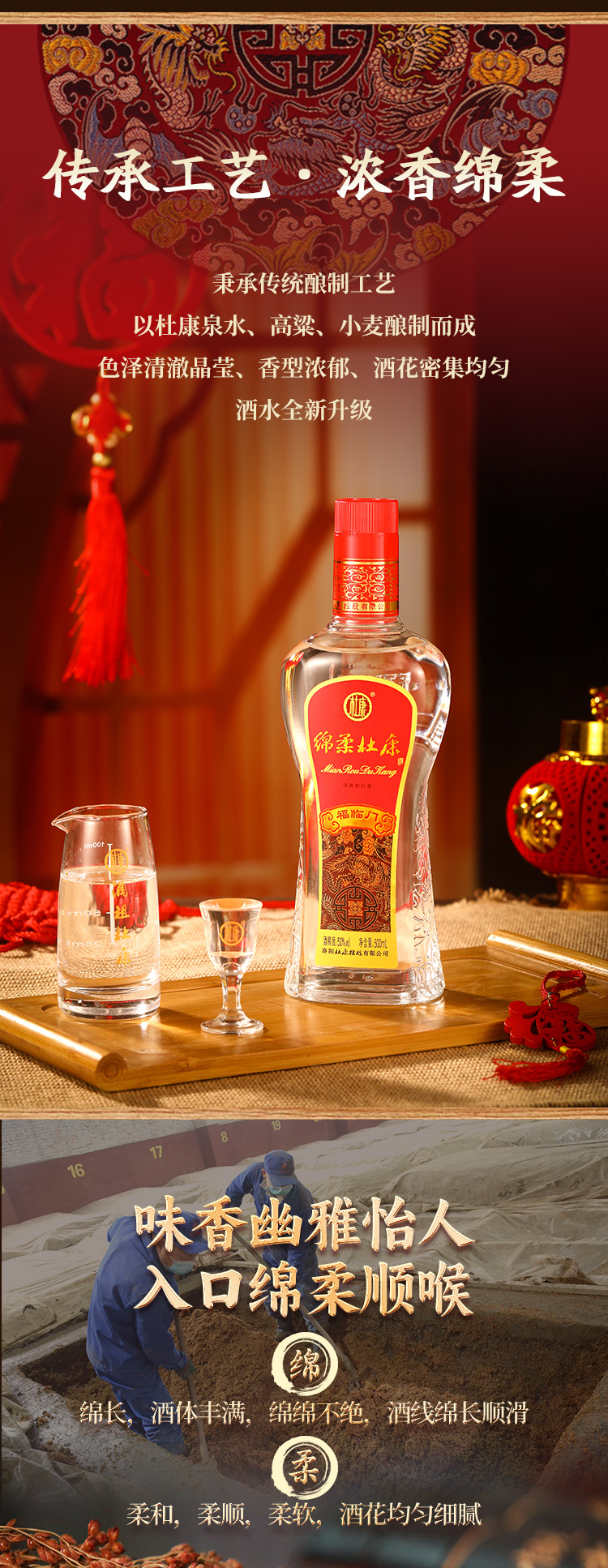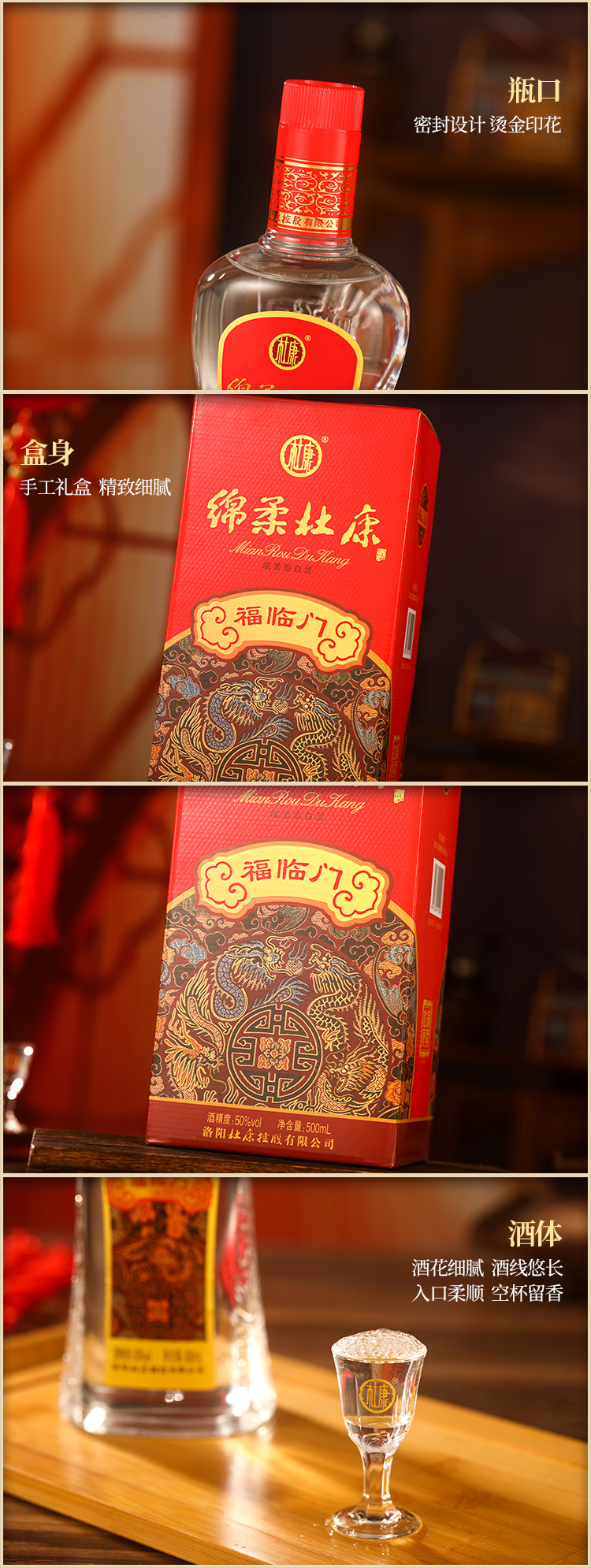 【2箱12瓶】绵柔杜康福临门酒50°500ml*6瓶整箱浓香型白酒 日常口粮酒纯粮酒