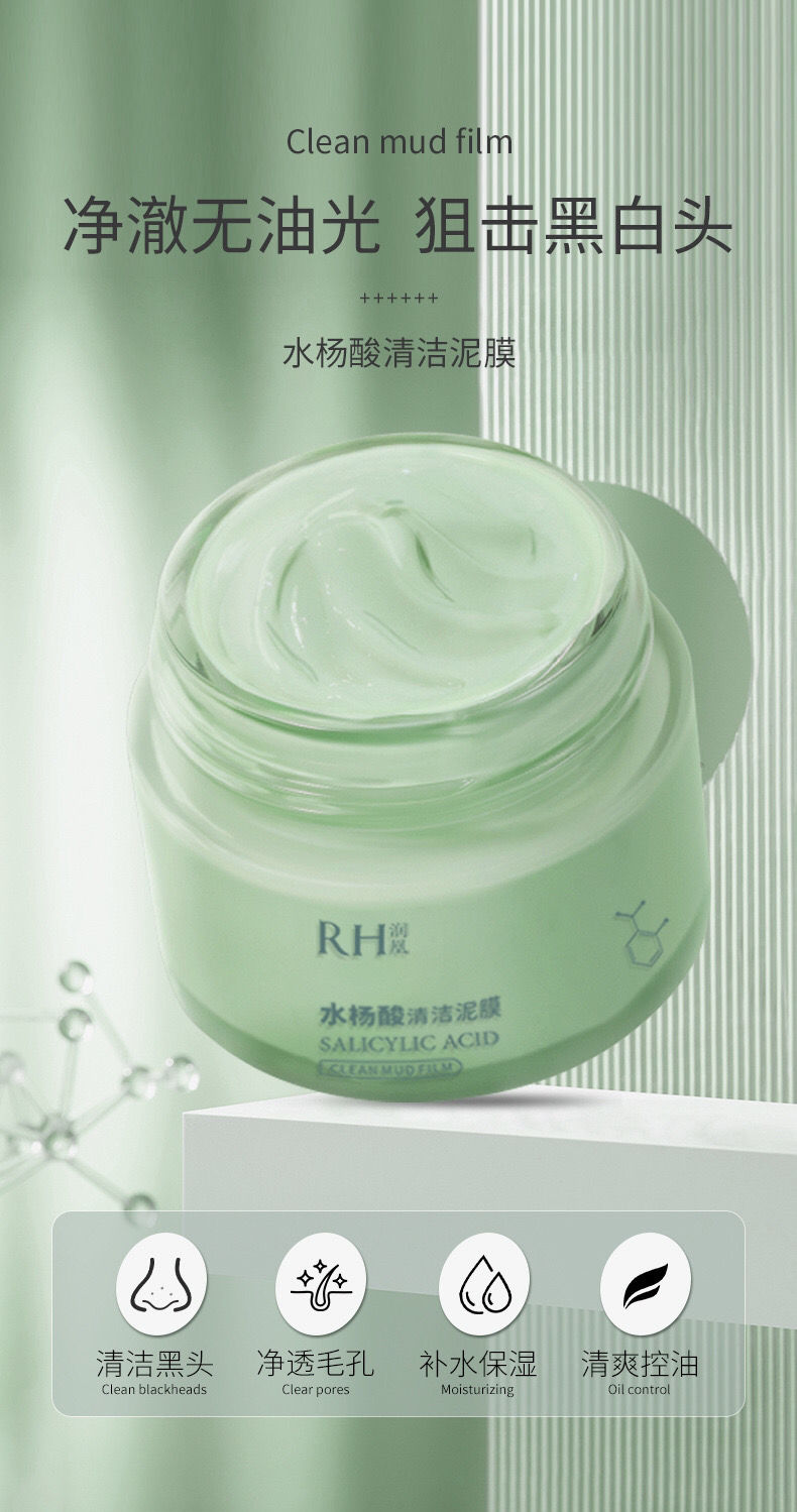水杨酸清透泥膜控油祛痘改善粉刺深层清洁面膜收缩毛孔补水保湿