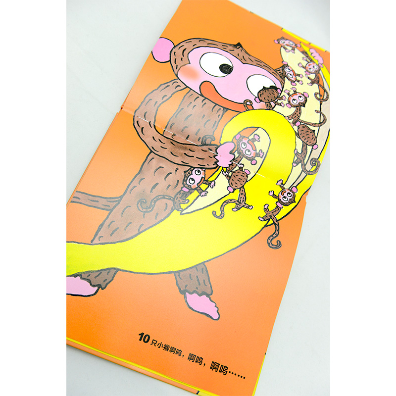 3只、4只……10只小猴想要摘香蕉,就差一点儿了!哎呀呀呀呀呀……好疼啊!
