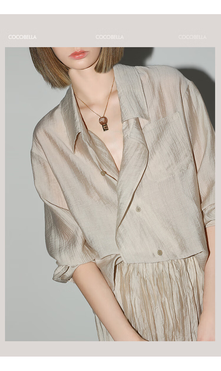 【限时秒杀】COCOBELLA丝光质感莱赛尔轻薄衬衫设计感飘带气质衬衣SR3051