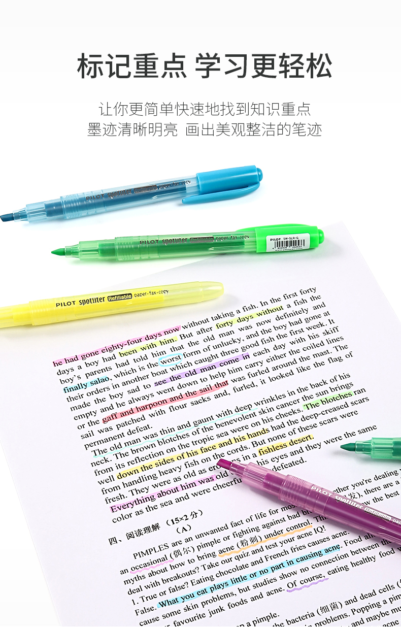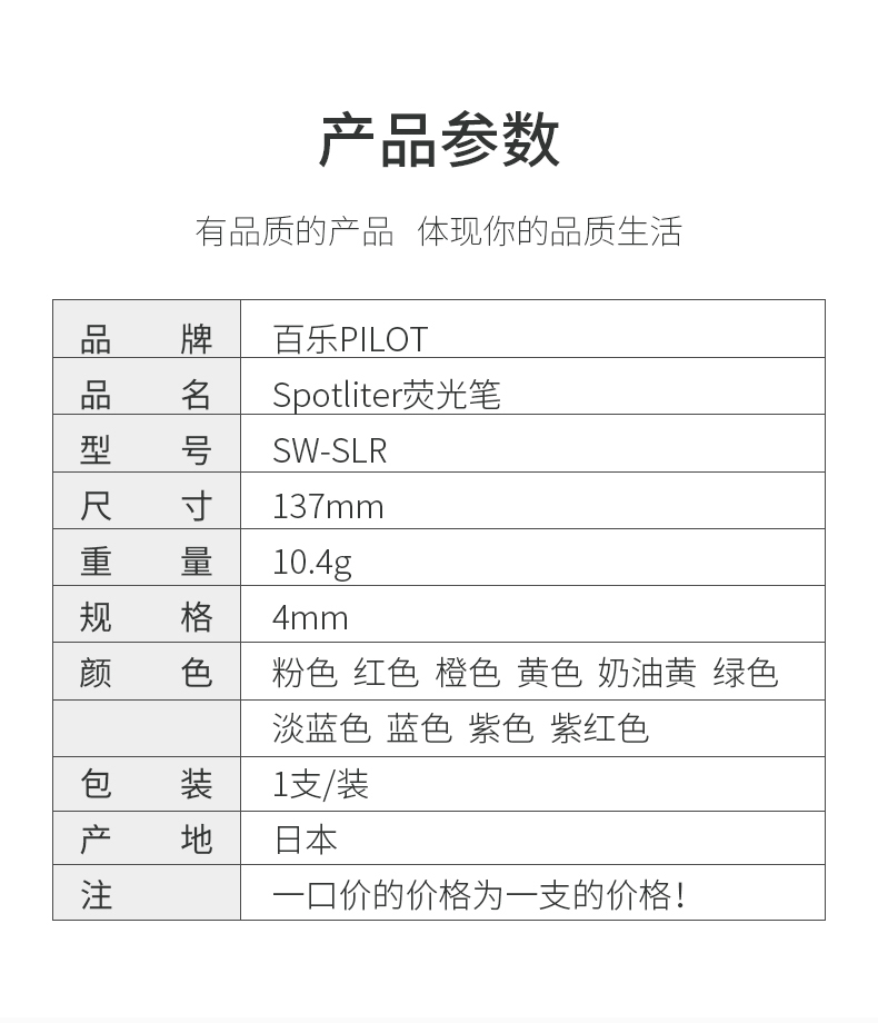 PILOT/百乐SW-SLR 多彩糖果色新款荧光笔记号笔