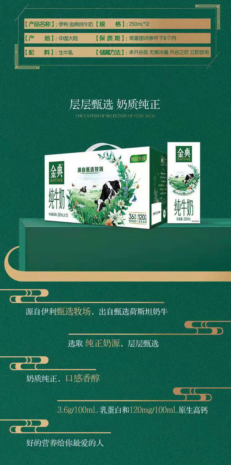 【自营】伊利金典纯牛奶250ml*12瓶整箱学生儿童营养早餐纯牛奶盒装乳制品纯牛奶