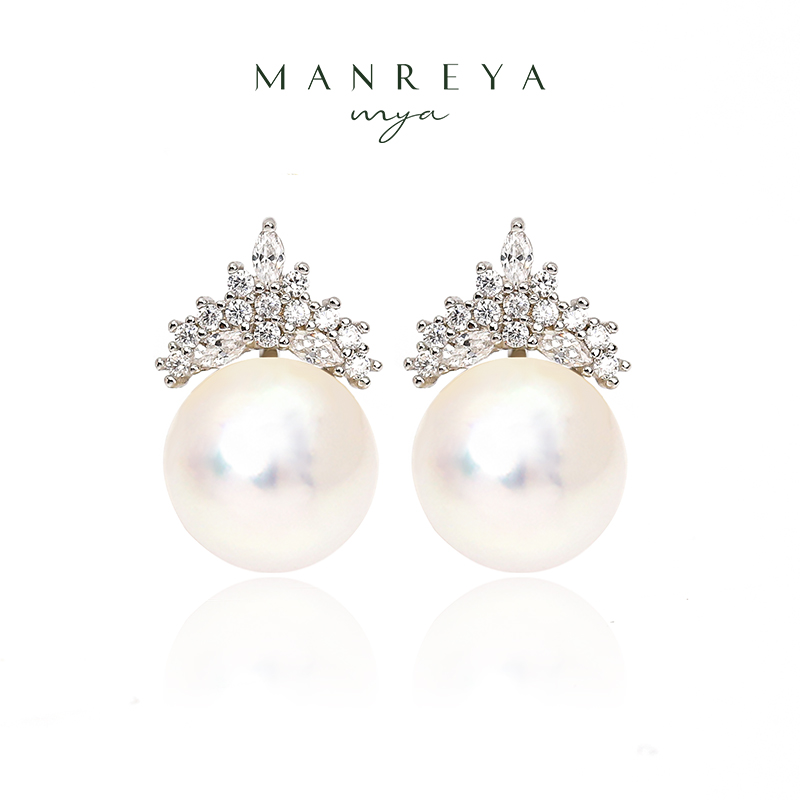 Manreya玛芮雅「冰雪女王」锆石S925银镀金淡水AK珍珠皇冠耳钉(不含项链)