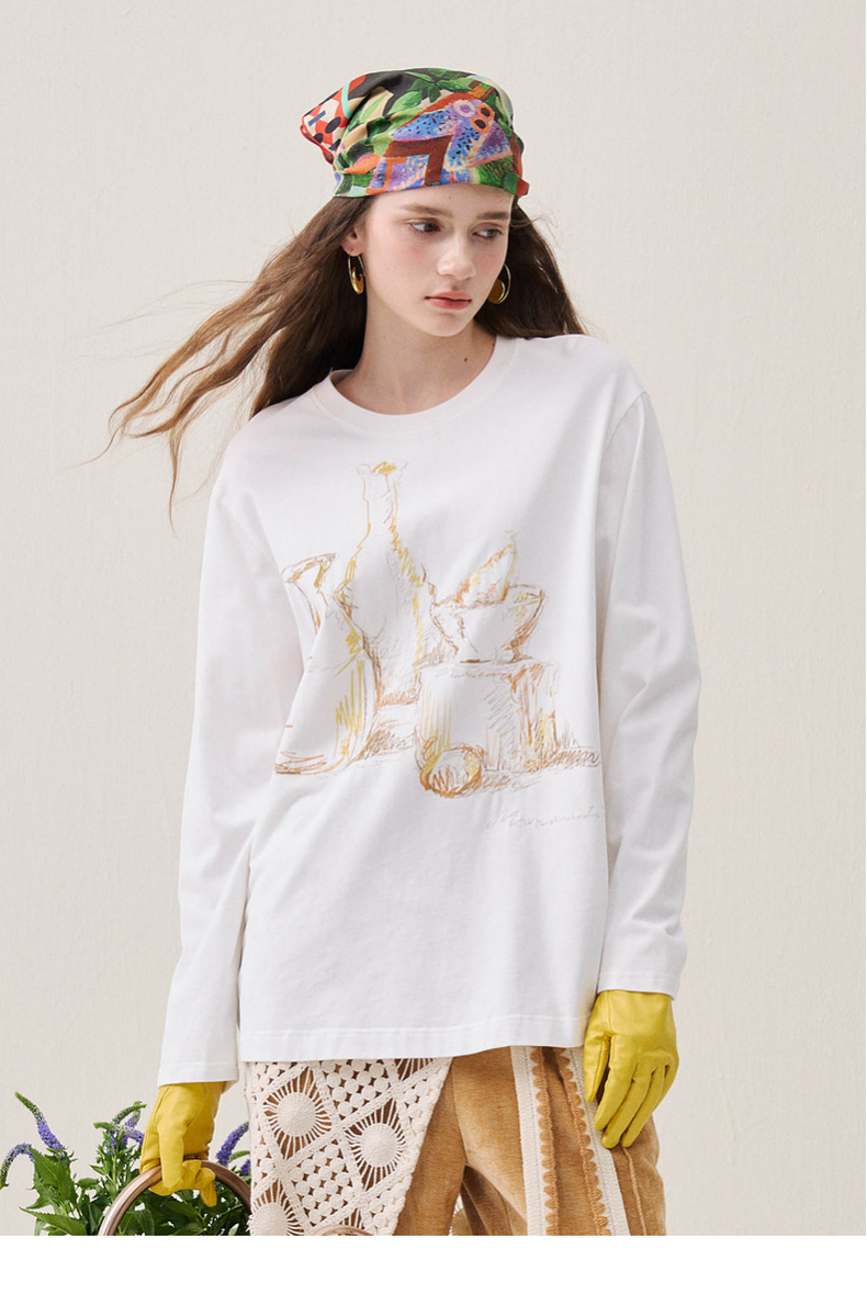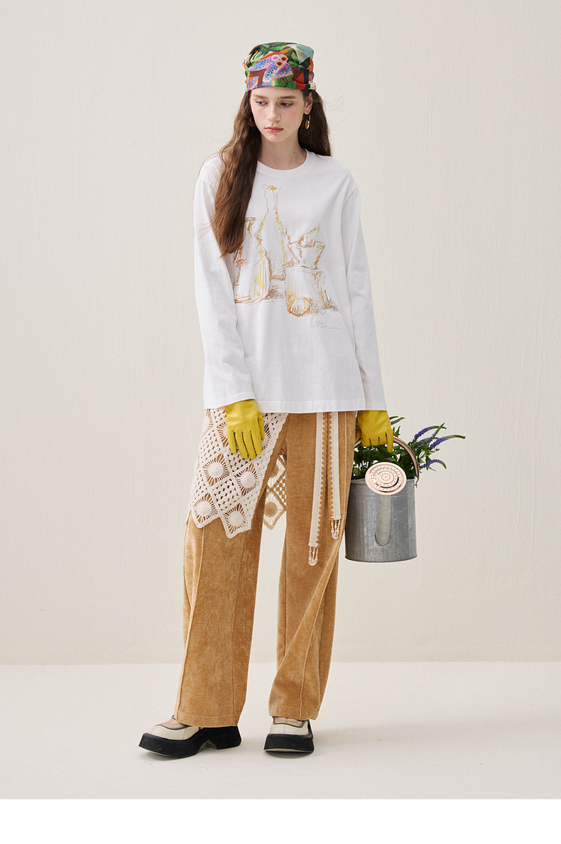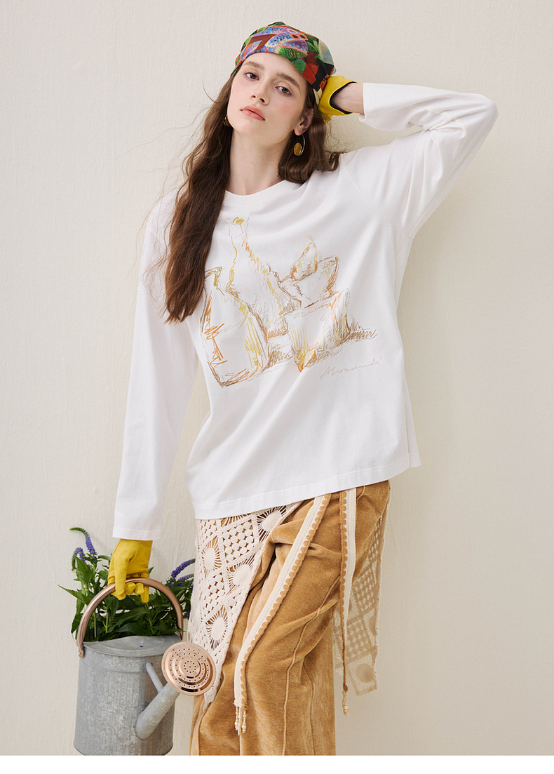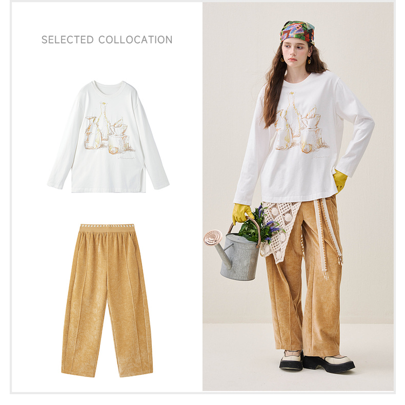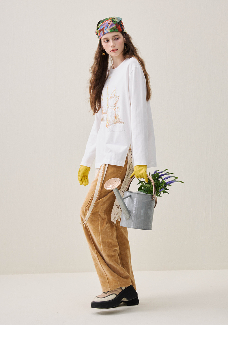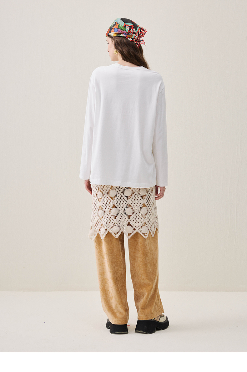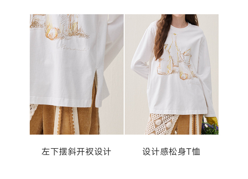 谜底中长款T恤长袖2025年冬季新品磨毛银线绣花斜开衩女254MT1603