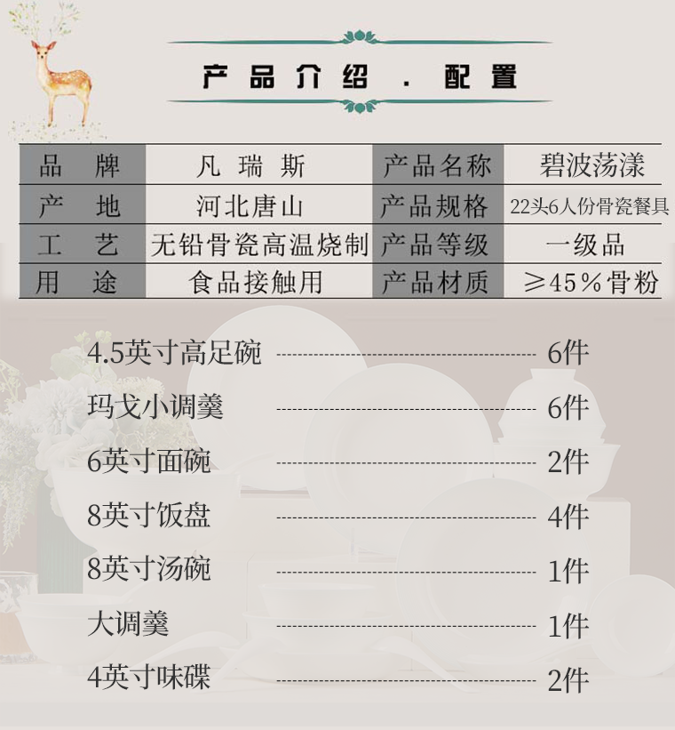 22头骨瓷餐具凡瑞斯碧波荡漾22头6人份骨瓷餐具