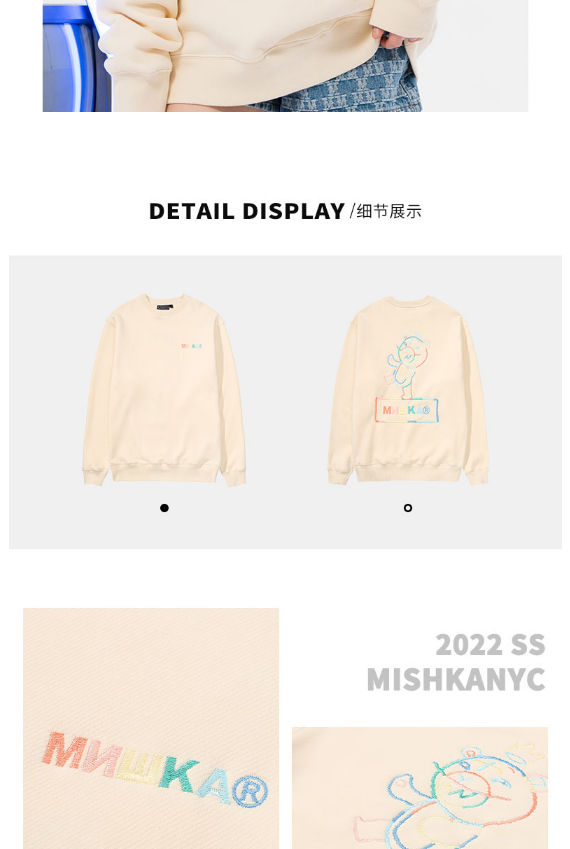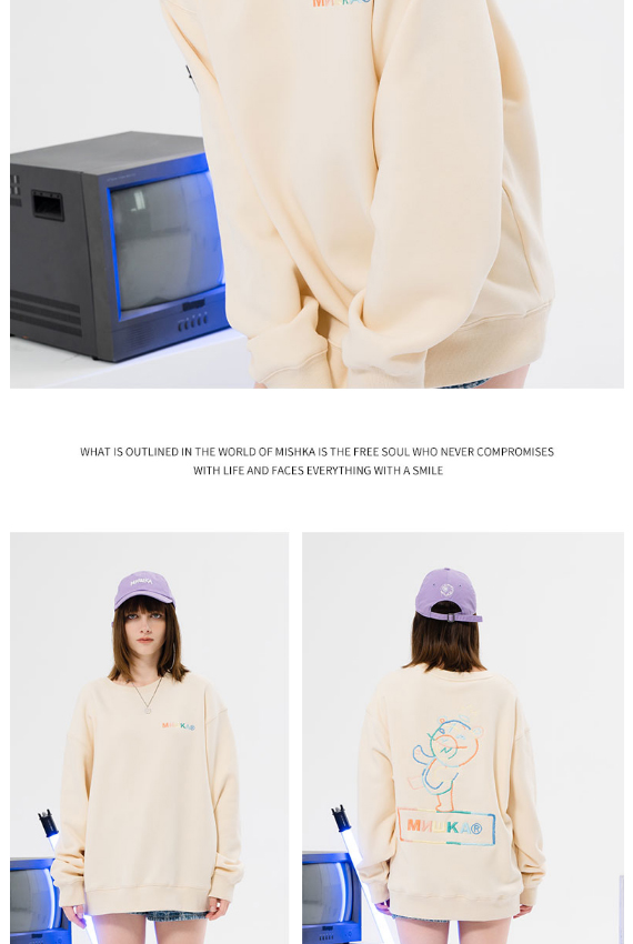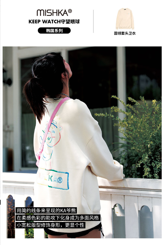 MISHKA2022春夏新品 KA爷涂鸦熊圆领套头卫衣男女同款M21100461M