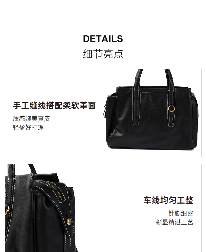 千百度冬季手工缝线搭配柔软革面女包A25595018