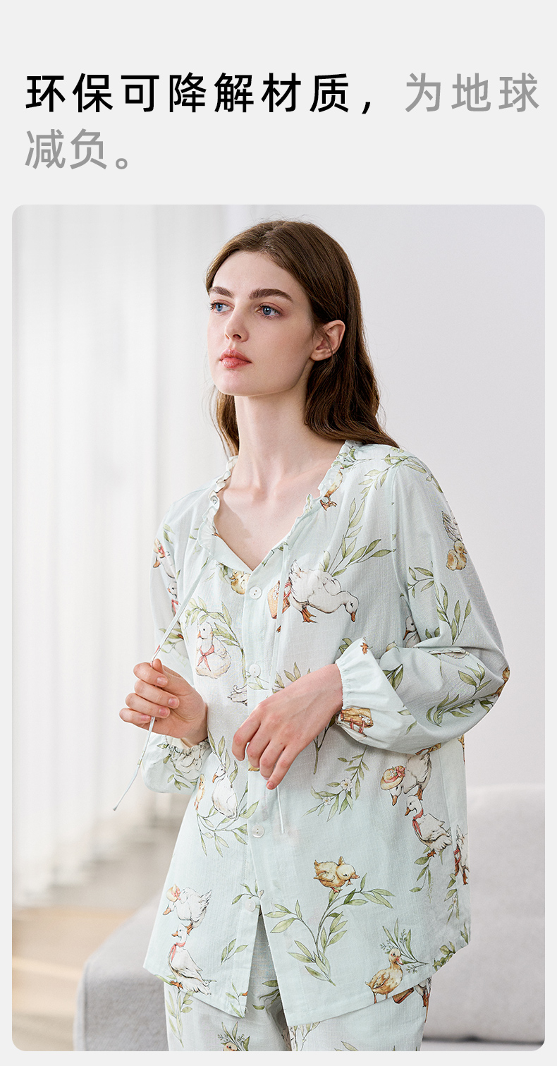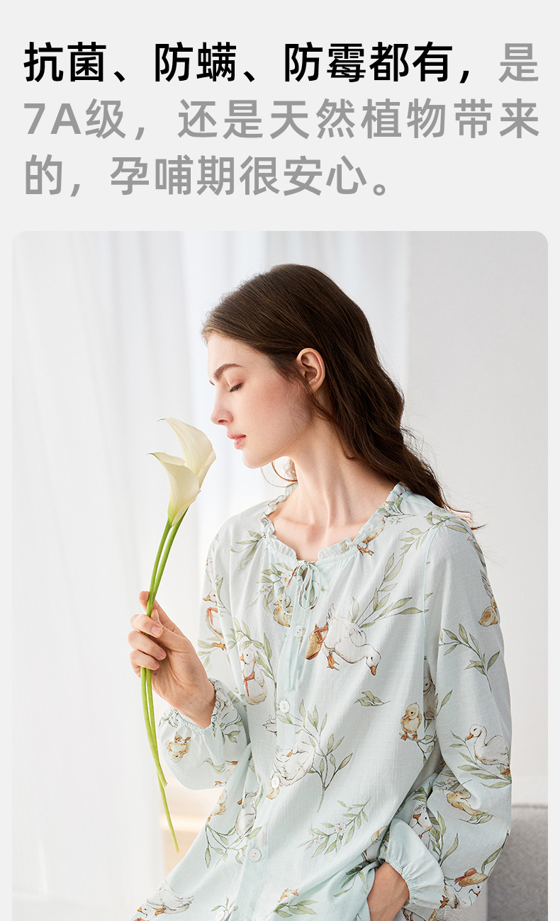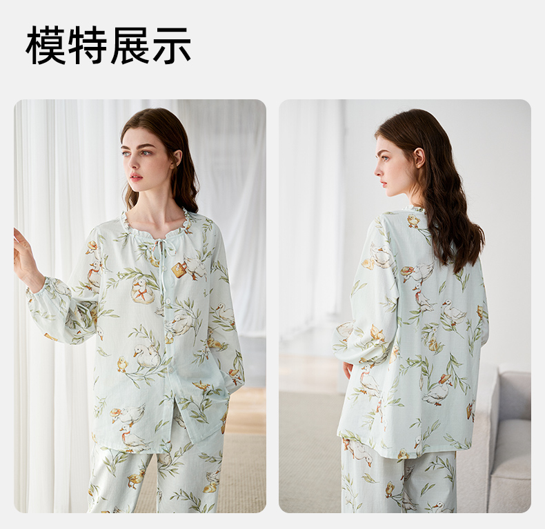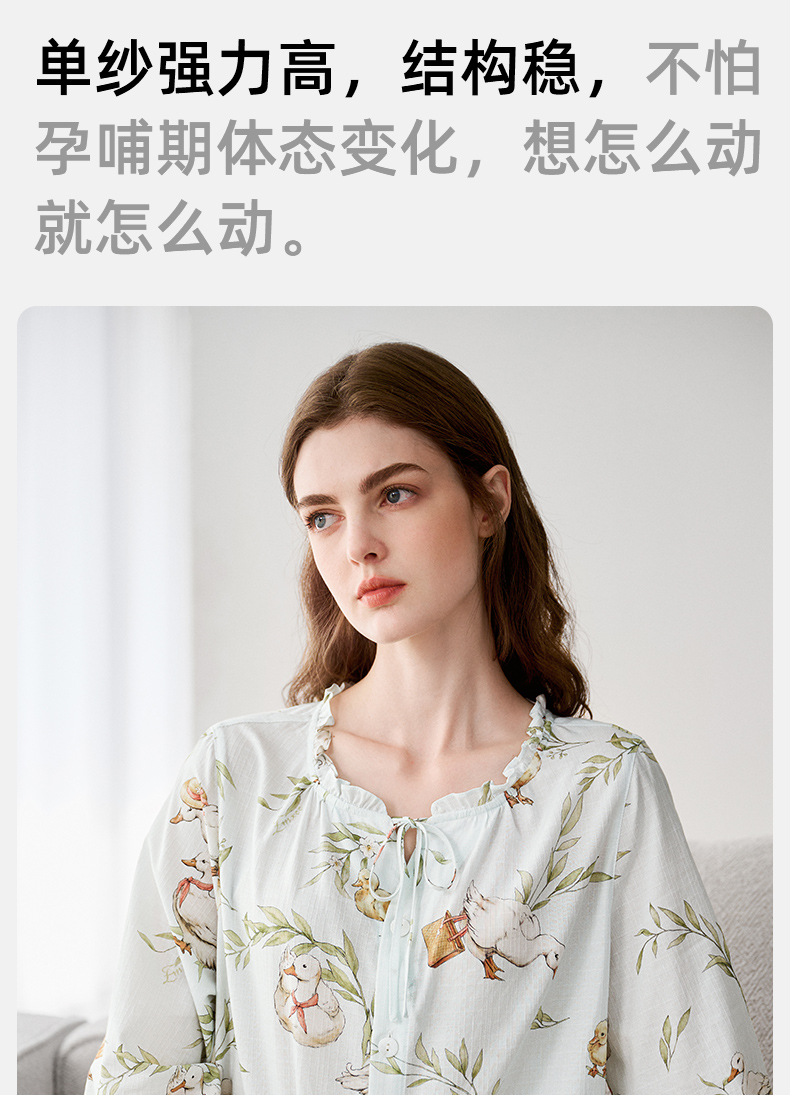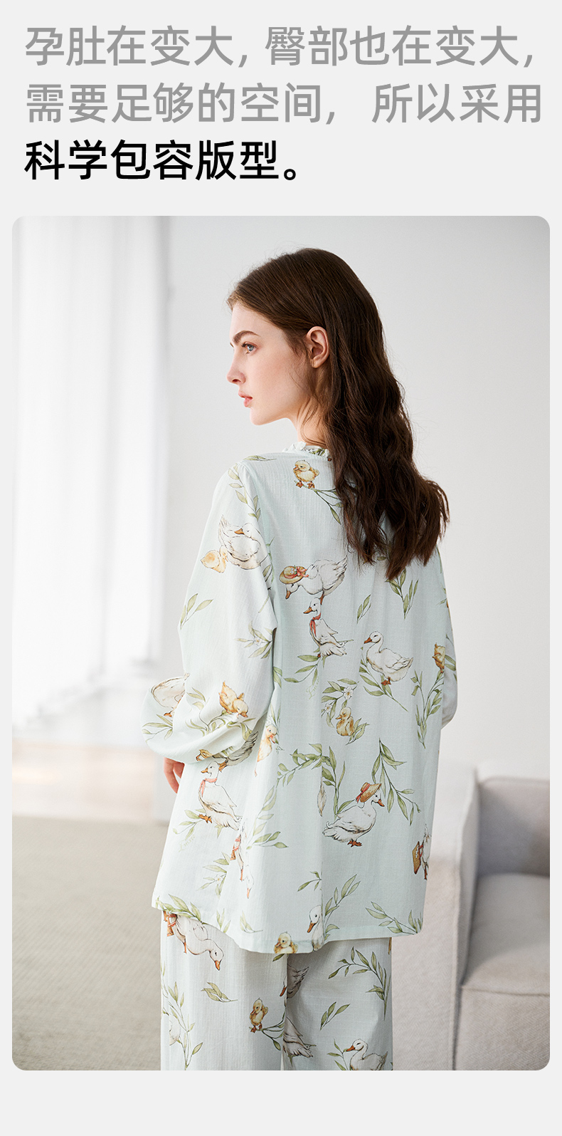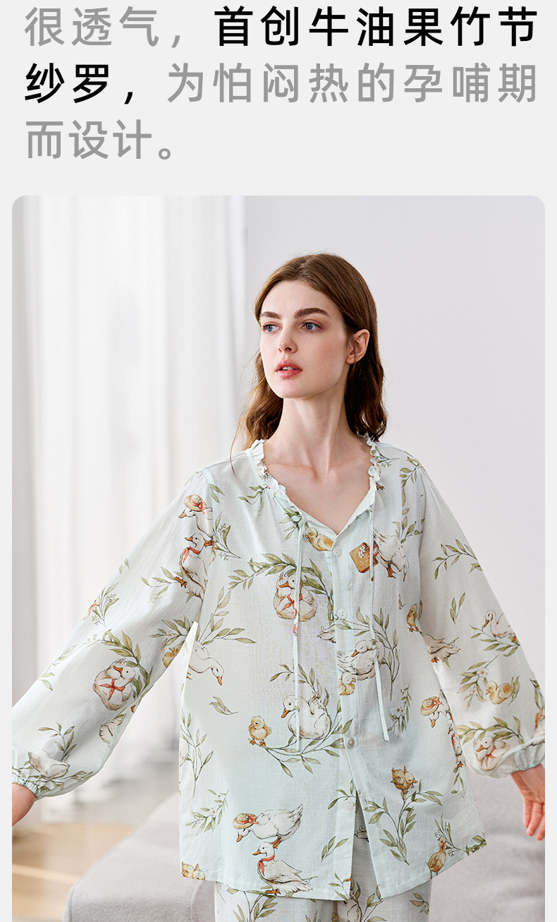 【月子服专场】嫚熙春夏孕妇睡衣出游鸭牛油果纱罗家居服月子服