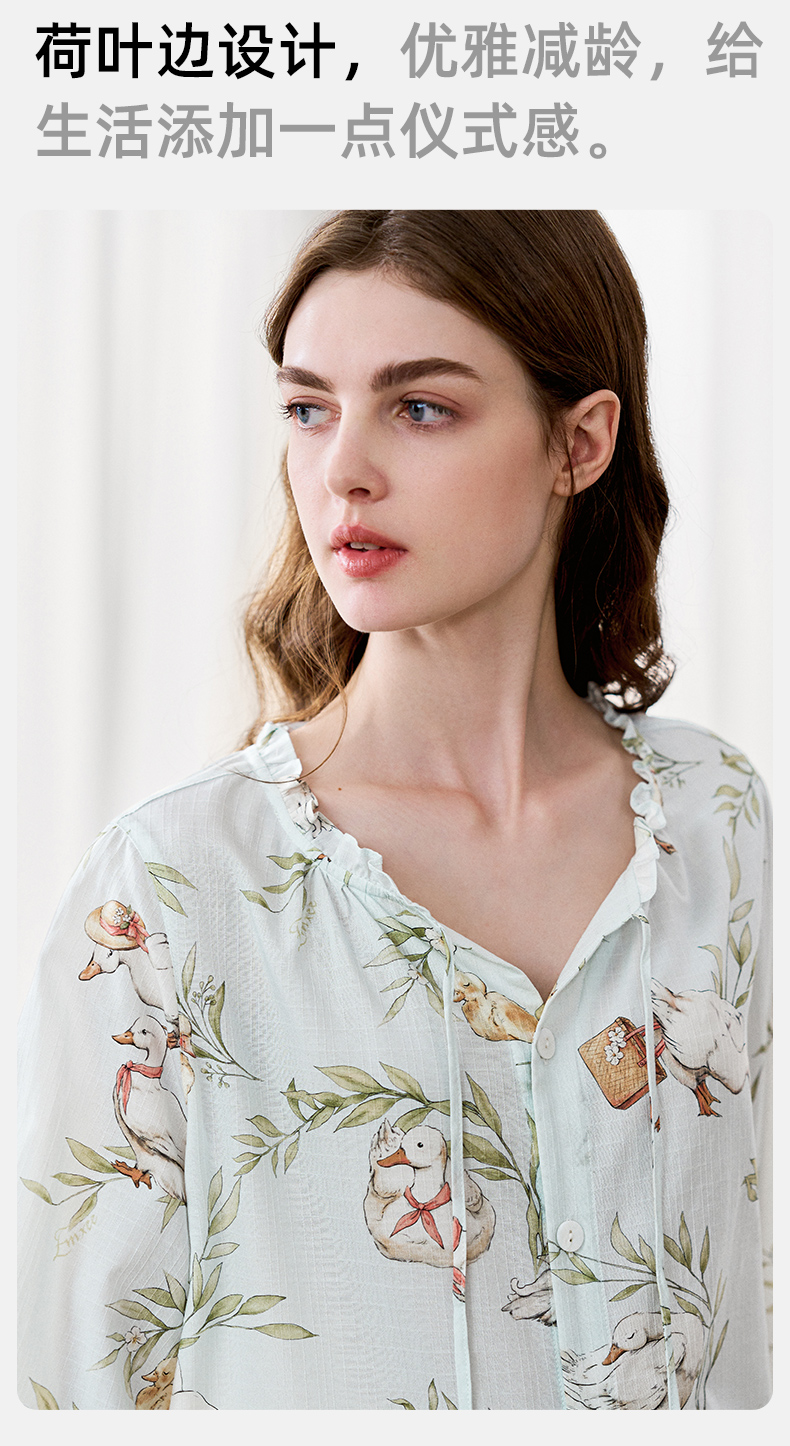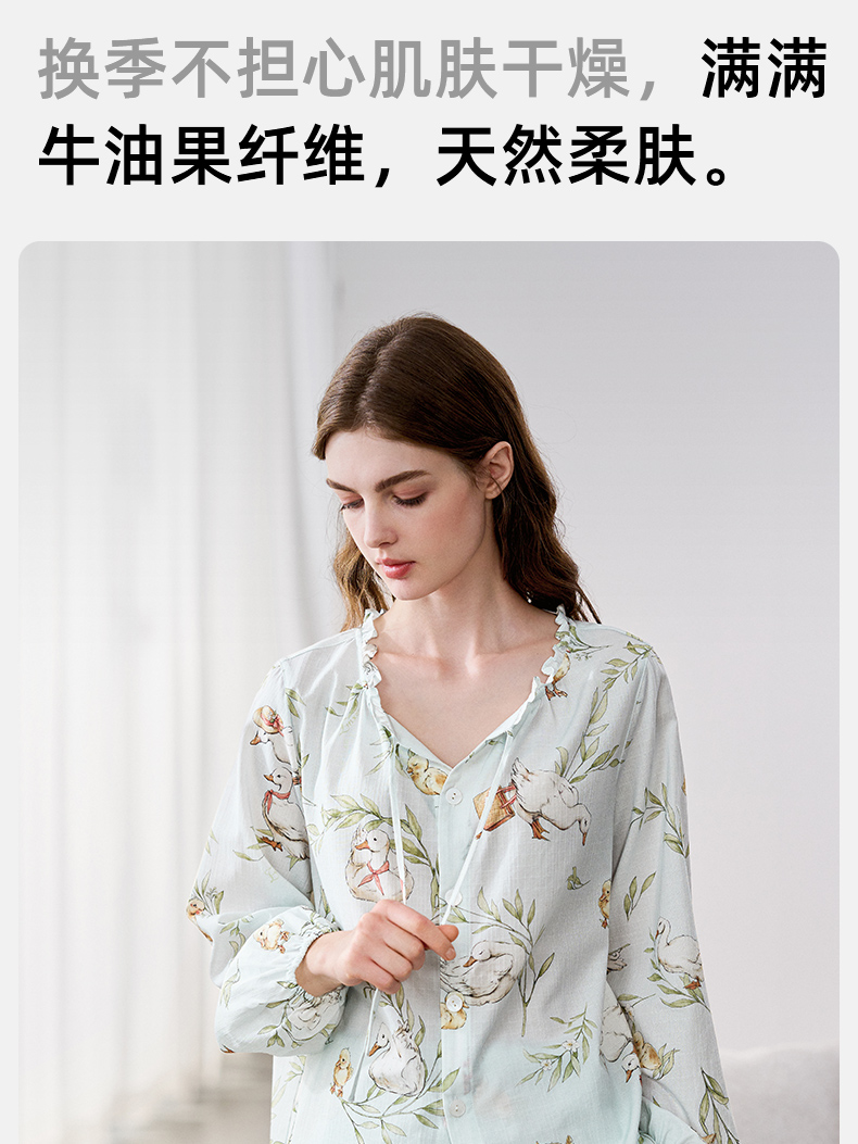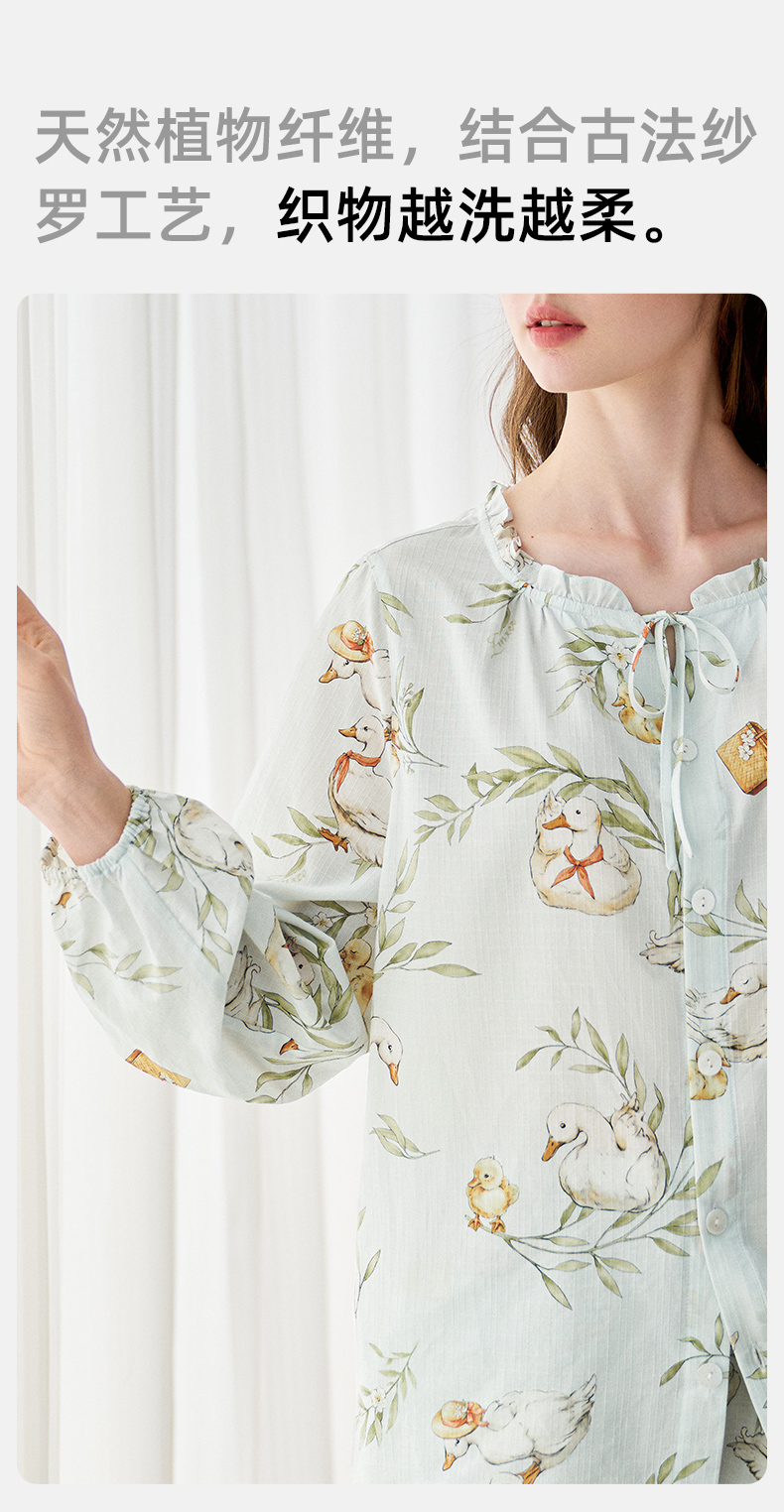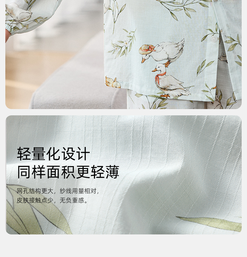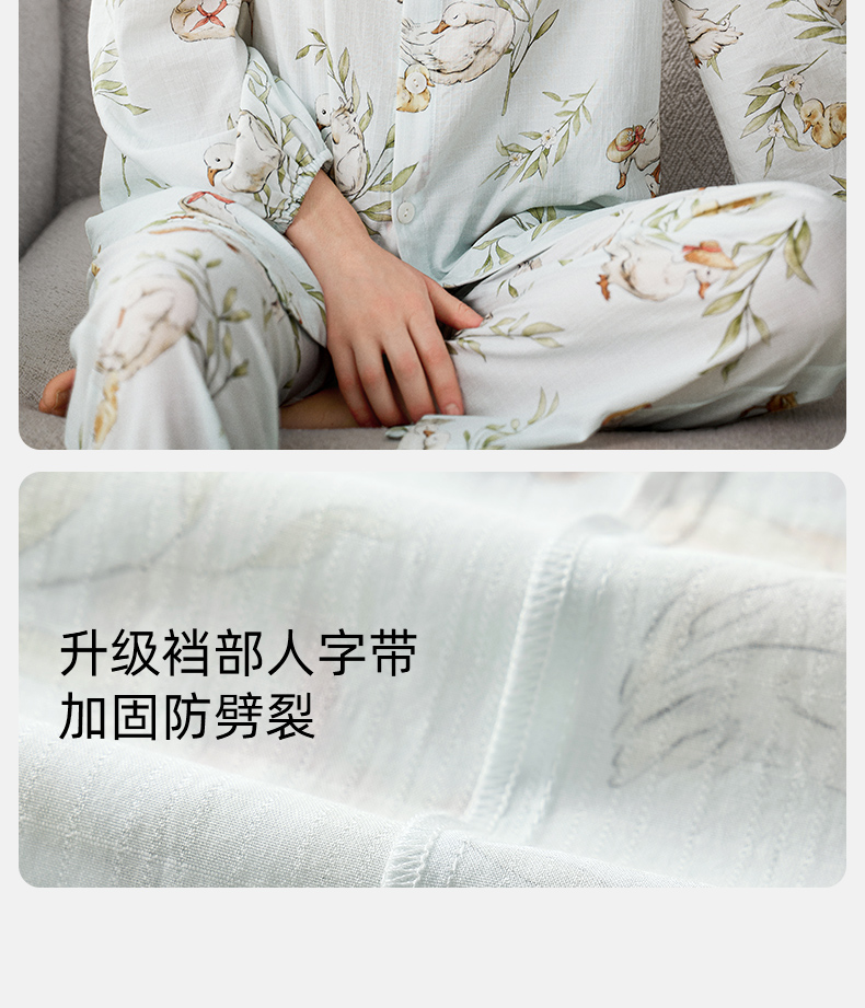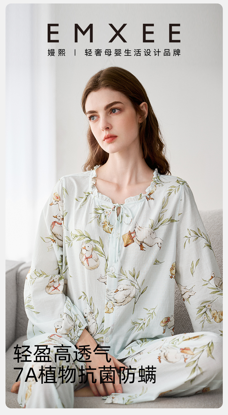 【月子服专场】嫚熙春夏孕妇睡衣出游鸭牛油果纱罗家居服月子服