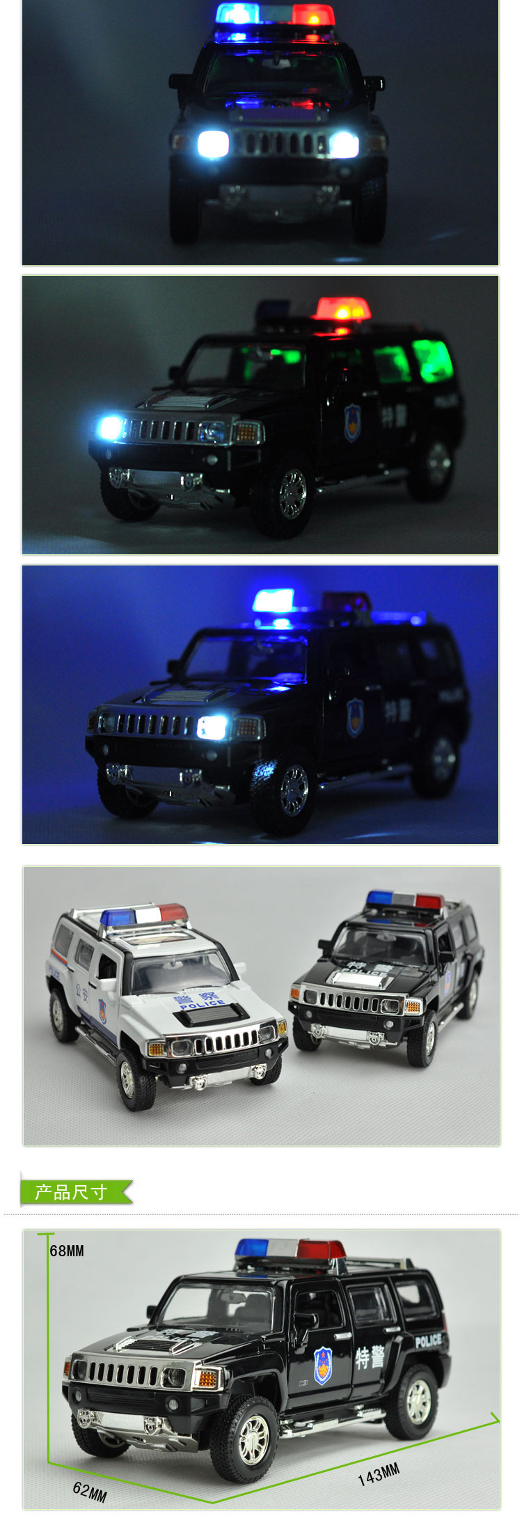 A 彩珀·成真1:32丰田埃尔法普拉多悍马警车特警车公安车合金车模 No.88769