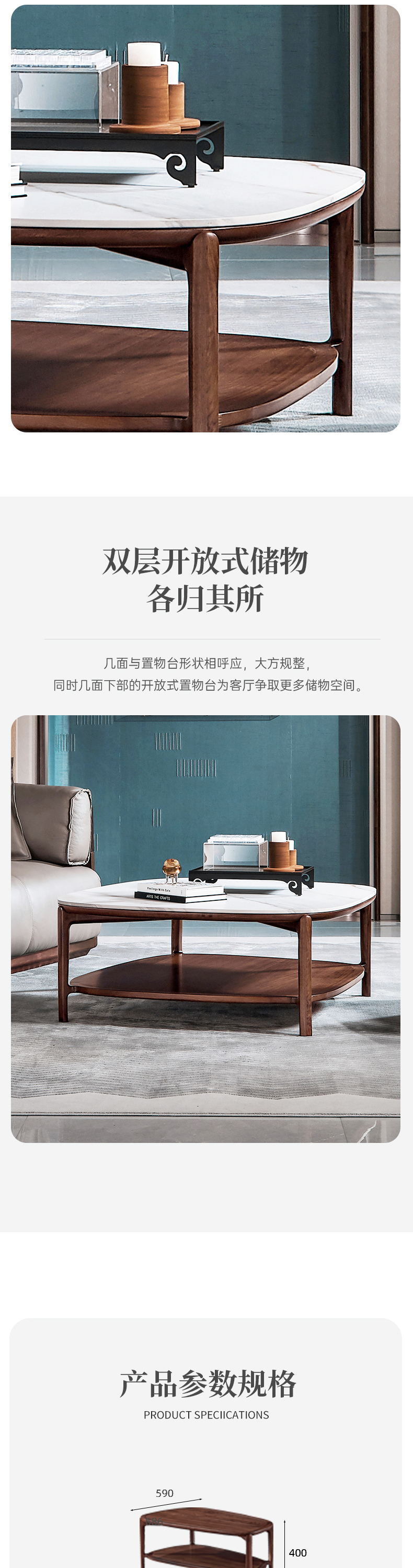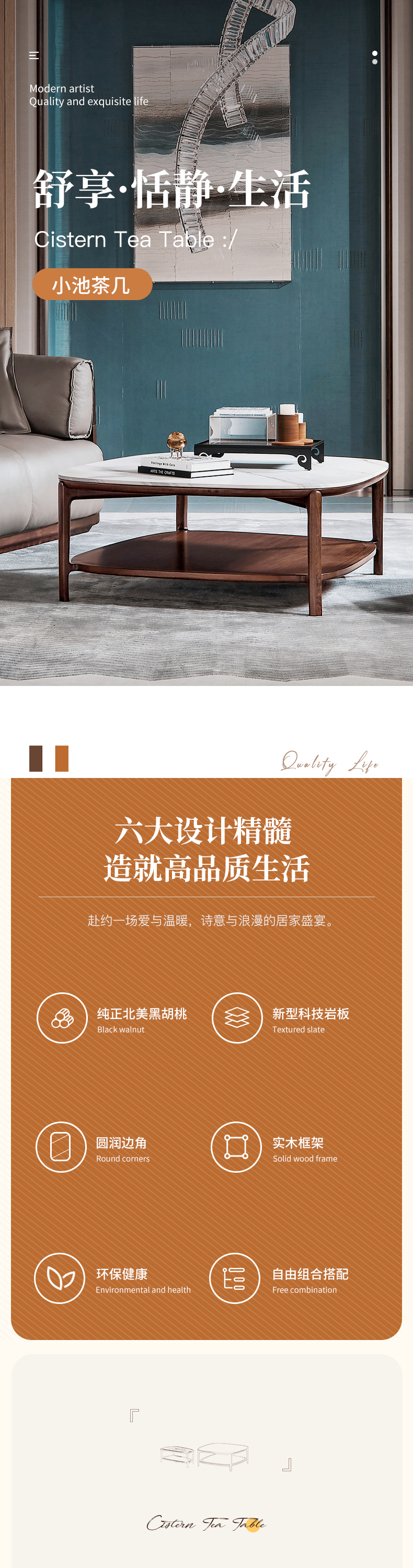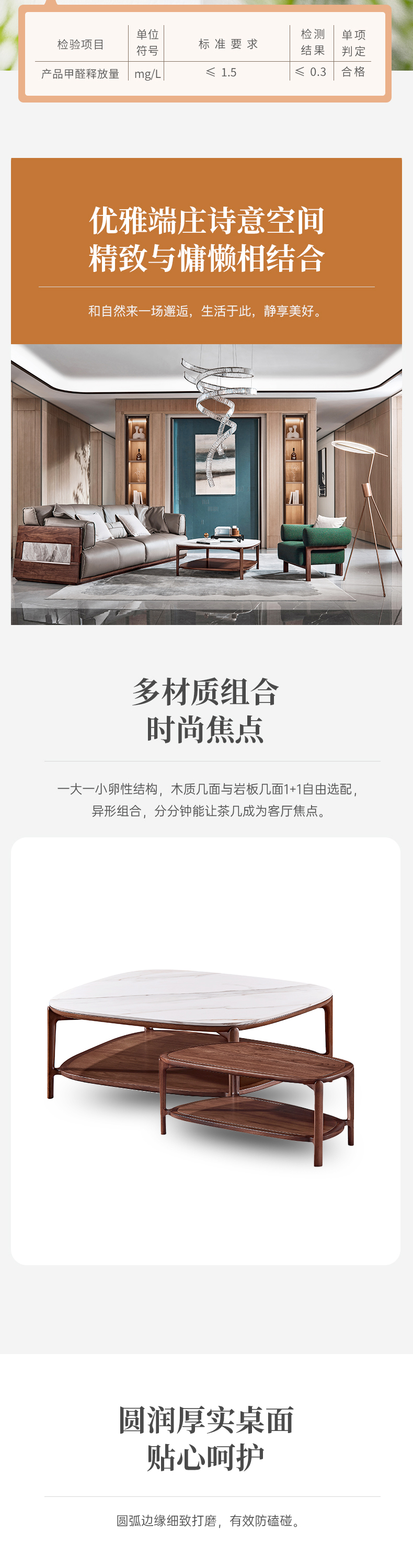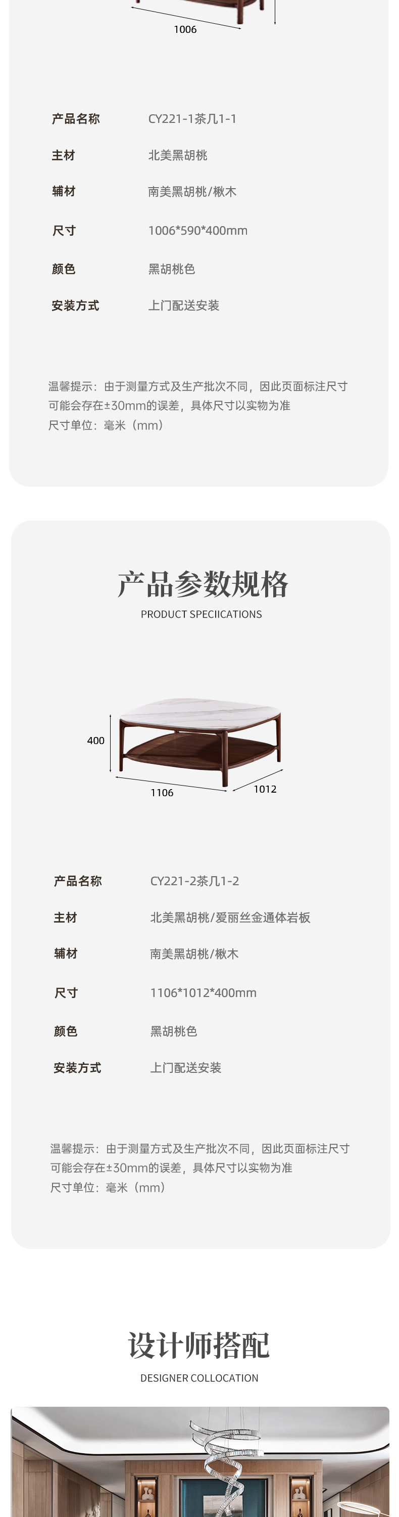 【现代风-CY221茶几】现代风/客厅/北美黑胡桃/实木&岩板 组合茶几