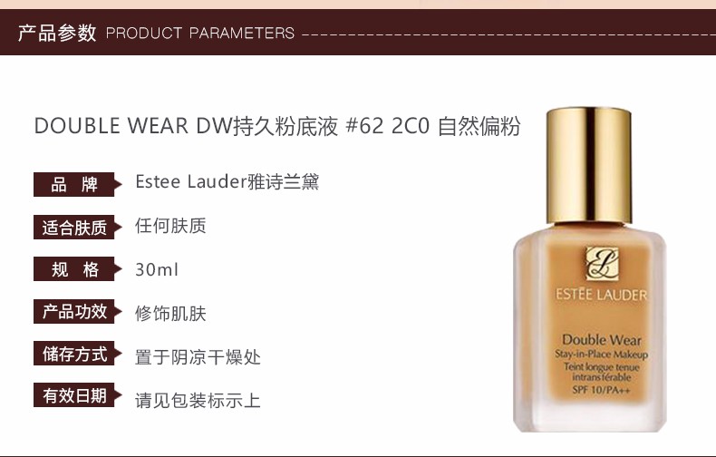 ESTEE LAUDER 雅诗兰黛 DW 持久粉底液 30ML 2C0 #62 美国